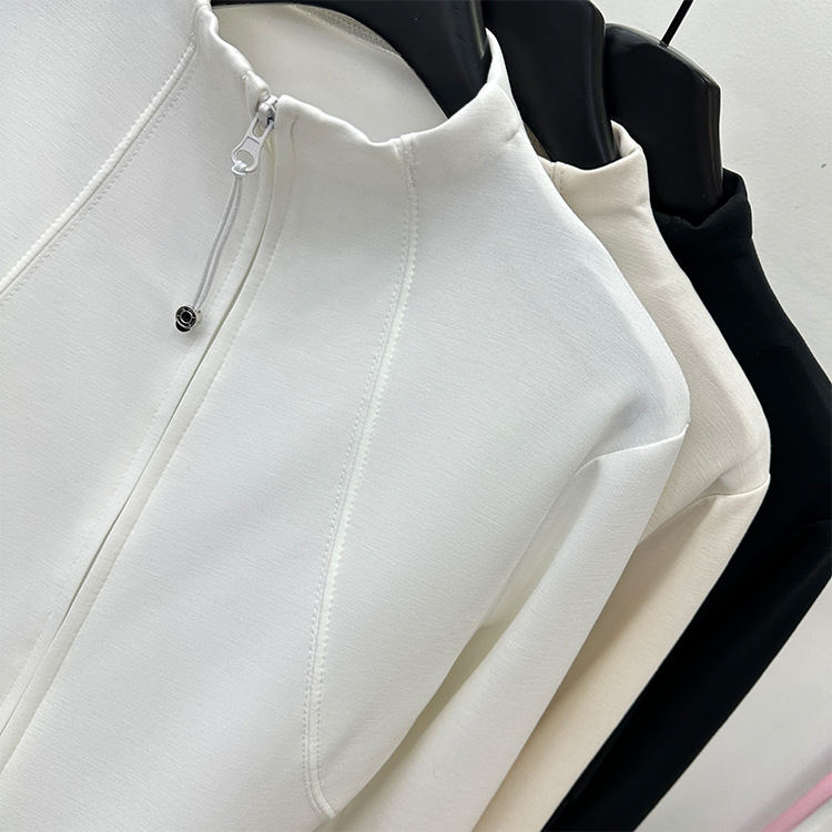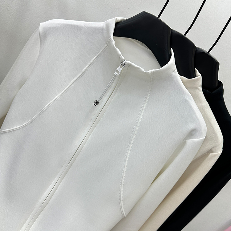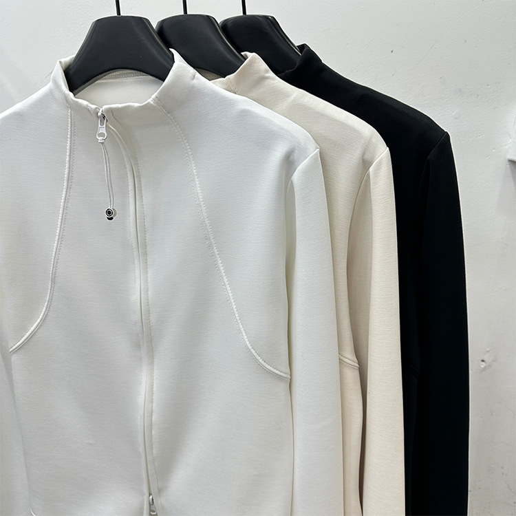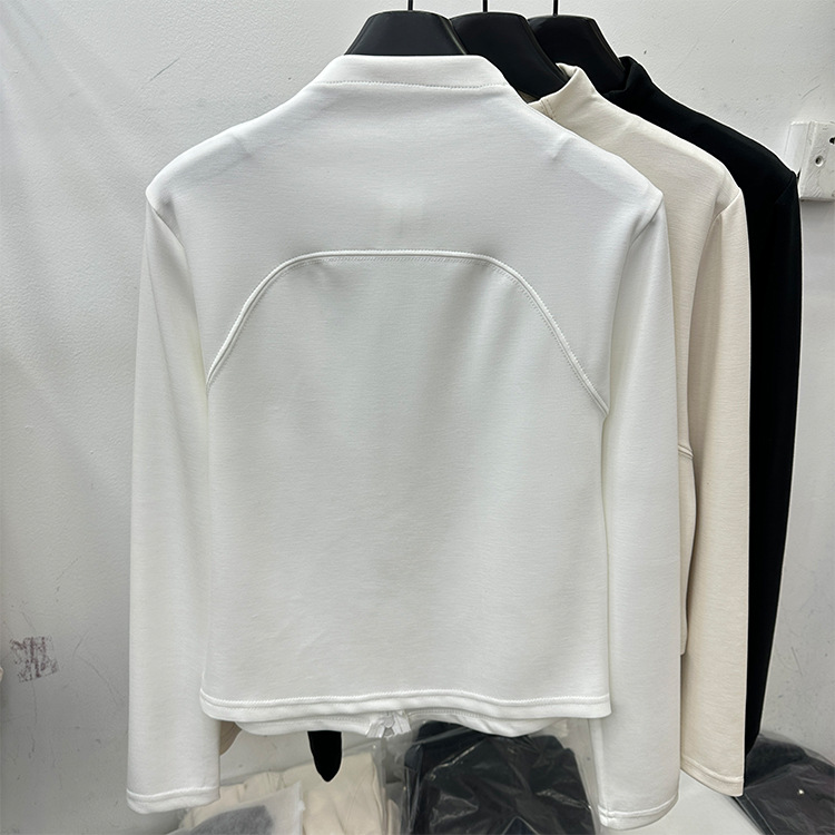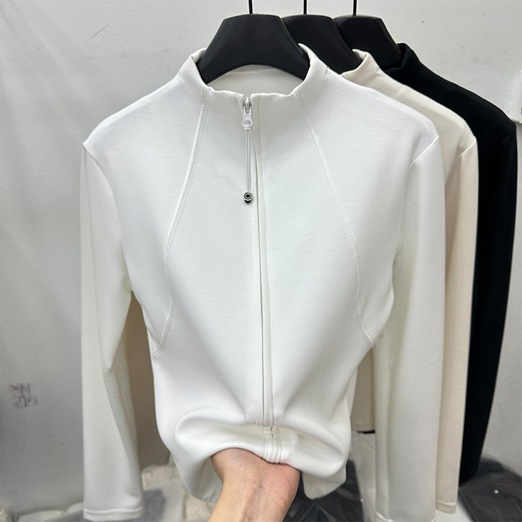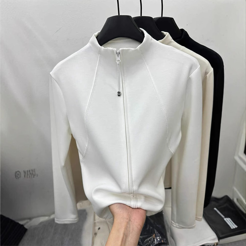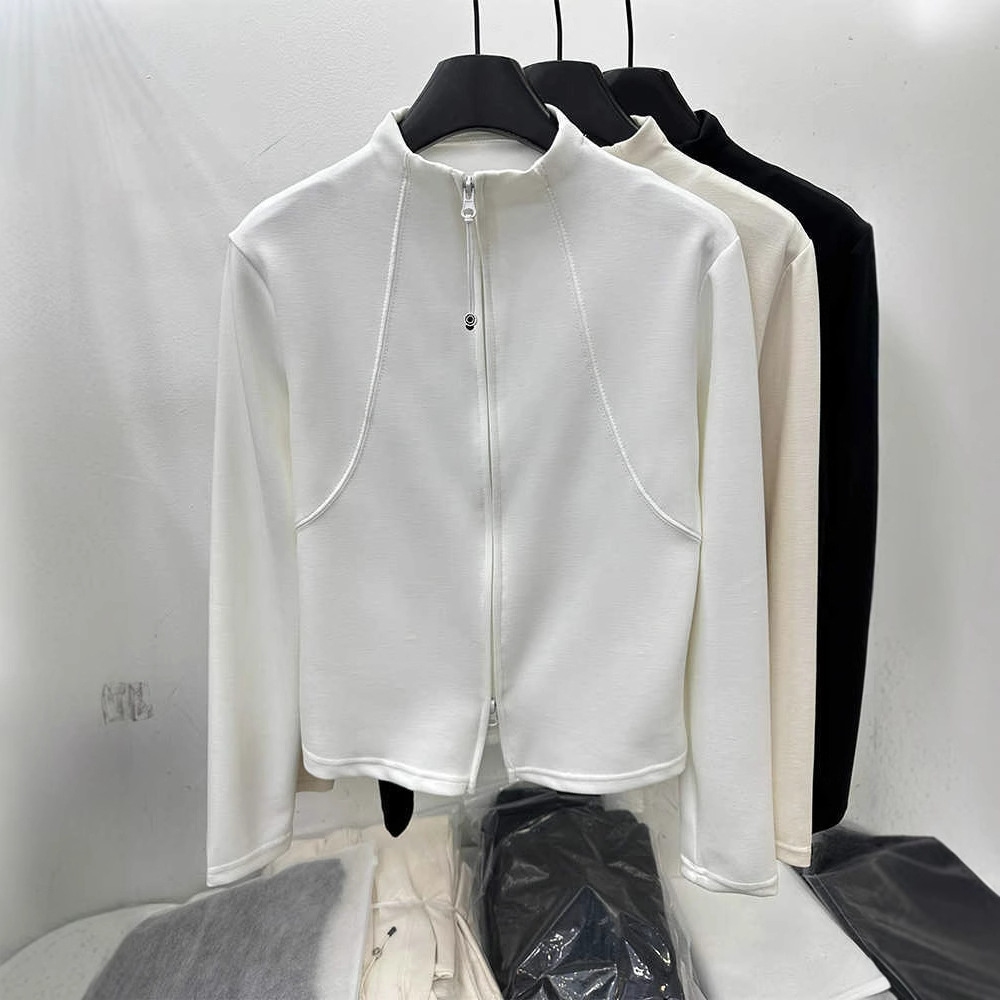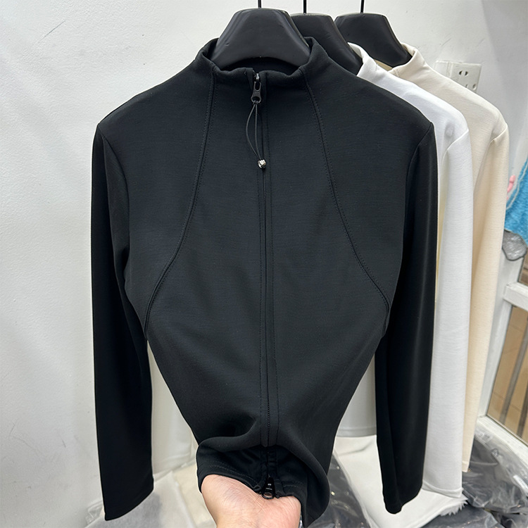 双拉链开衫立领长袖T恤卫衣设计感纯色百搭打底衫女春季修身上衣
