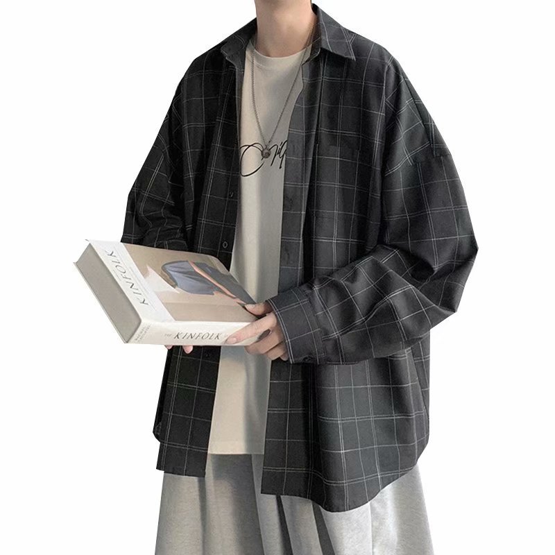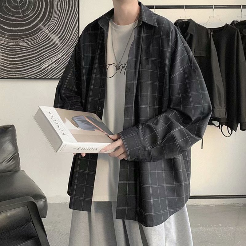 复古格子衬衫男士潮牌ins休闲港风衬衣韩版潮流外套港风帅气衣服