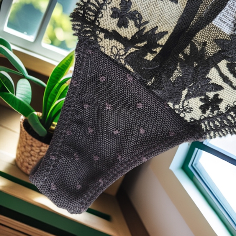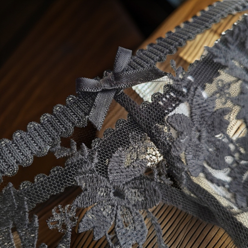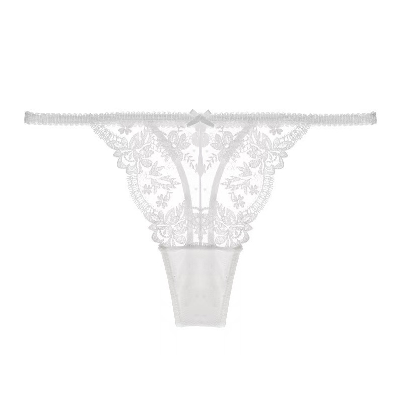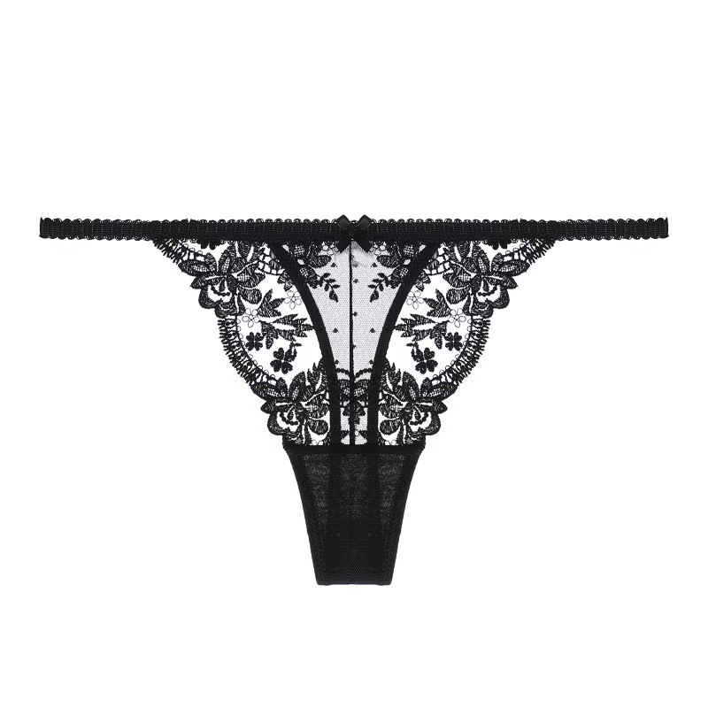 欧美法式睫毛蕾丝内裤女低腰女士丁字裤薄纱纯棉裆T裤panties刺绣