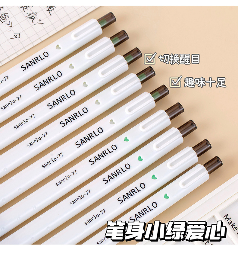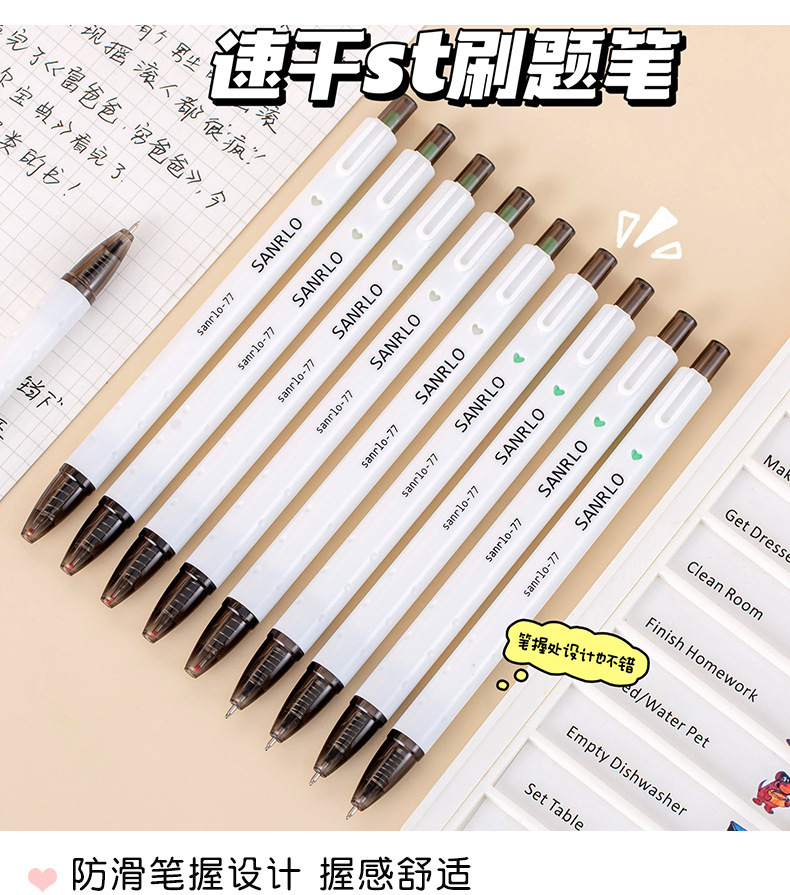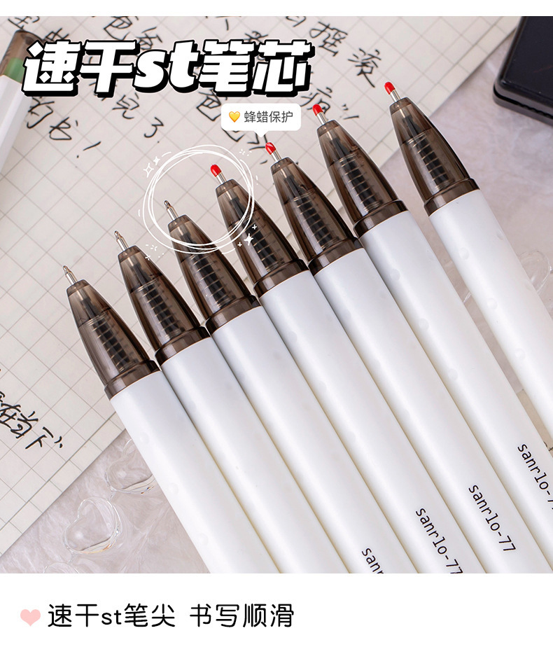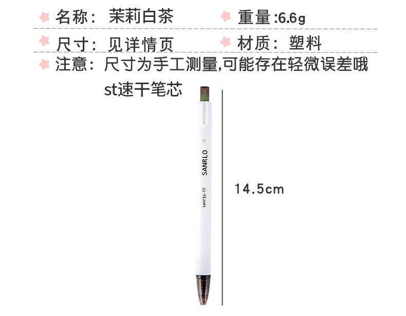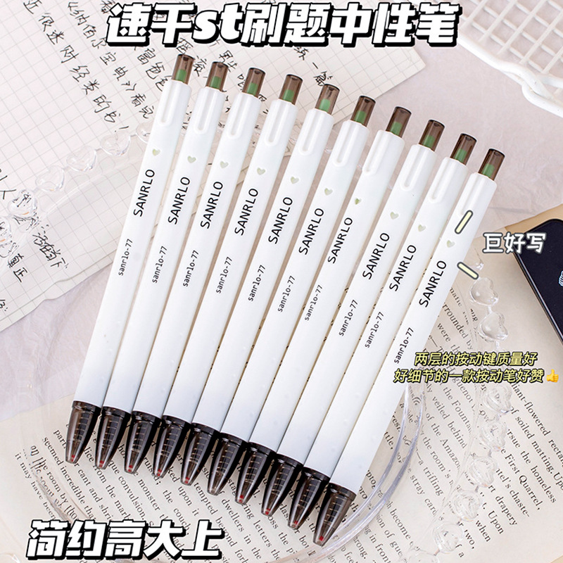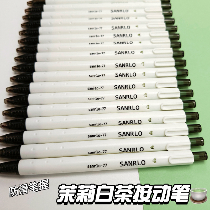 茉莉白茶ST笔尖速干刷题笔抹茶按动中性笔文具考试小白笔碳素顺滑