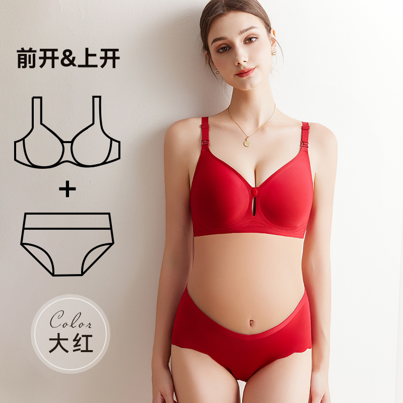 大红色孕妇内衣内裤套装本命年结婚怀孕期哺乳文胸聚拢防下垂喂奶