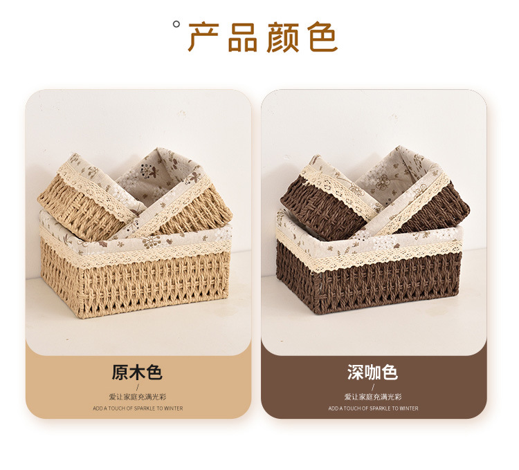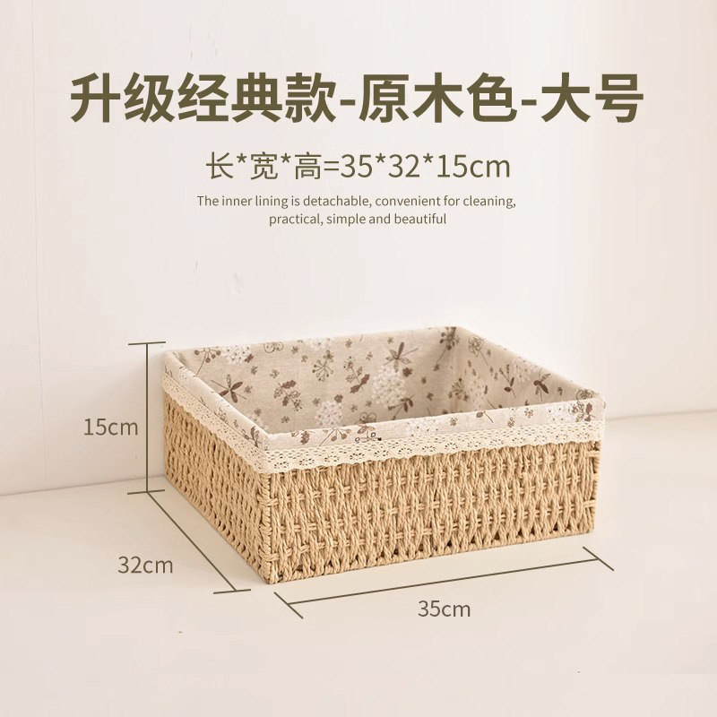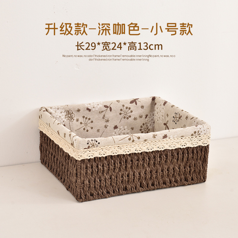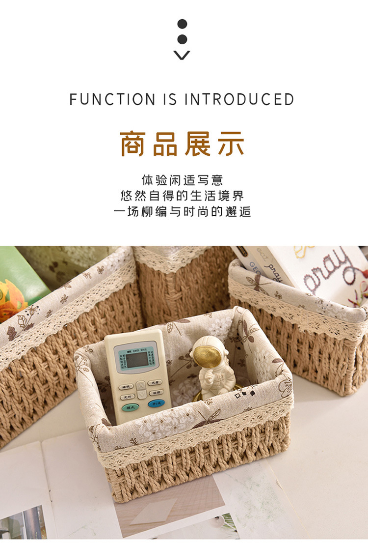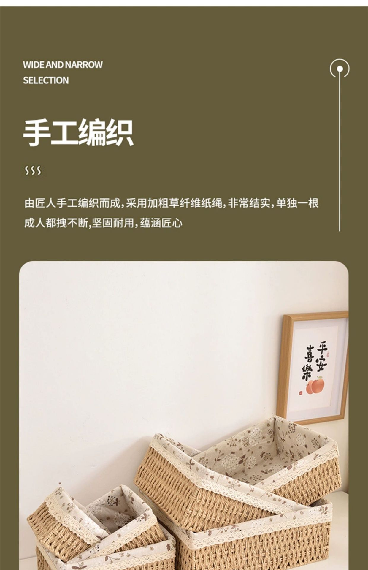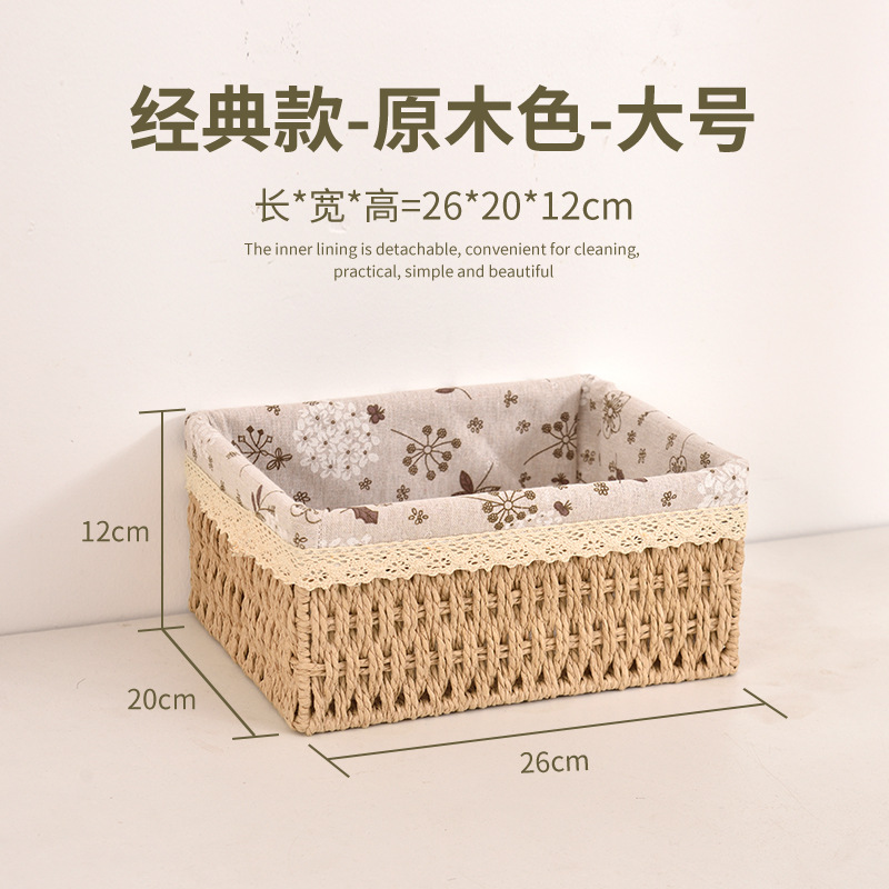 编织桌面收纳筐带盖仿藤编杂物零食化妆品收纳盒草编纸绳收纳篮