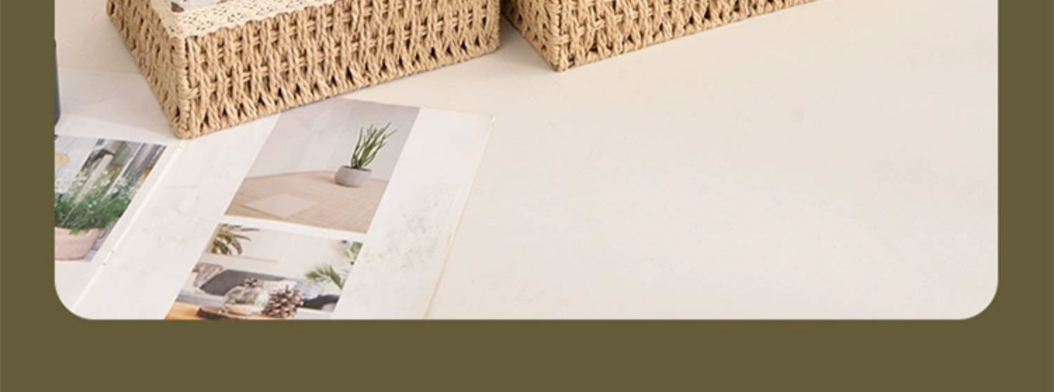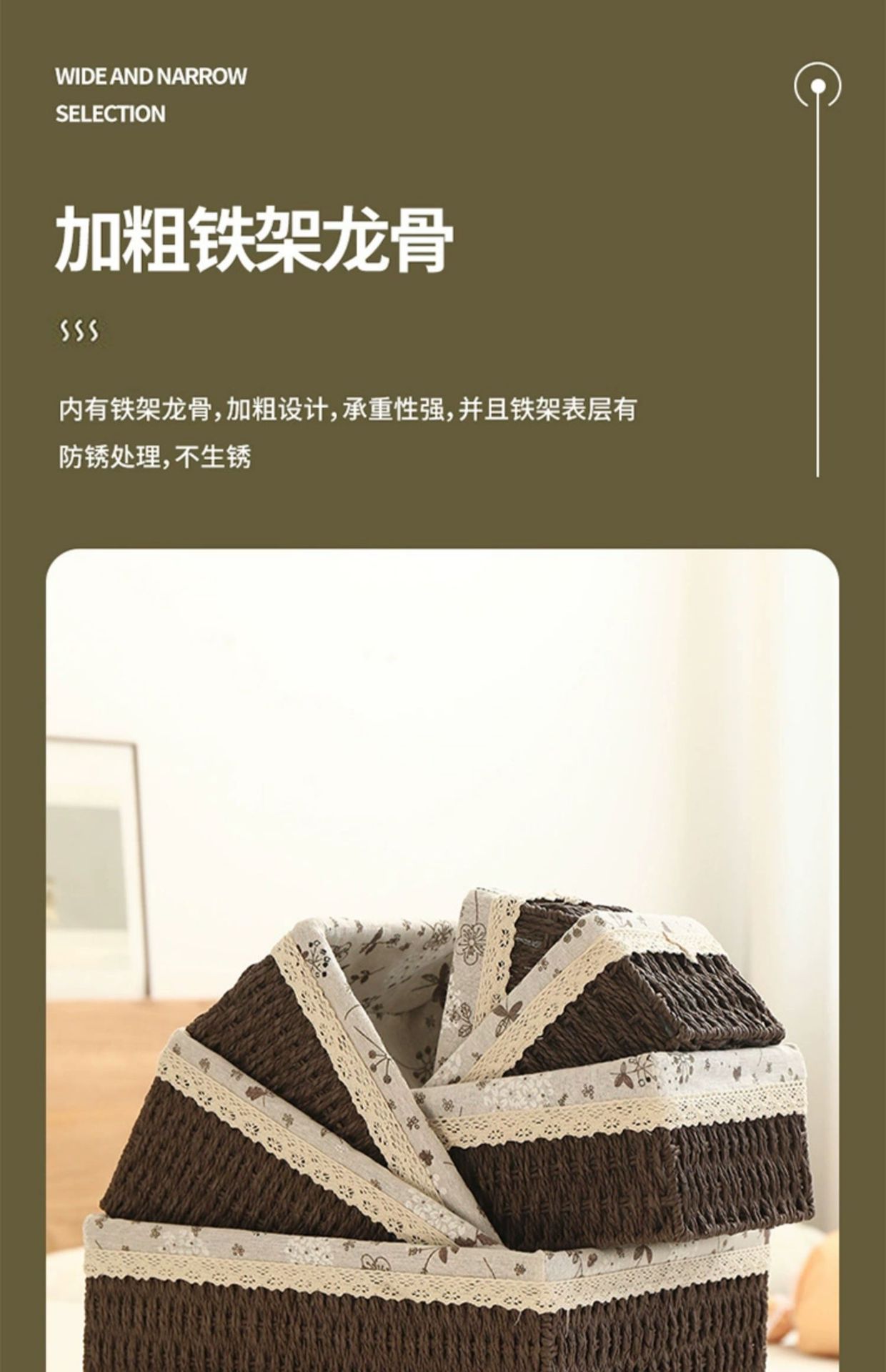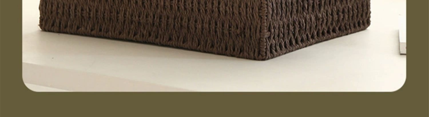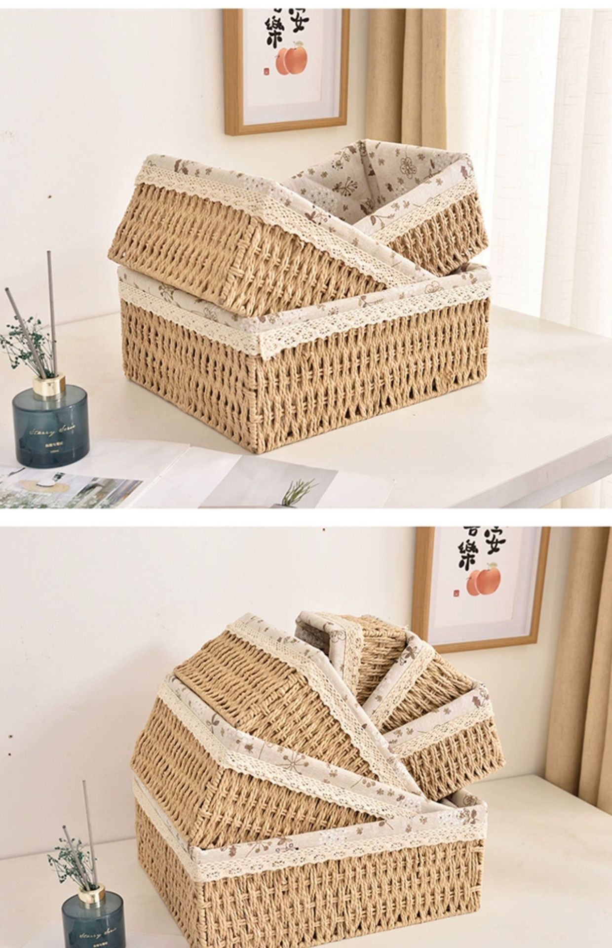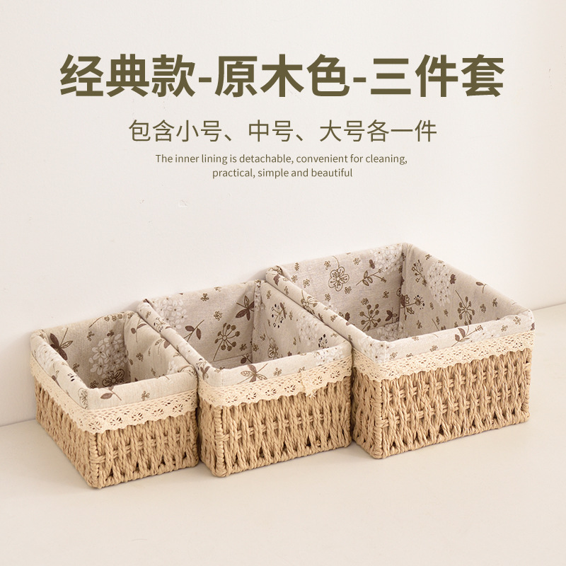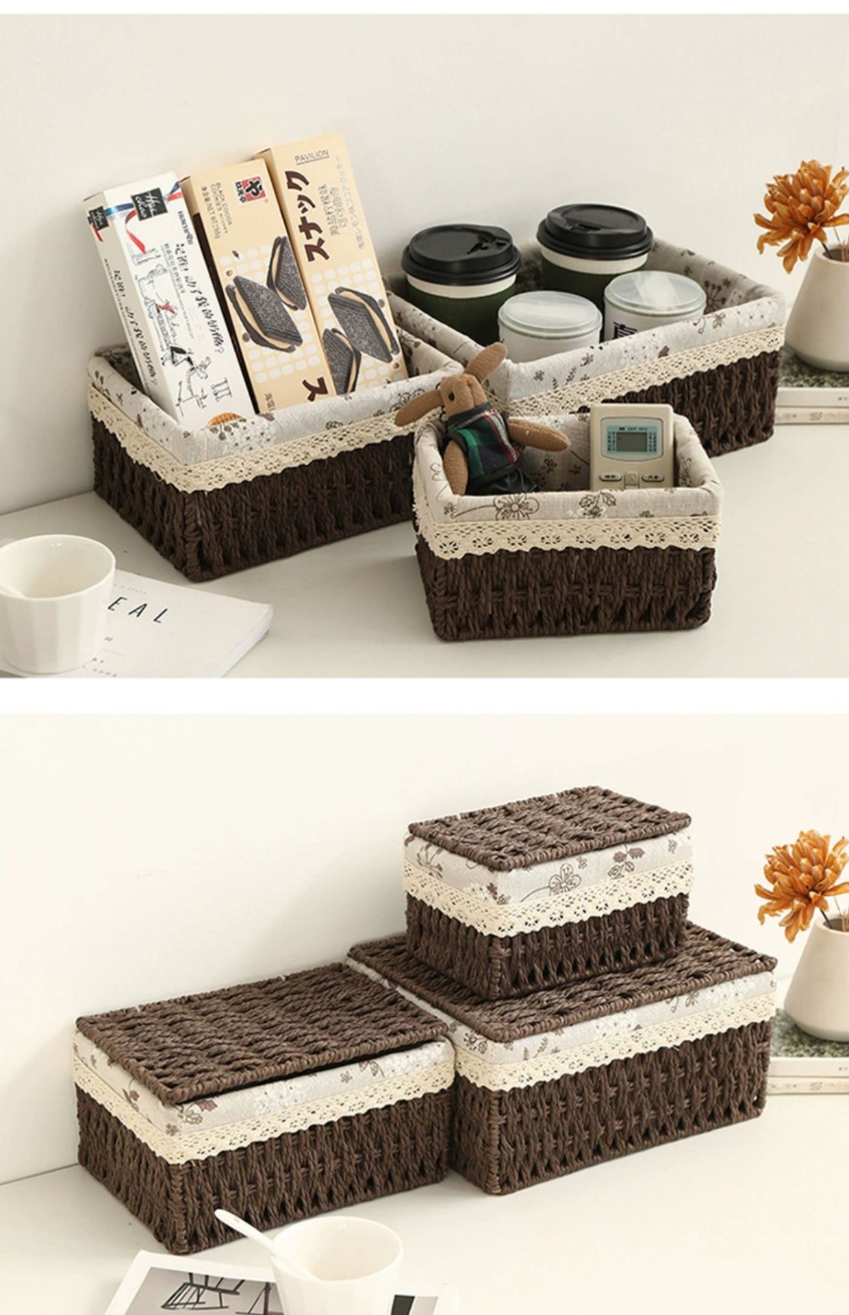 编织桌面收纳筐带盖仿藤编杂物零食化妆品收纳盒草编纸绳收纳篮