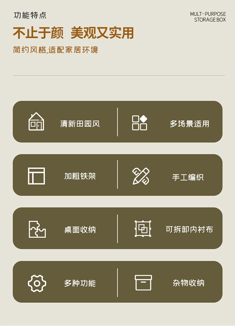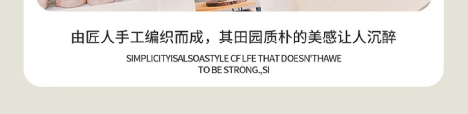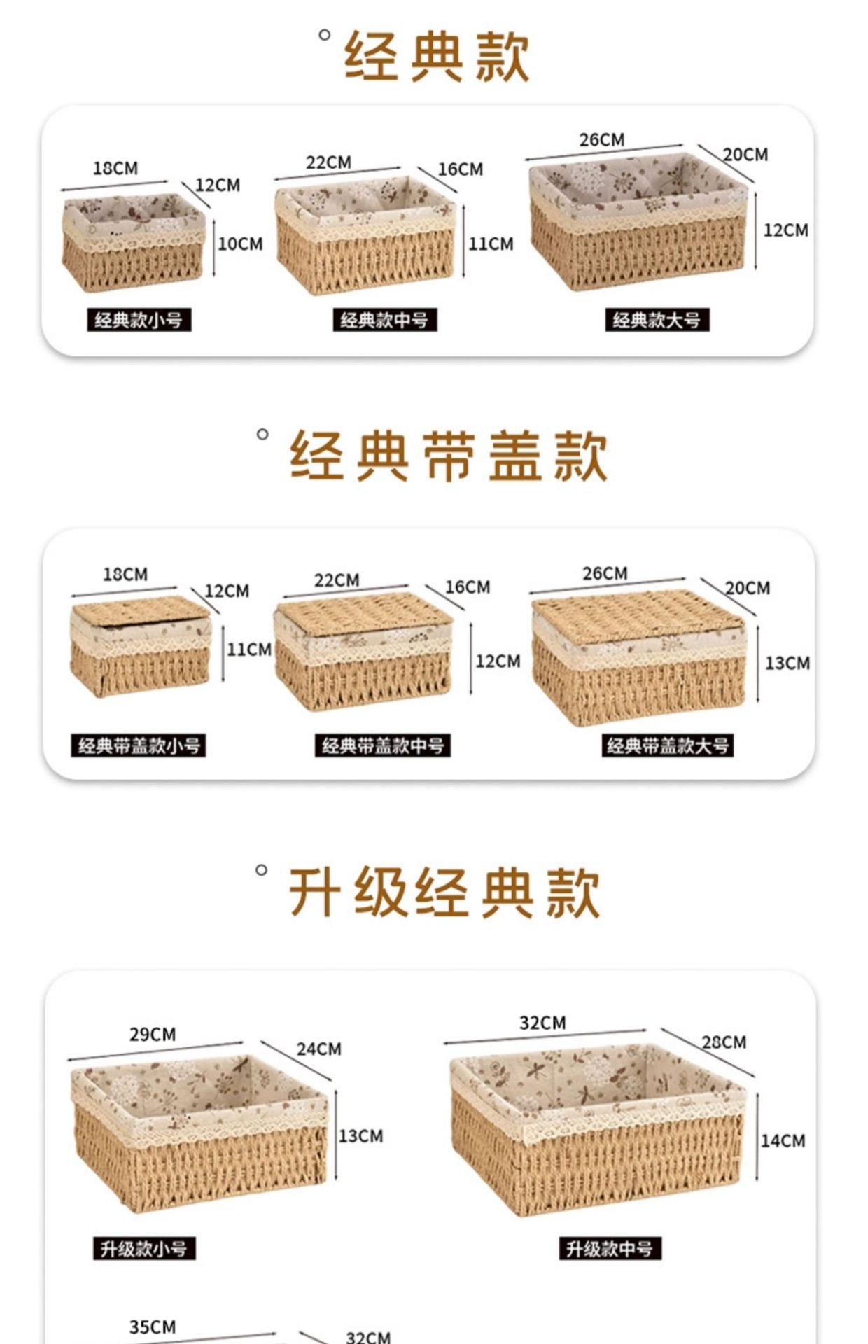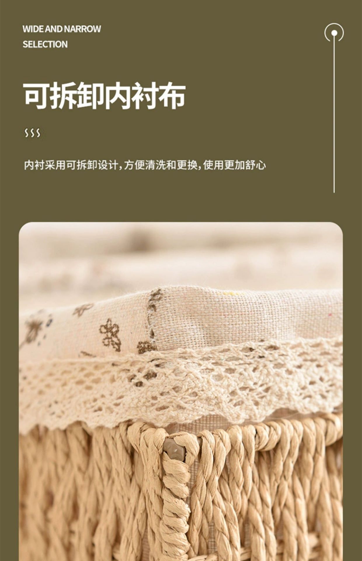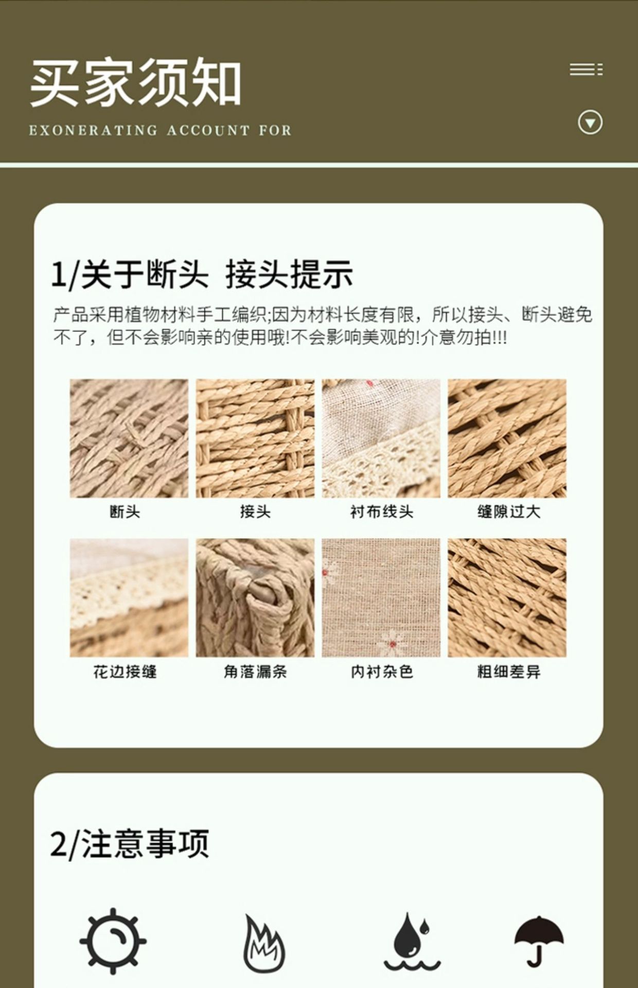 编织桌面收纳筐带盖仿藤编杂物零食化妆品收纳盒草编纸绳收纳篮