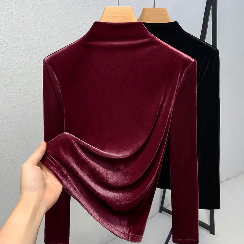 半高领打底衫女2025年新款女装纯色丝绒长袖t恤保暖内搭收腰上衣