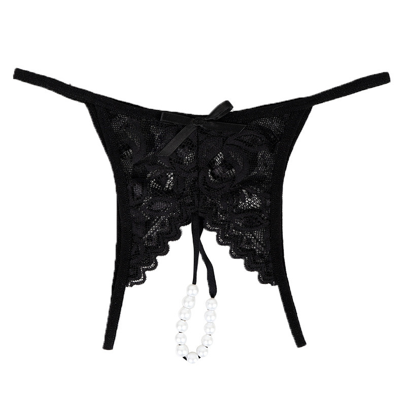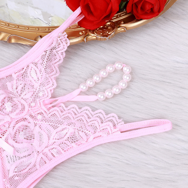 颜蓓薇厂家批发女士内裤性感蕾丝开裆设计低腰珍珠珠串丁字裤103