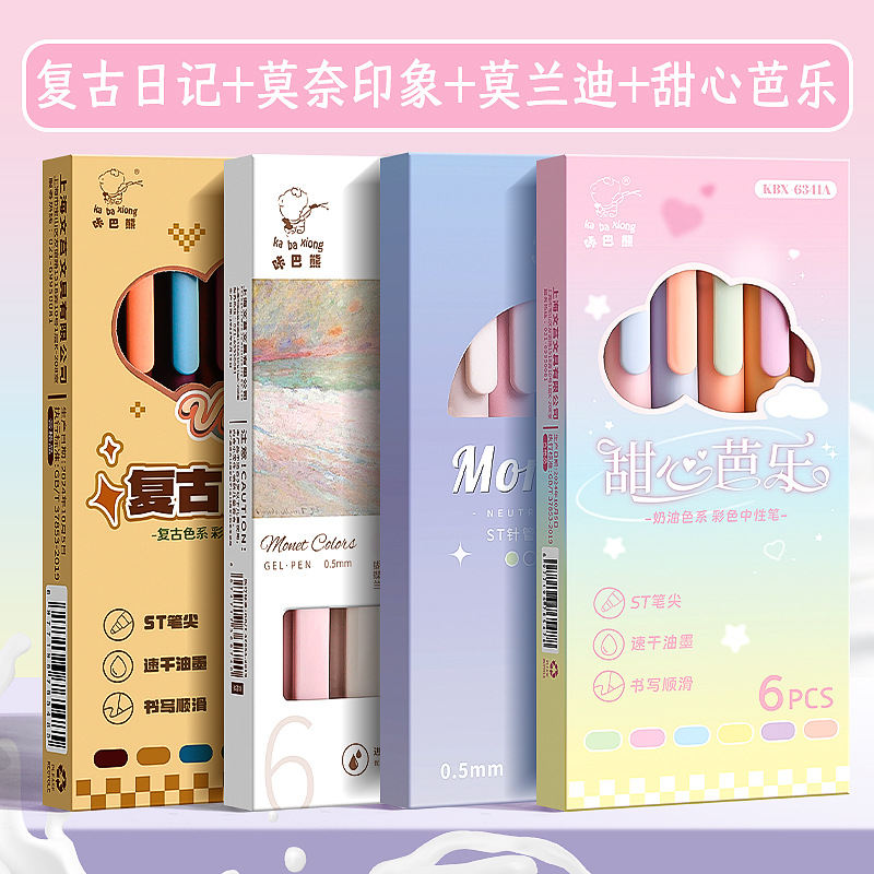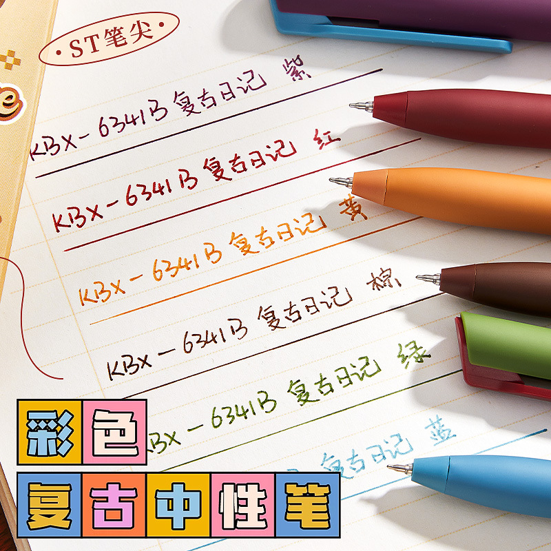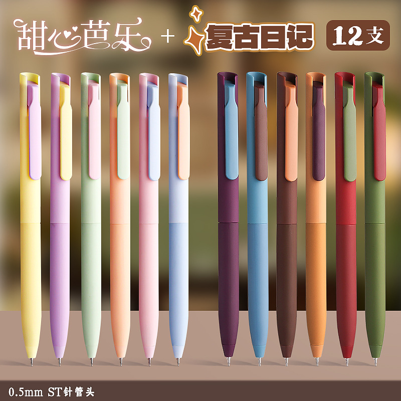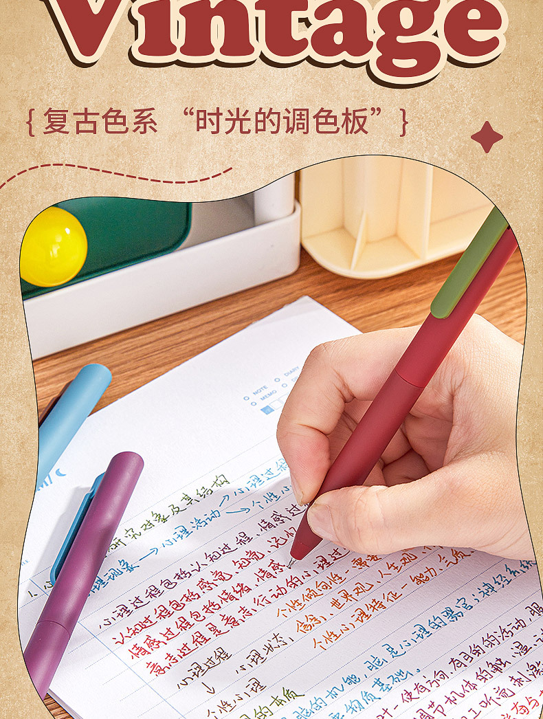 彩色中性笔复古色系列手帐笔全套莫兰迪色中性笔大容量学生用笔记