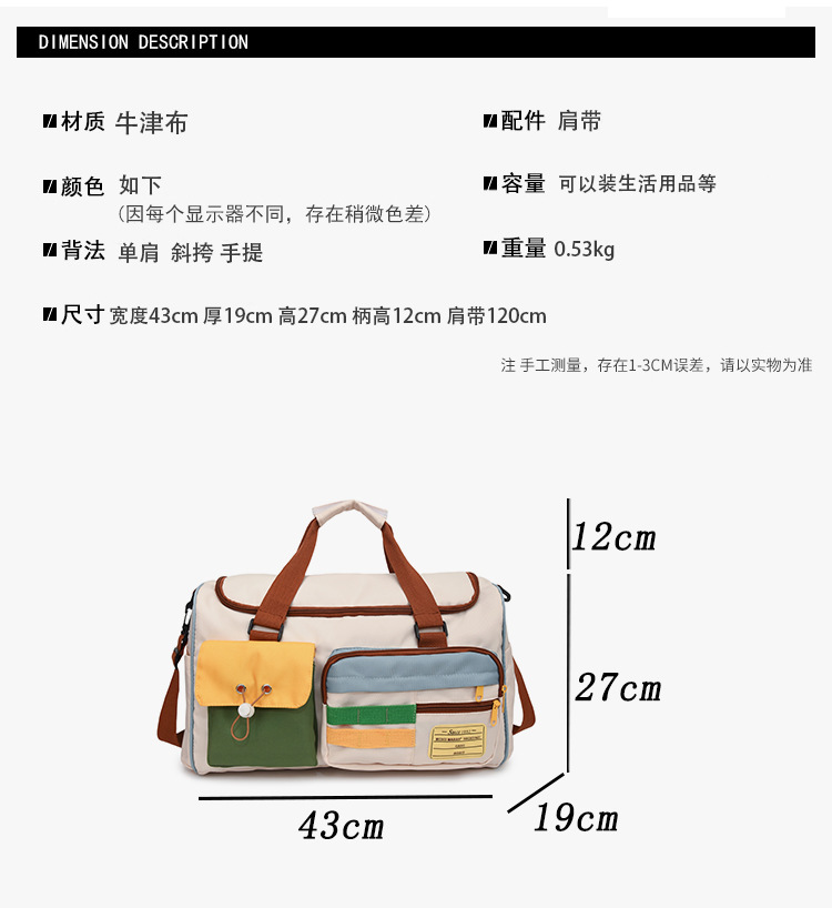 时尚休闲旅行包便携大容量手提运动健身包短途出差斜挎收纳行李包