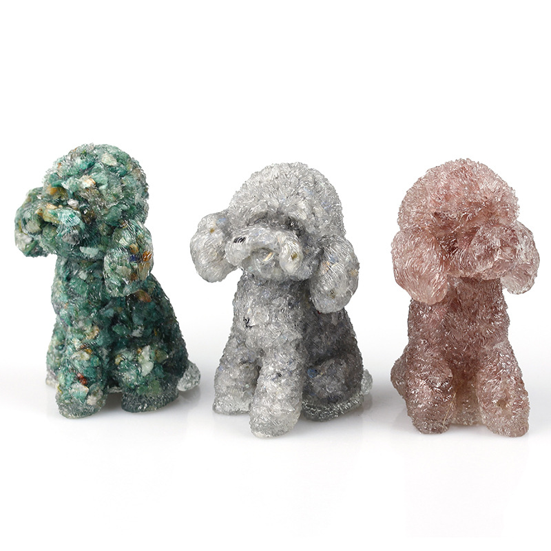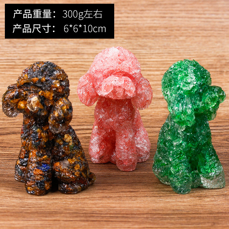 天然水晶碎石环氧树脂工艺品滴胶摆件外单热销动物泰迪狗贵宾犬