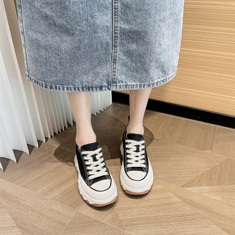松糕厚底内增高8cm帆布鞋女鞋 2023春夏新款波浪底运动休闲鞋板鞋