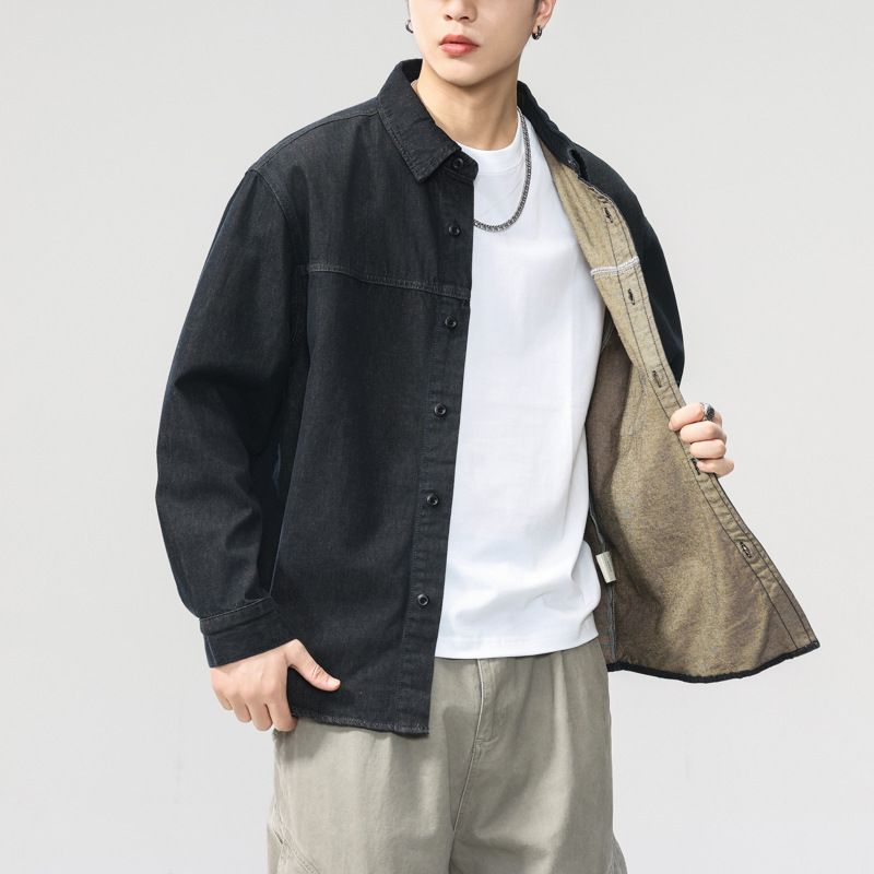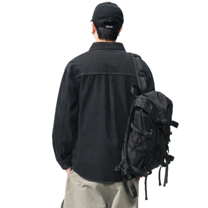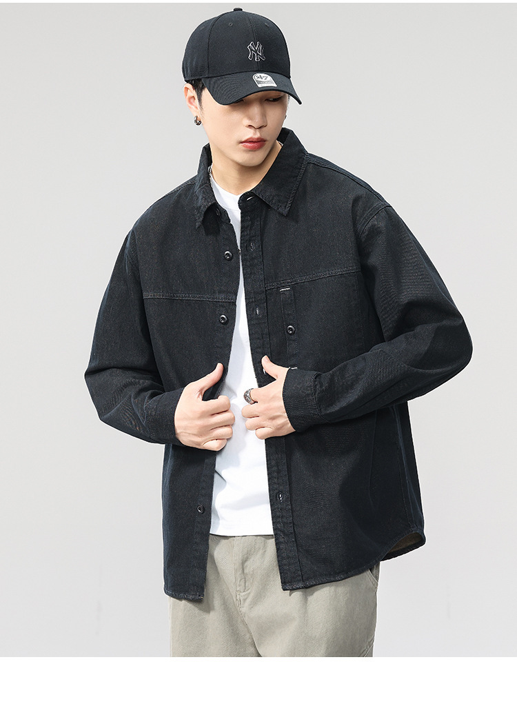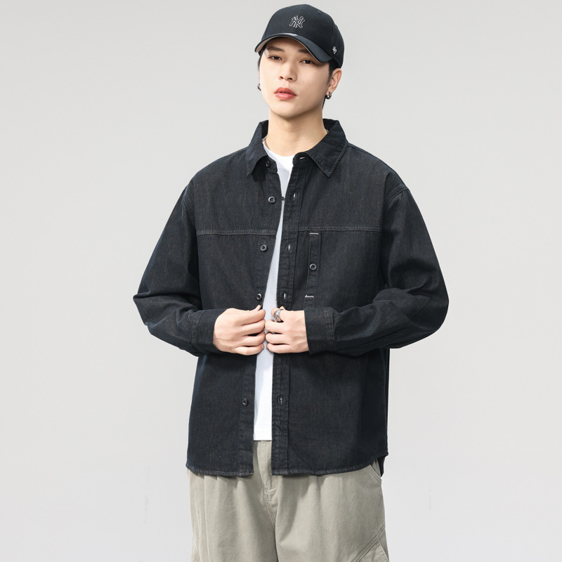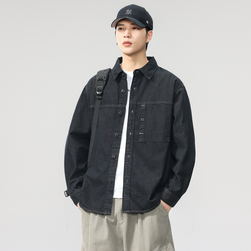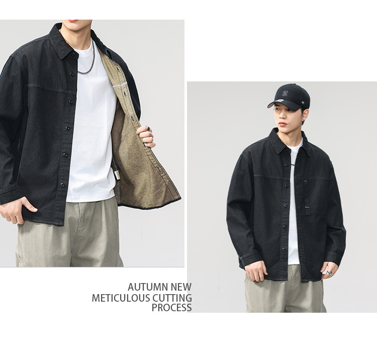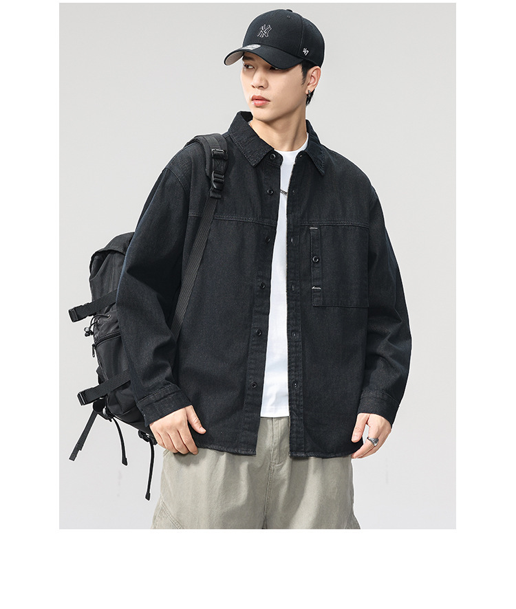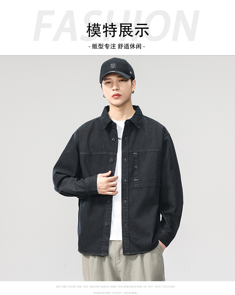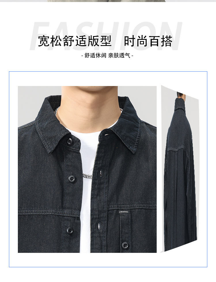 春秋款潮牌牛仔外套男士ins潮流宽松大码休闲工装上衣服秋季衬衫