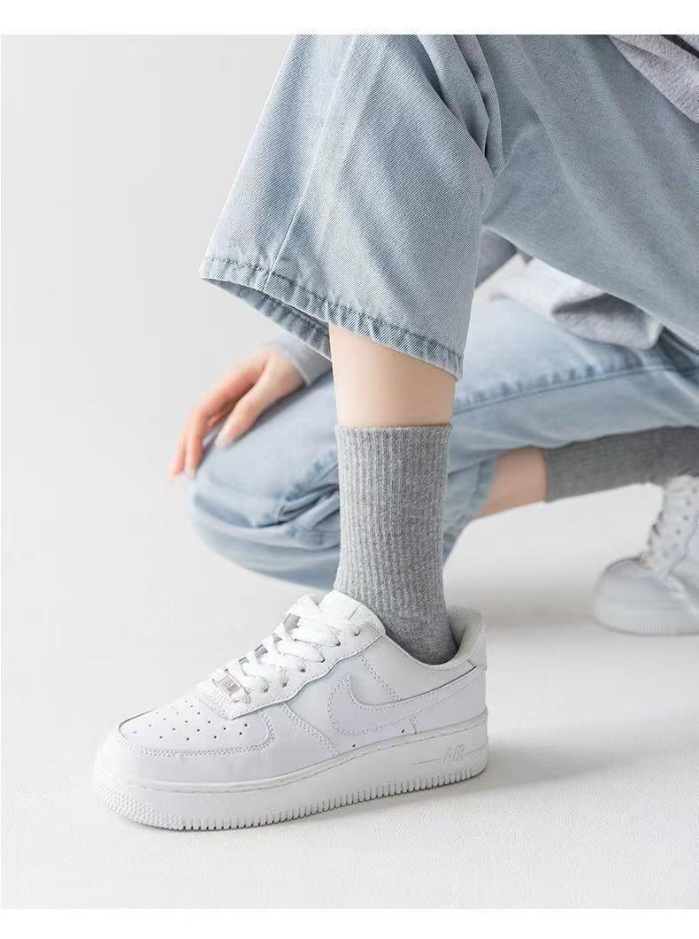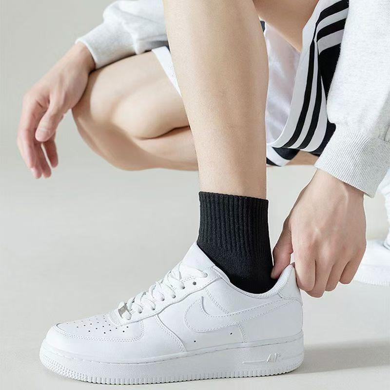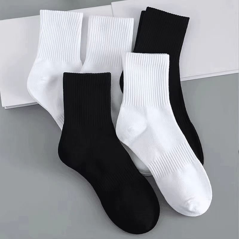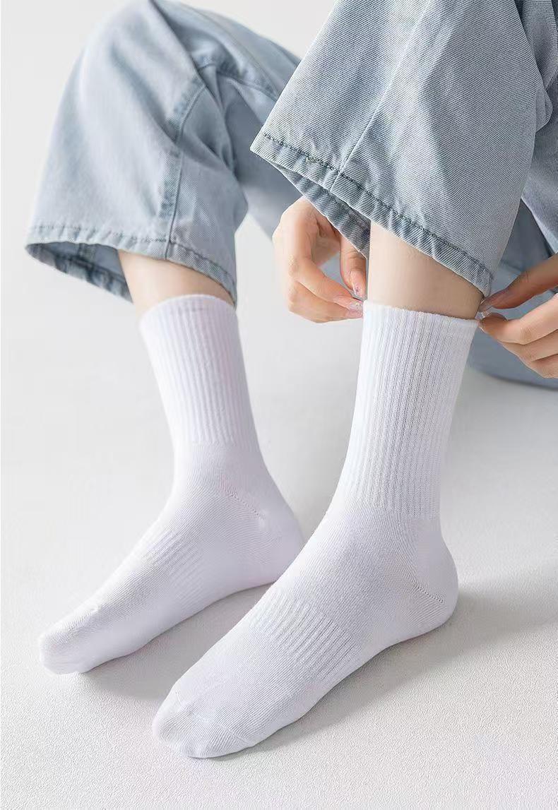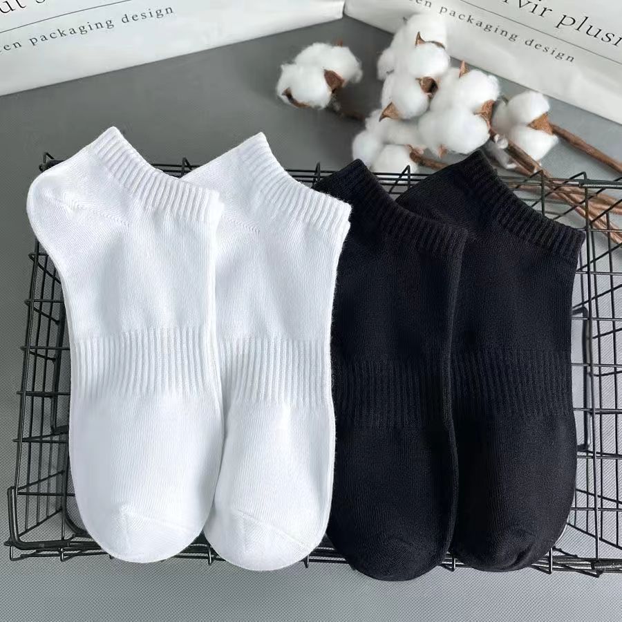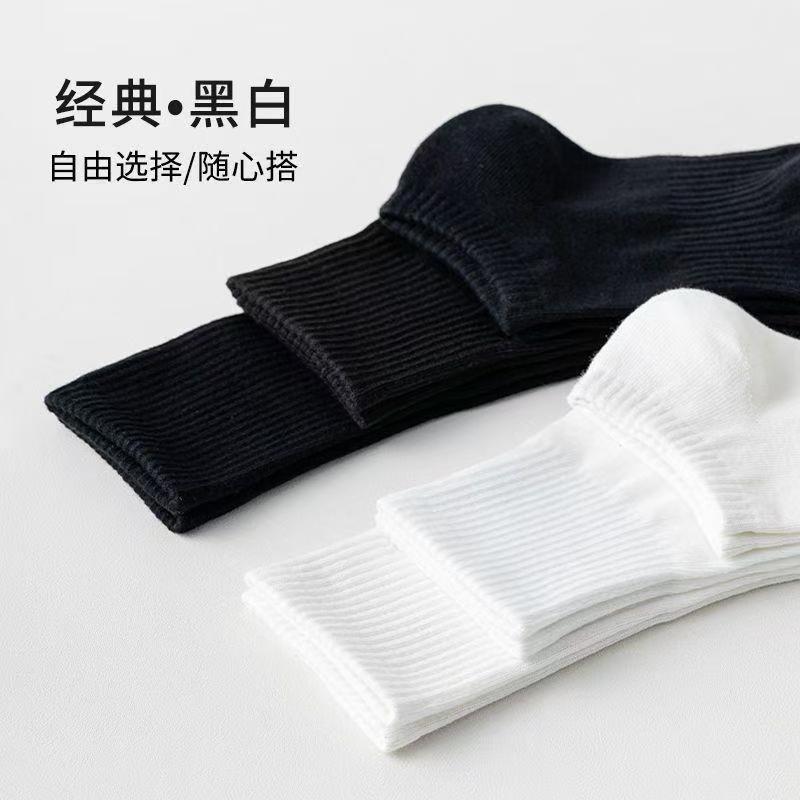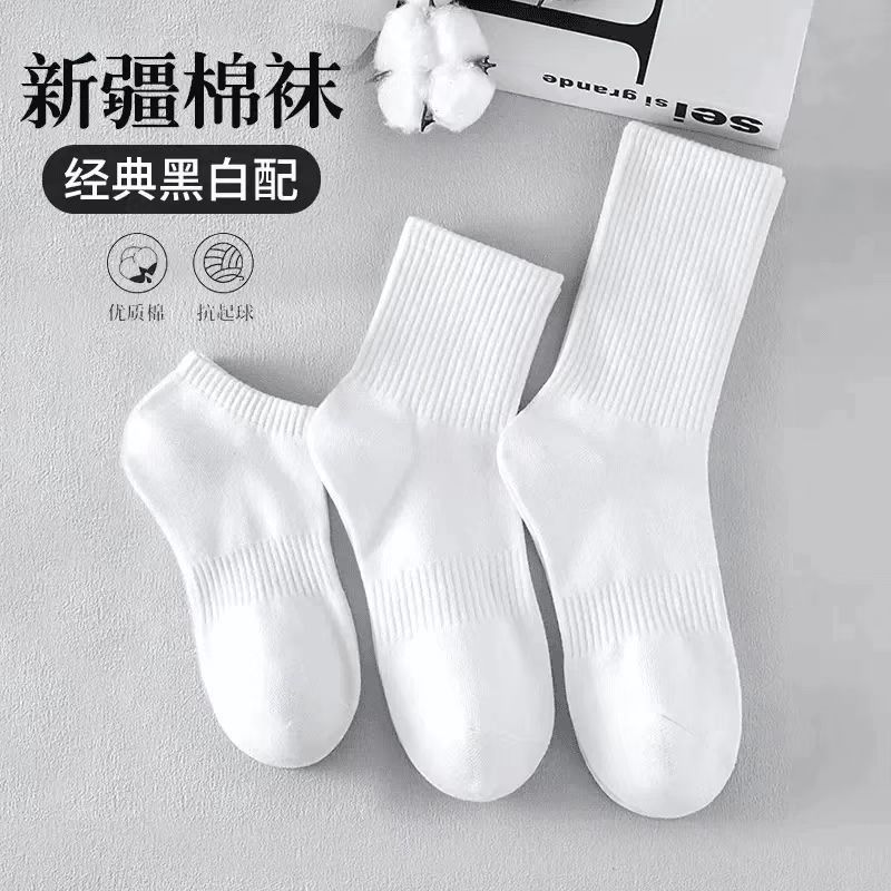 5双装新疆棉袜子防臭男女运动袜春夏短筒浅口船袜纯白色中长筒袜