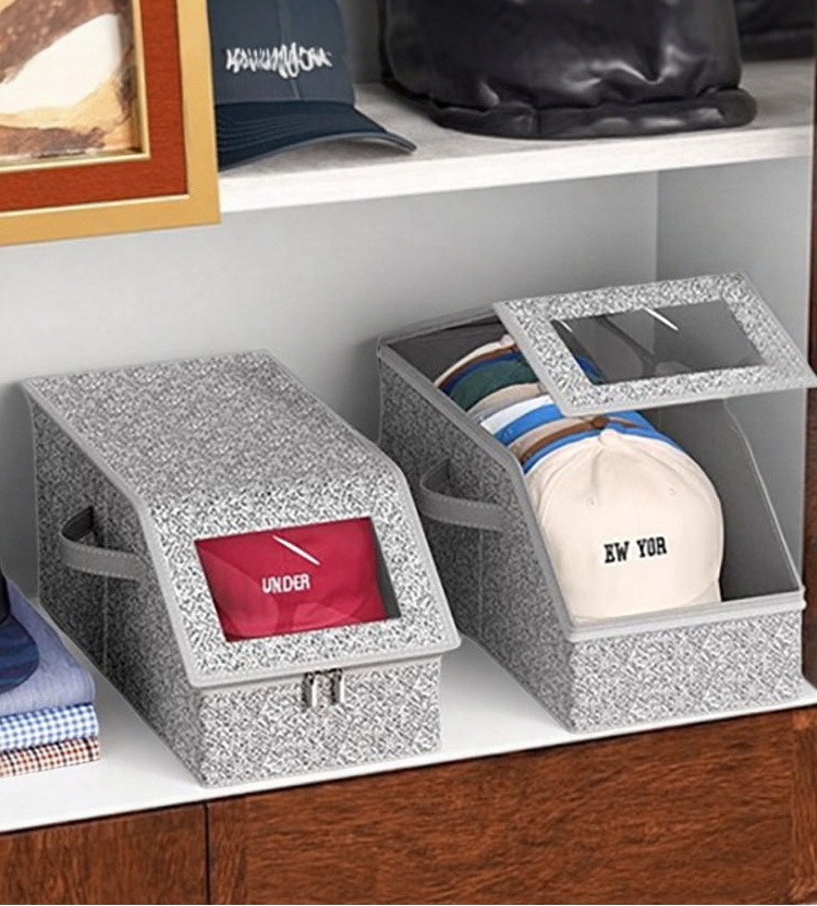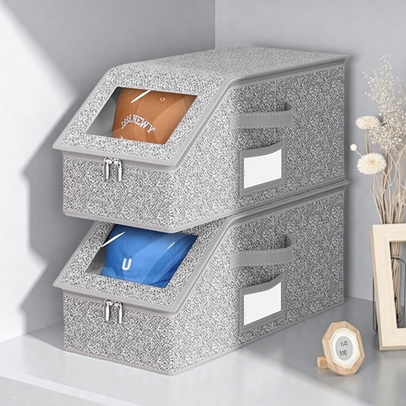 跨境帽子收纳盒拉链盒帽子防尘收纳盒大容量可堆叠棒球帽储物盒