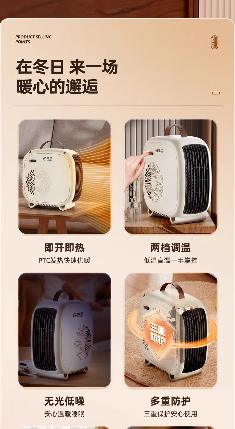 新款暖风机家用立卧两用双档温控便携手提大功率取暖器桌面暖风机