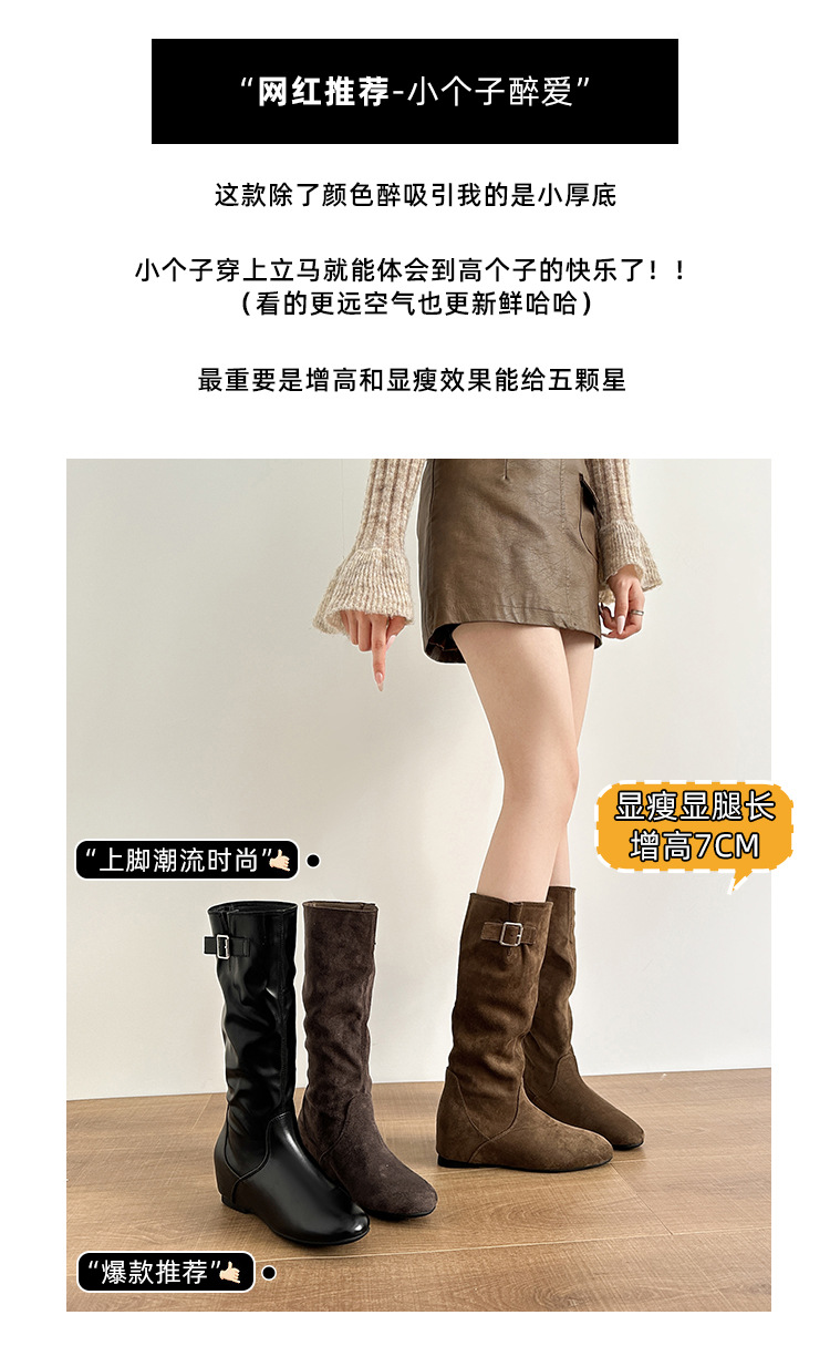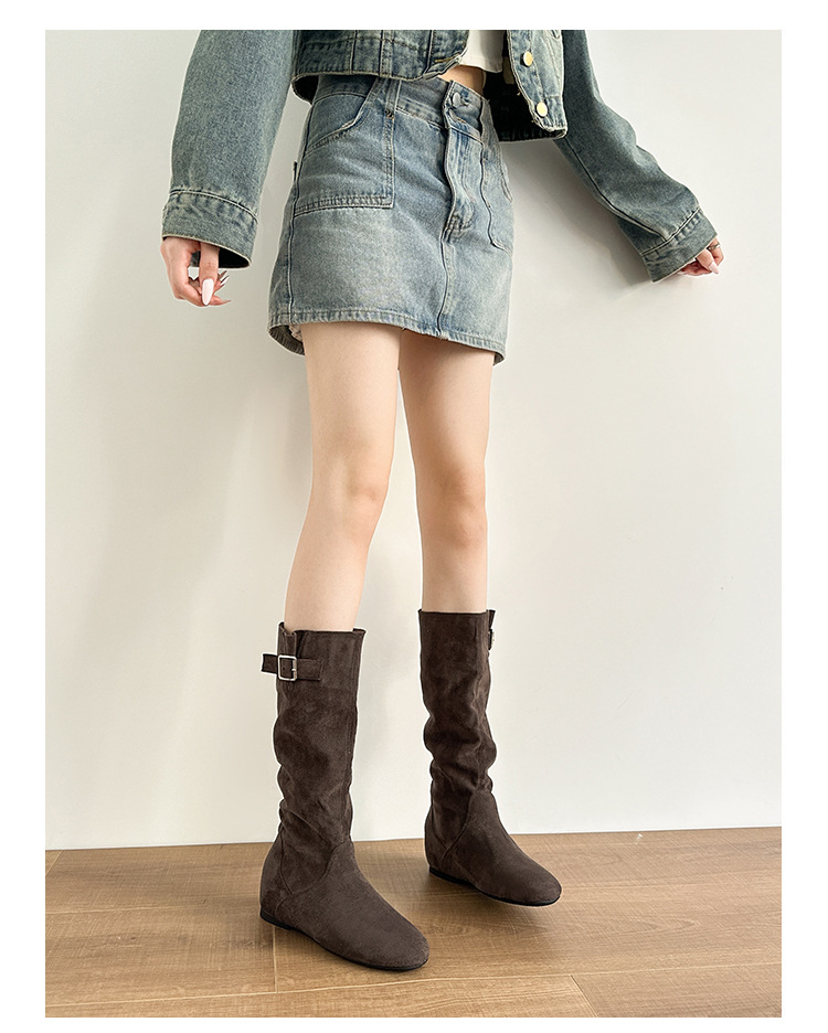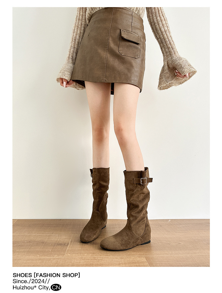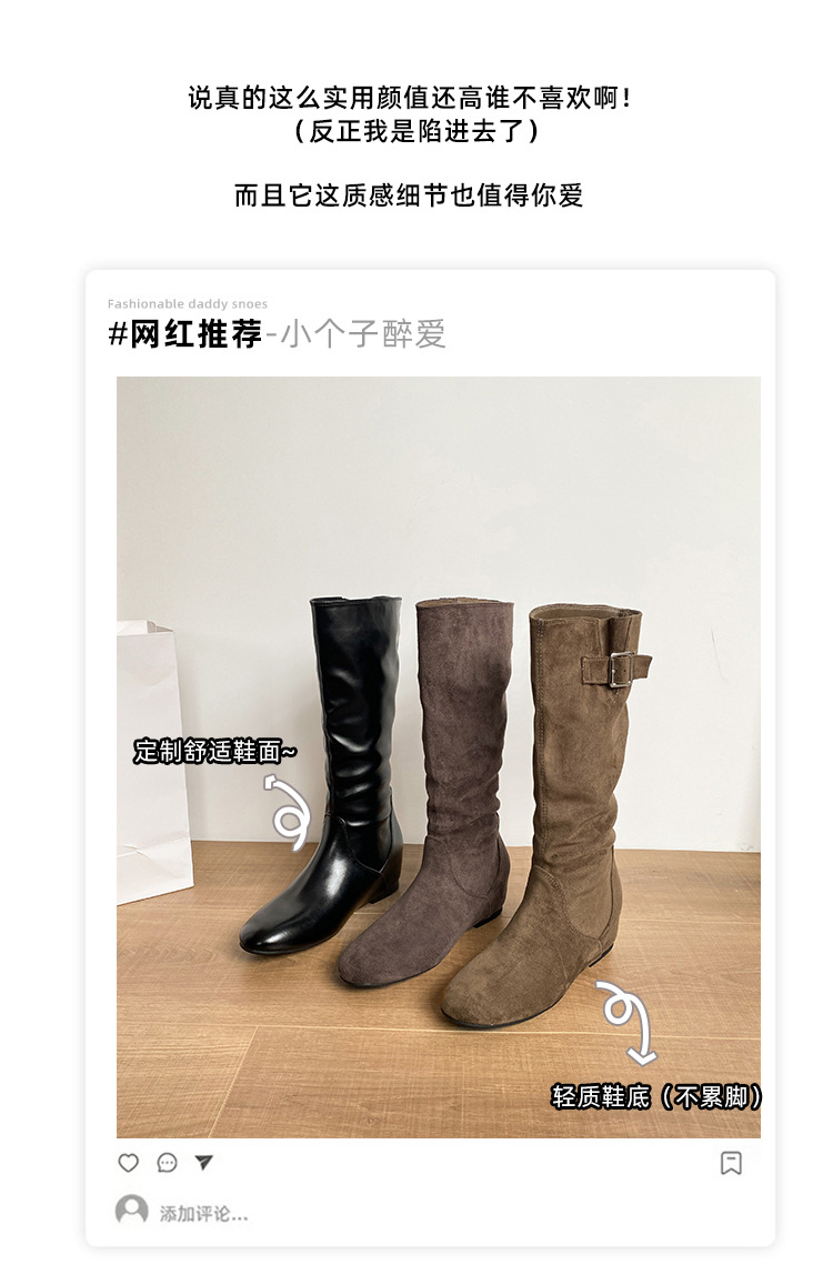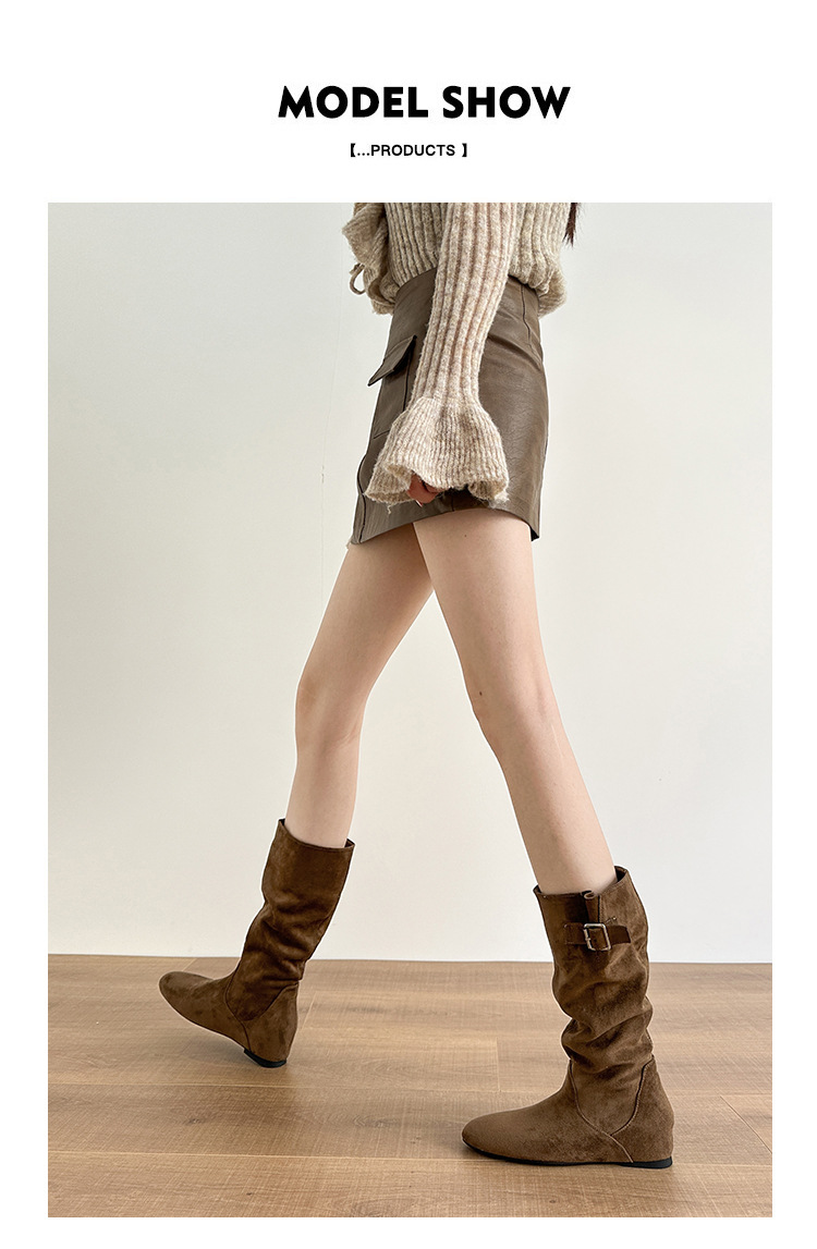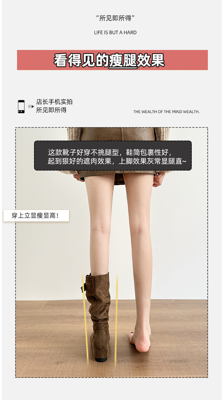 复古堆堆靴长筒靴女靴2024年新款西部牛仔长靴子小个子绒面瘦瘦靴