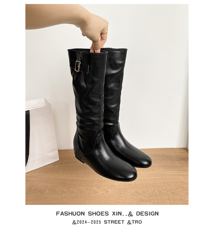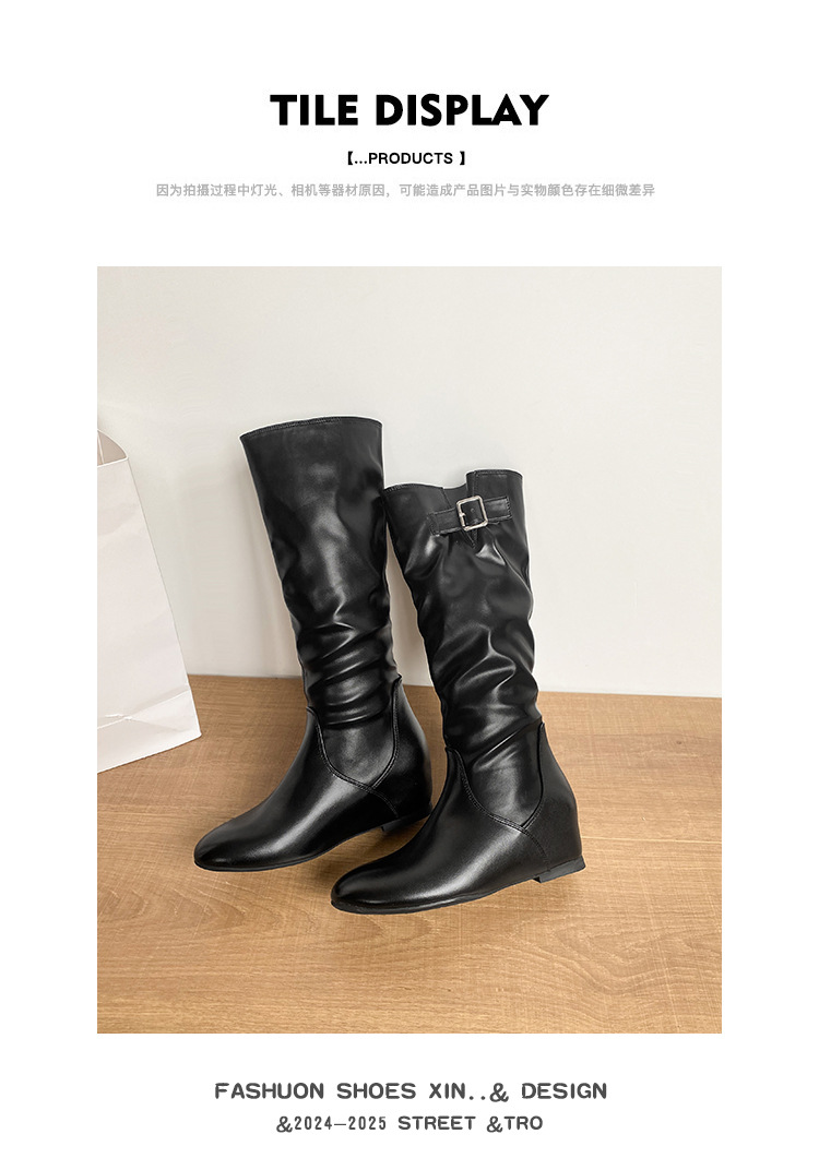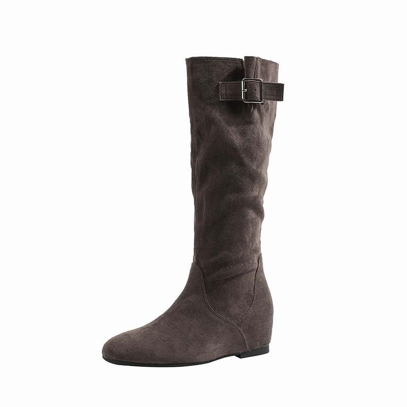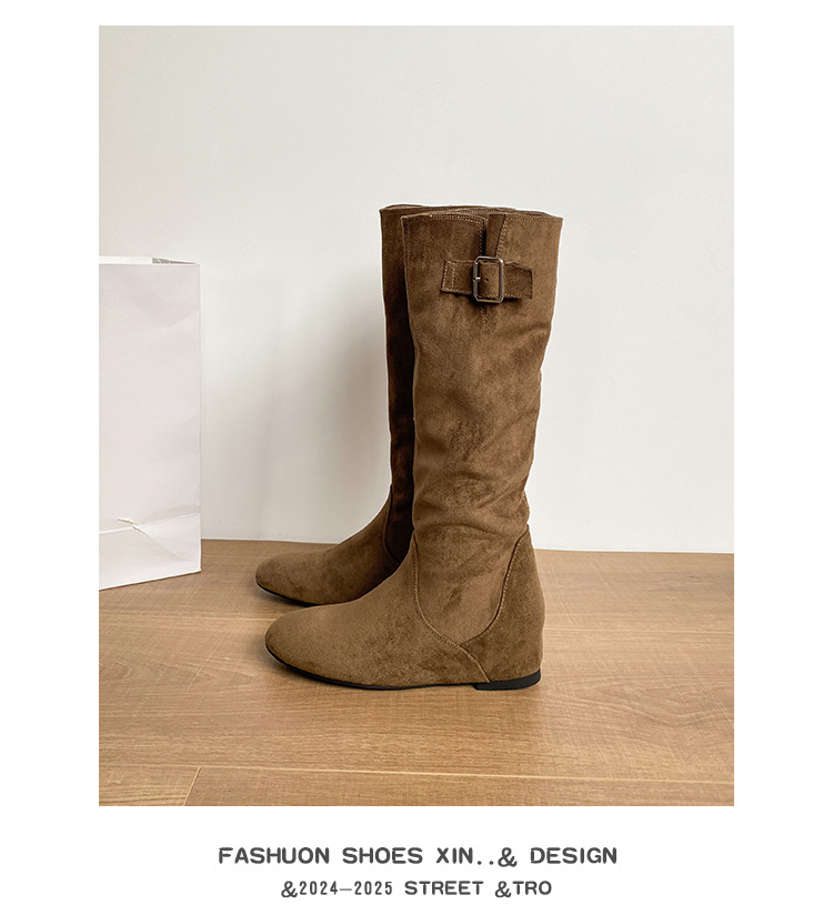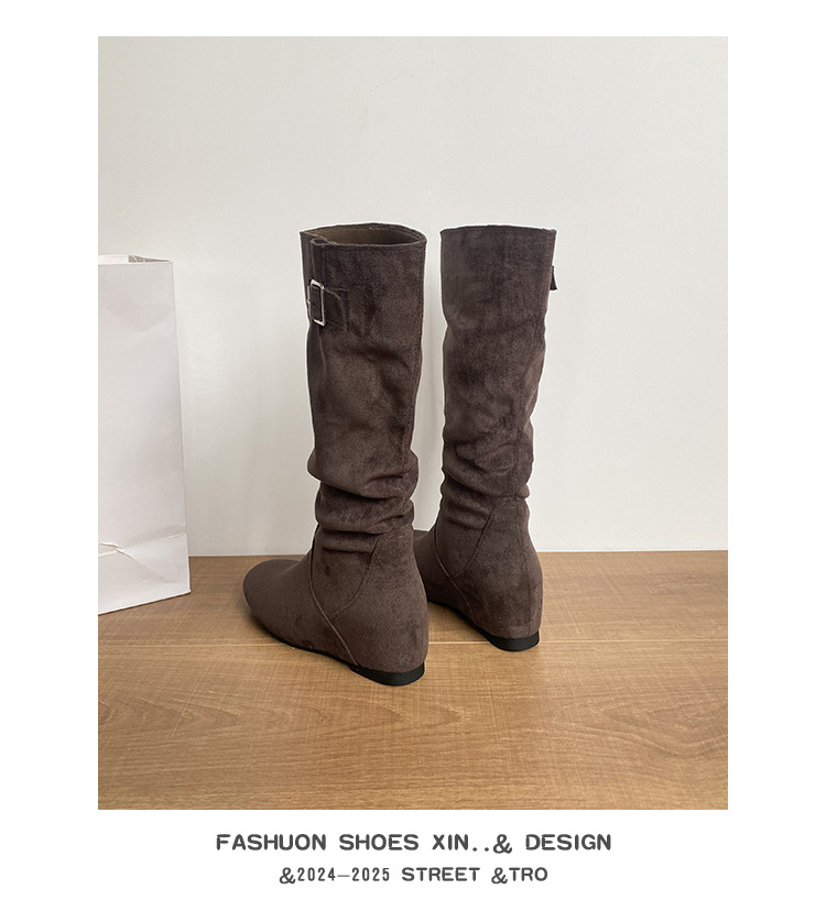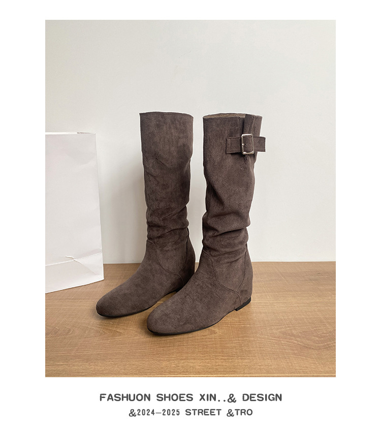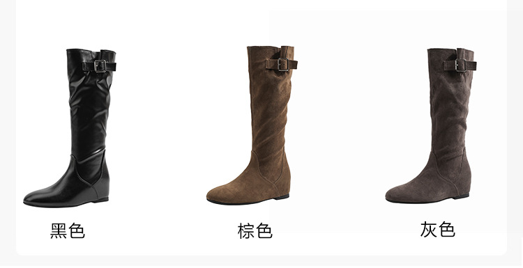 复古堆堆靴长筒靴女靴2024年新款西部牛仔长靴子小个子绒面瘦瘦靴