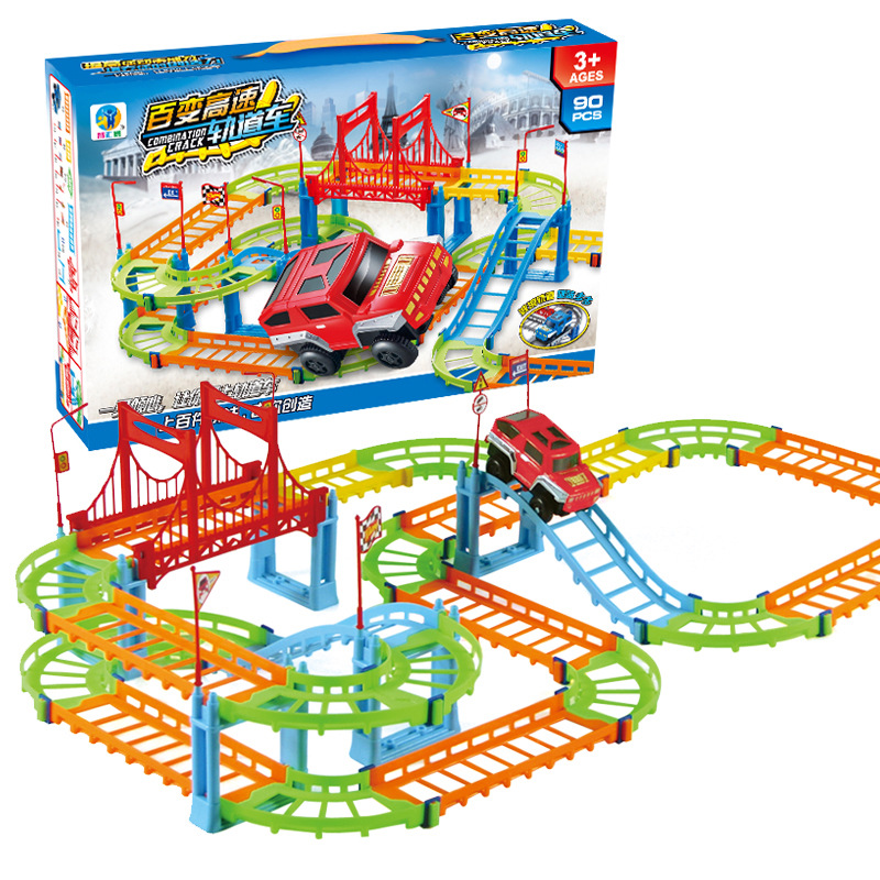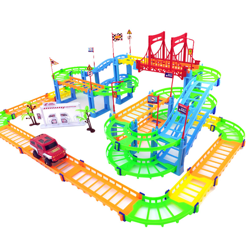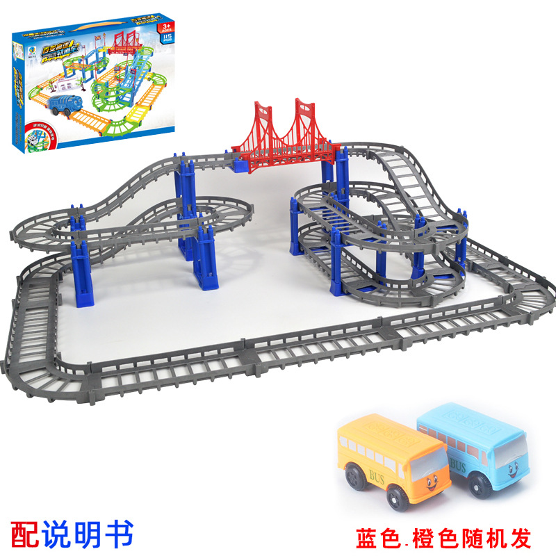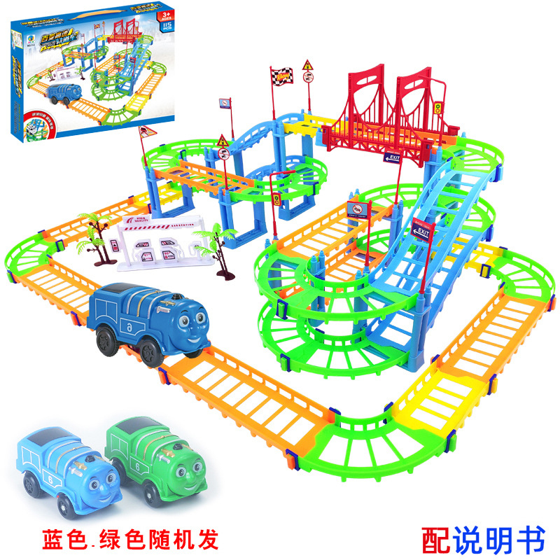 电动双层轨道车益智儿童百变赛车拼装轨道火车diy玩具幼儿园礼品