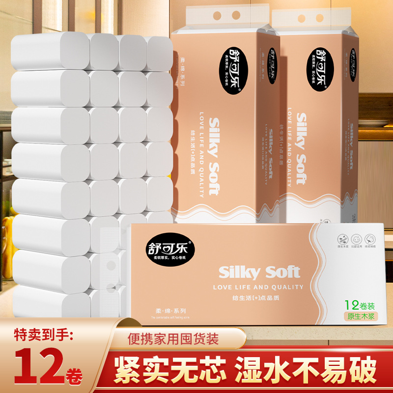 72卷家用卫生卷纸木浆实惠装整提无芯卷筒纸巾木浆厕所厕纸抽手纸