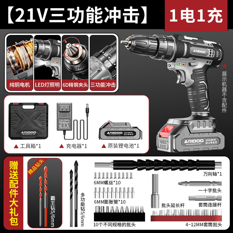 手电钻冲击钻转家用小手枪钻锂电工具多功能手持充电式电动螺丝刀