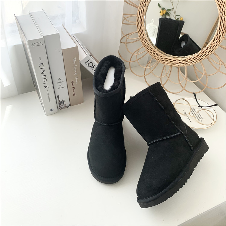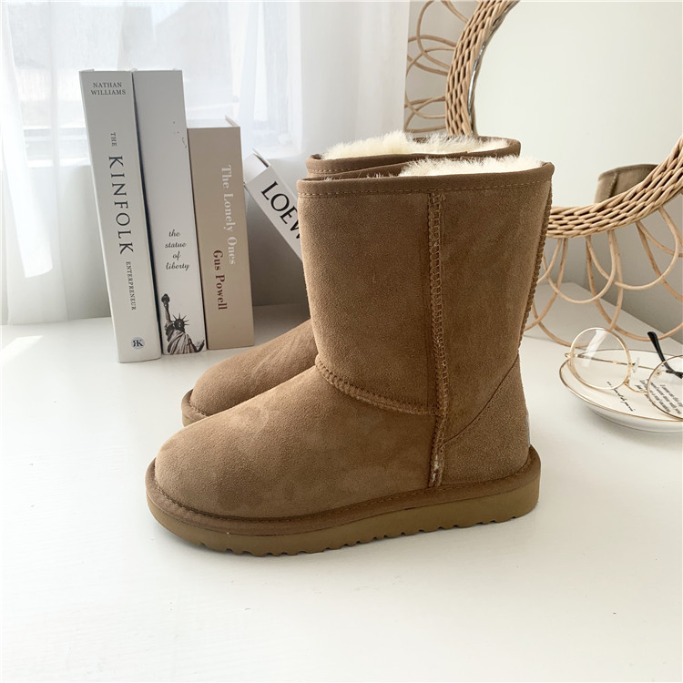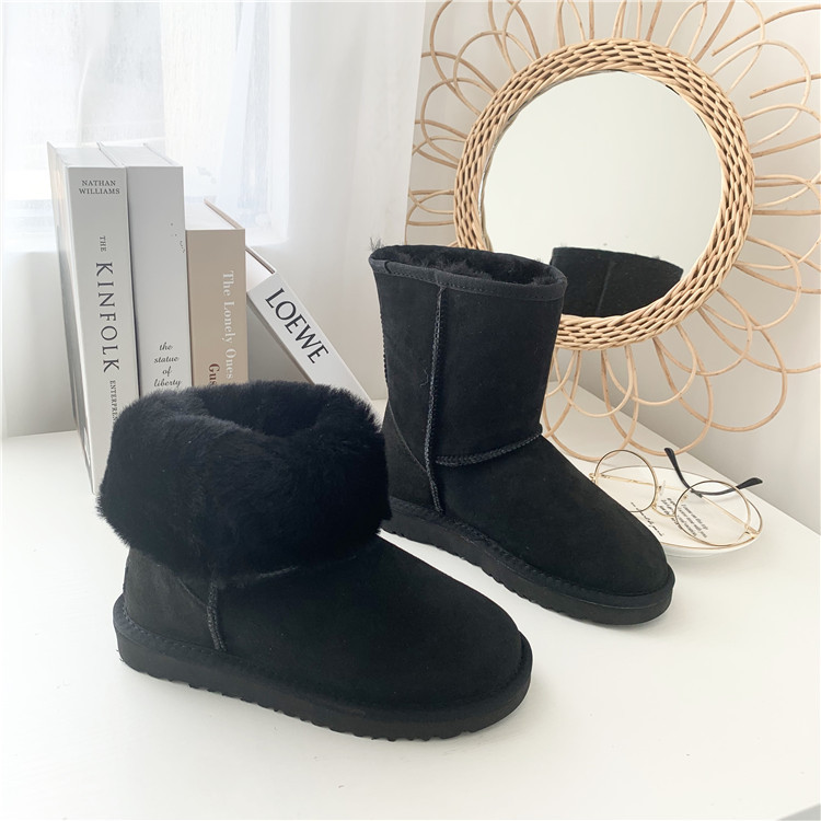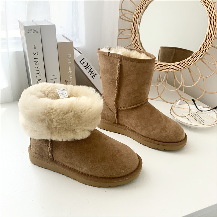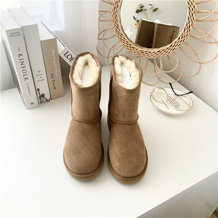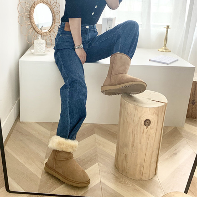 河南桑坡雪地靴羊皮毛一体中筒加绒加厚保暖羊毛棉靴子冬季鞋女款