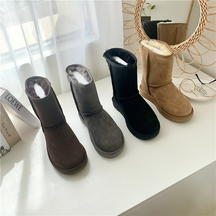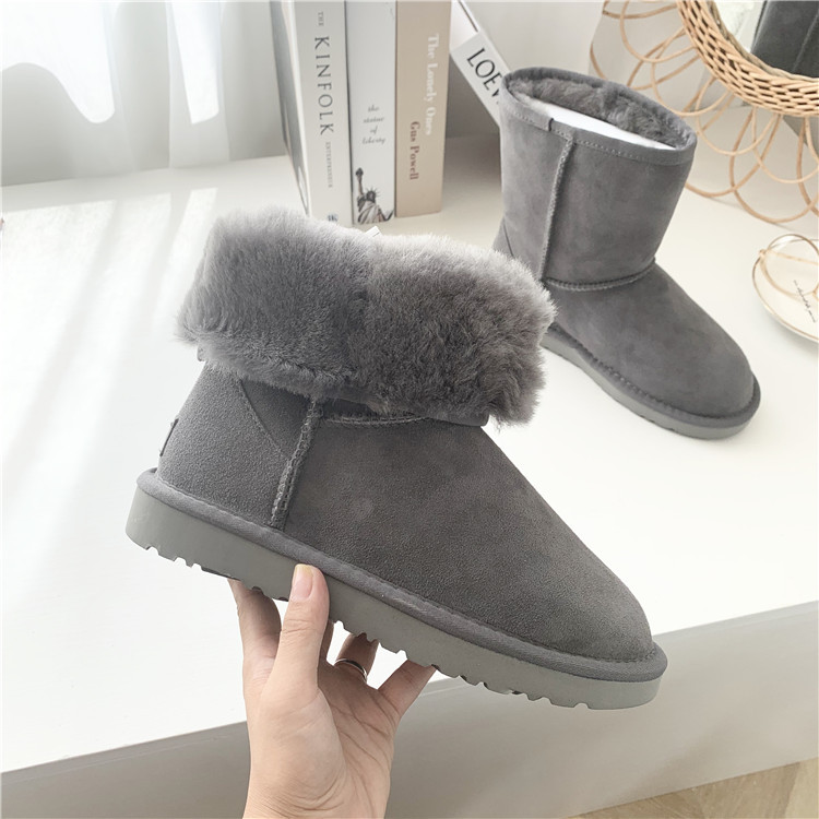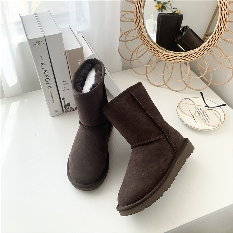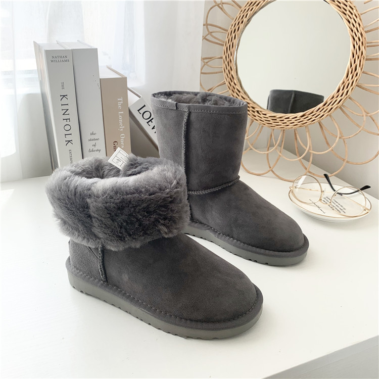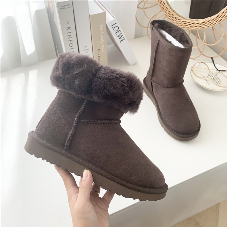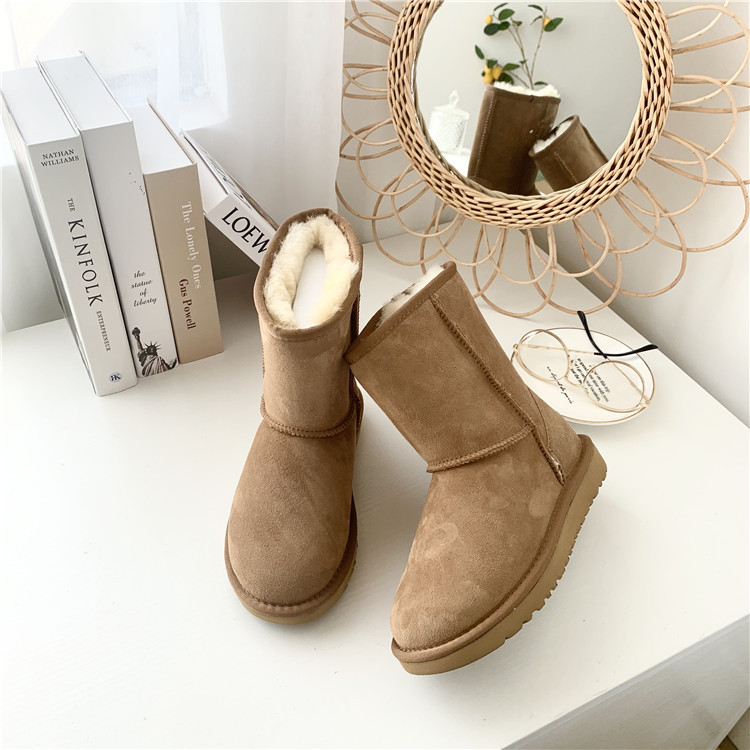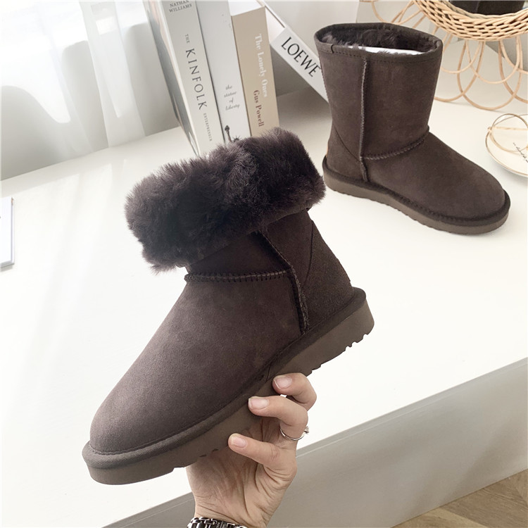河南桑坡雪地靴羊皮毛一体中筒加绒加厚保暖羊毛棉靴子冬季鞋女款
