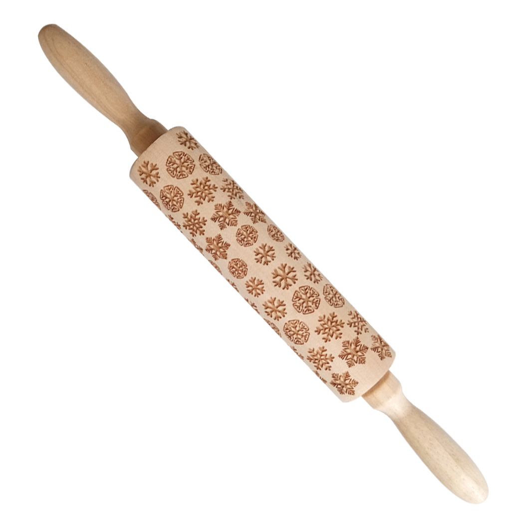 新款木质圣诞节印花擀面杖木制雕刻压花擀面杖曲奇饼干面棍工艺品
