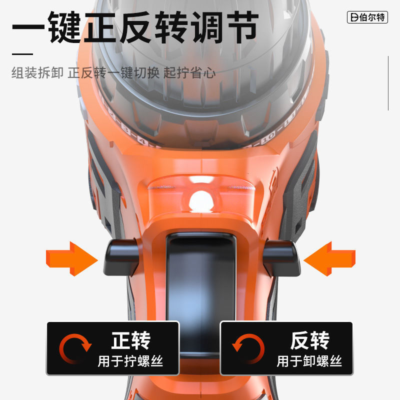 伯尔特充电手电钻双速锂电钻家用多功能冲击手枪钻电动螺丝刀工具