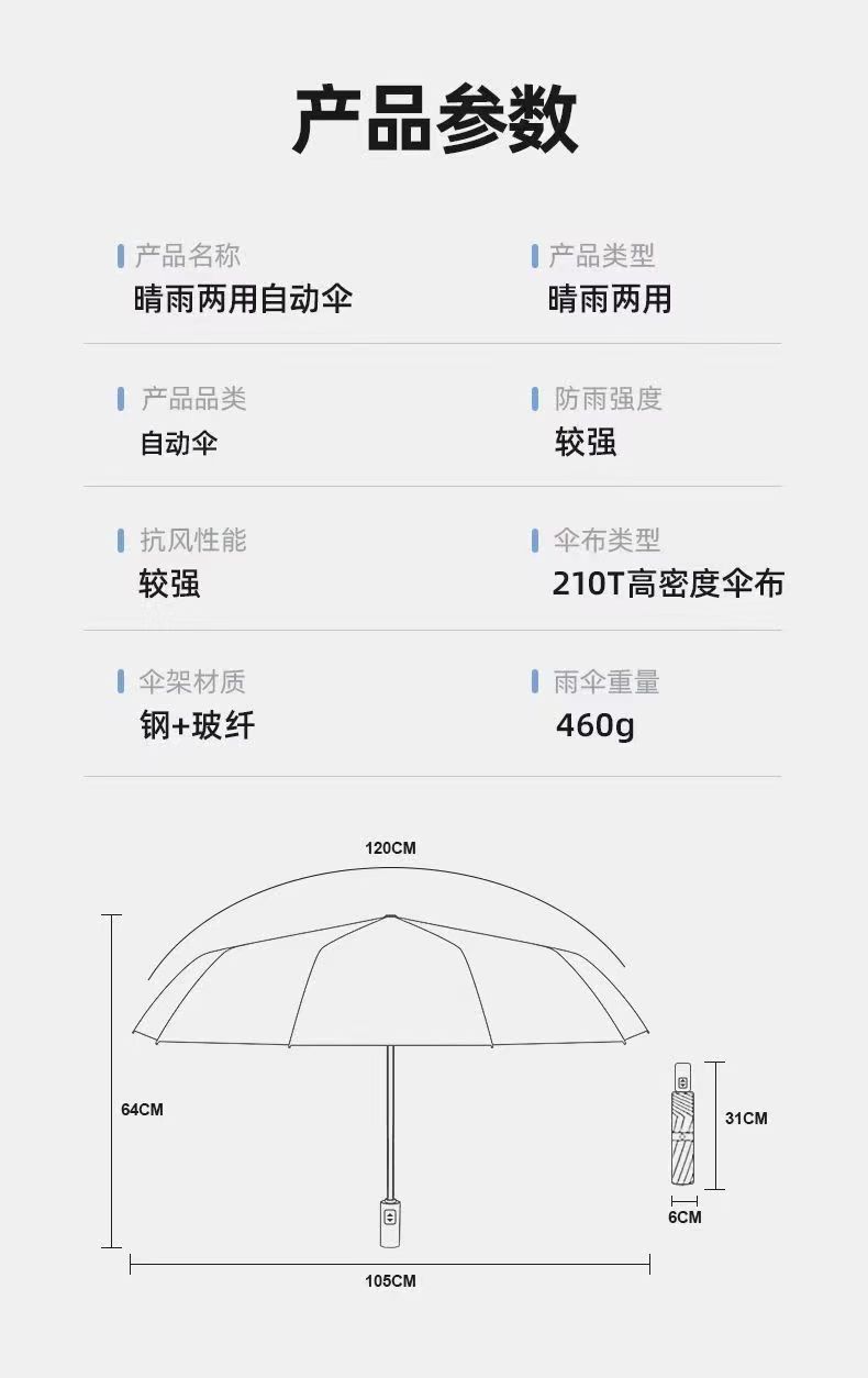 全自动黑胶防晒雨伞折叠伞高级感遮阳伞太阳伞男士晴雨两用伞定制