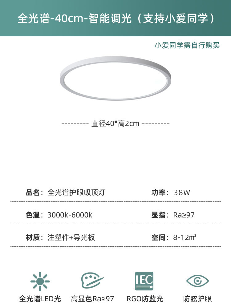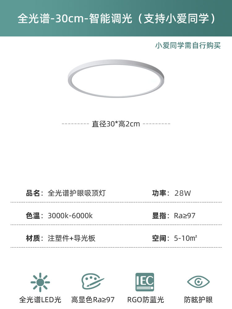 超薄护眼全光谱吸顶灯现代简约主卧灯客厅灯儿童卧室主灯具casagd