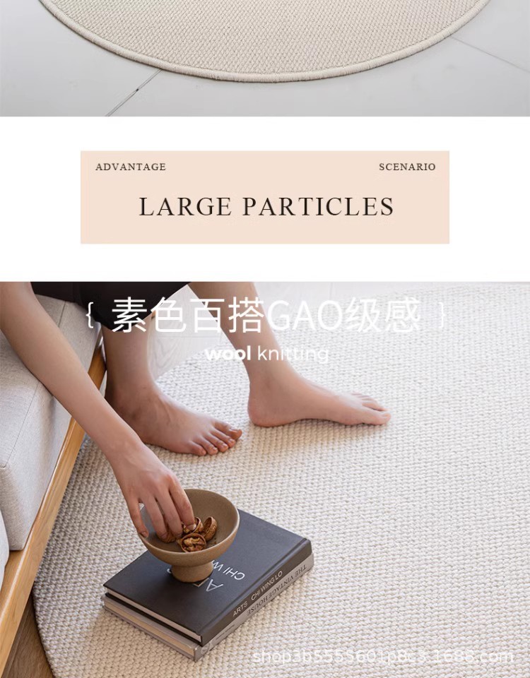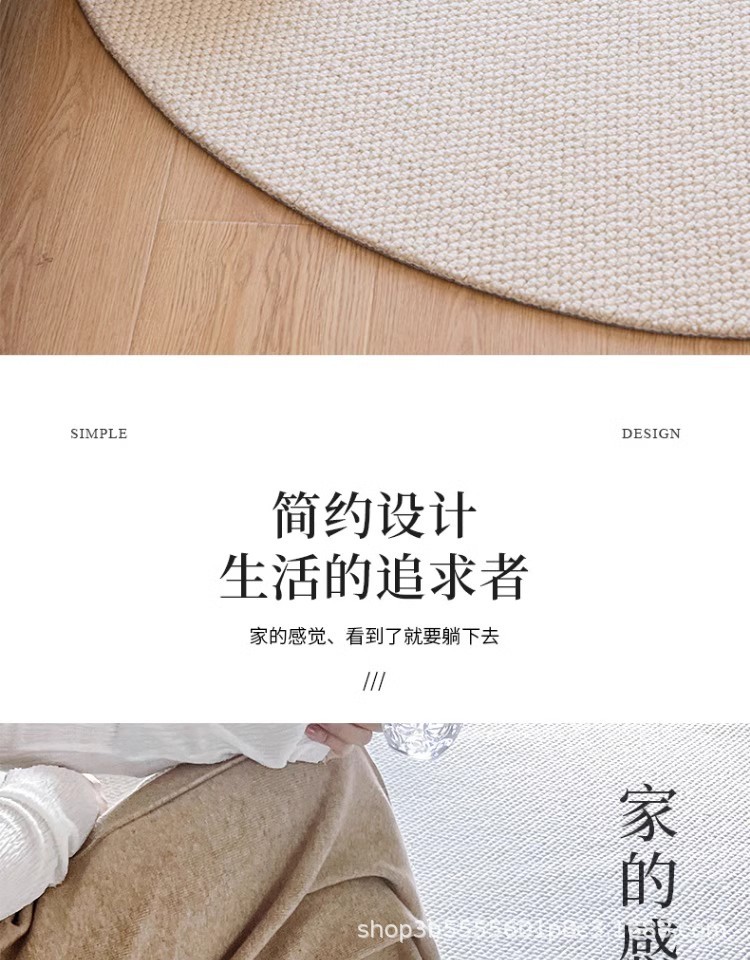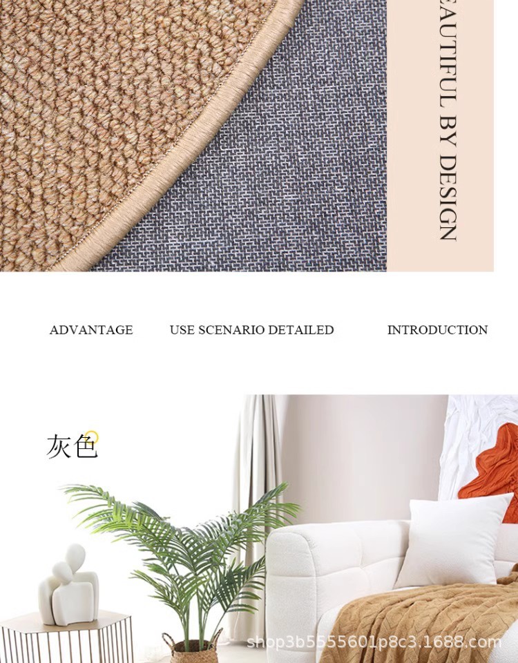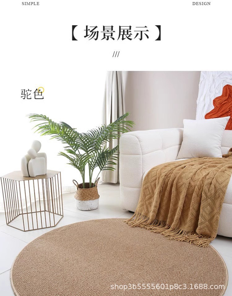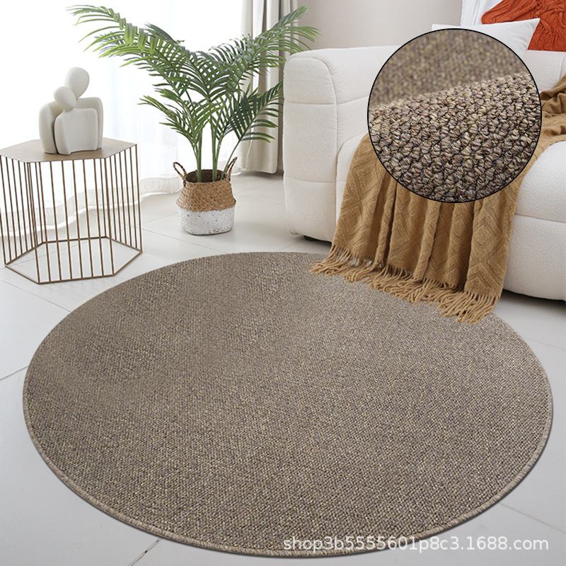 圆形地毯高级感客厅茶几毯仿剑麻素色隔音地垫书房椅子垫耐刮耐脏
