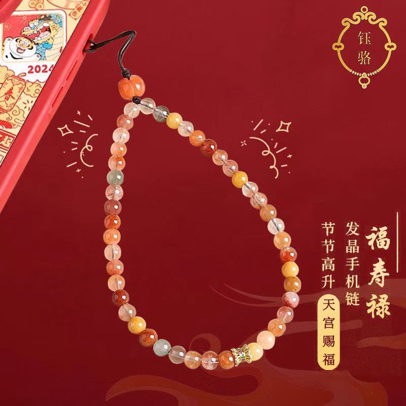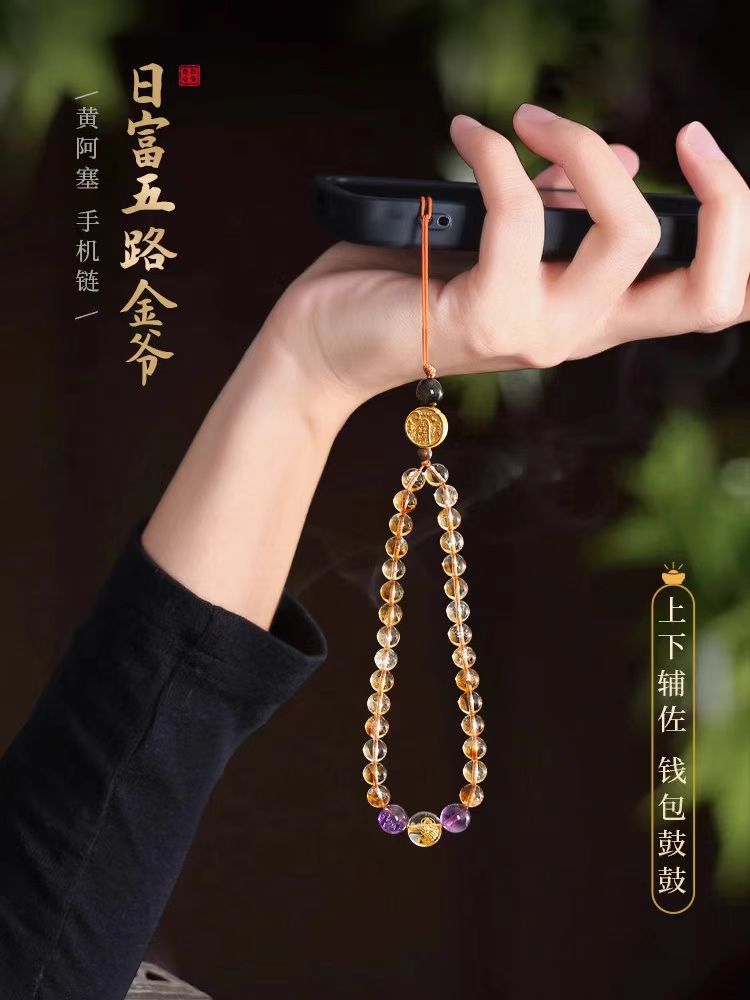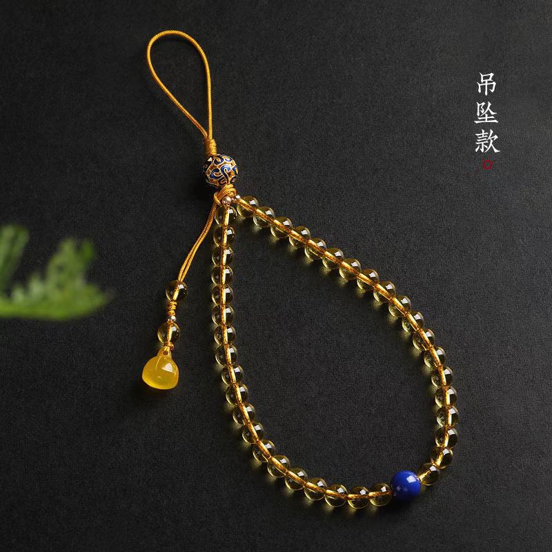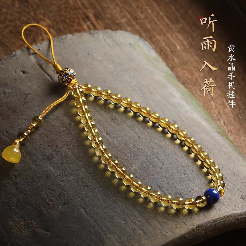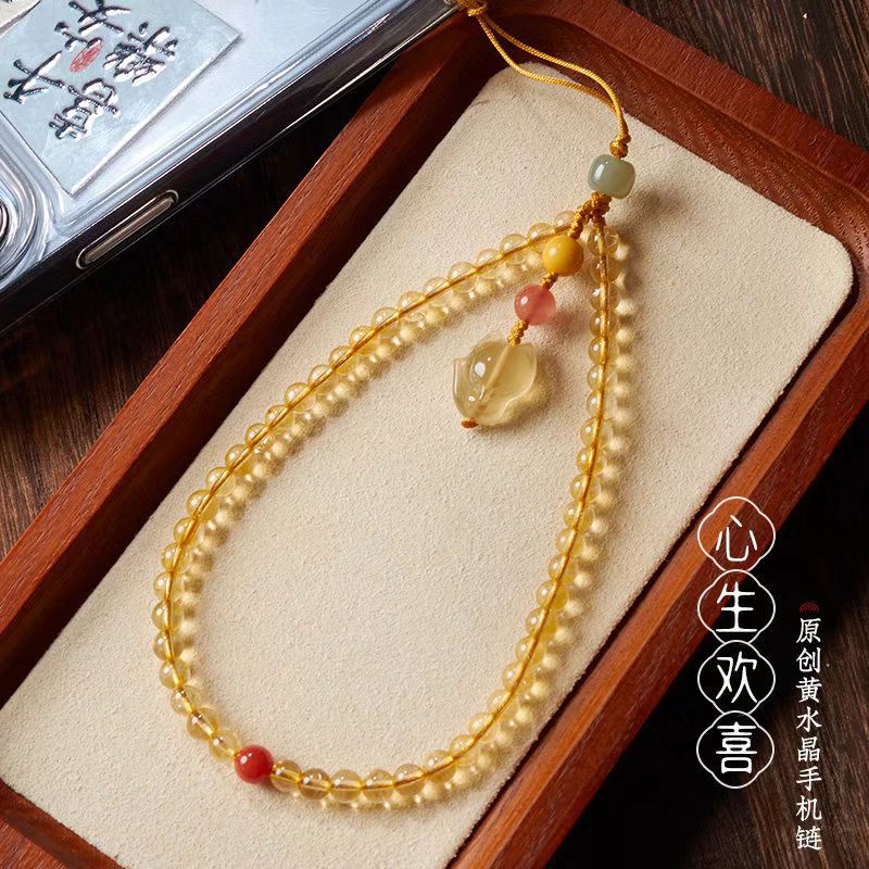 新中式手机挂绳 黄水晶手机链 男女高端精致创意手腕挂件防丢吊坠