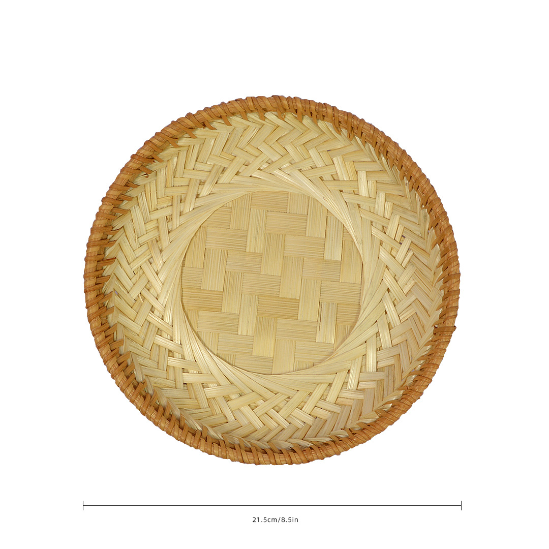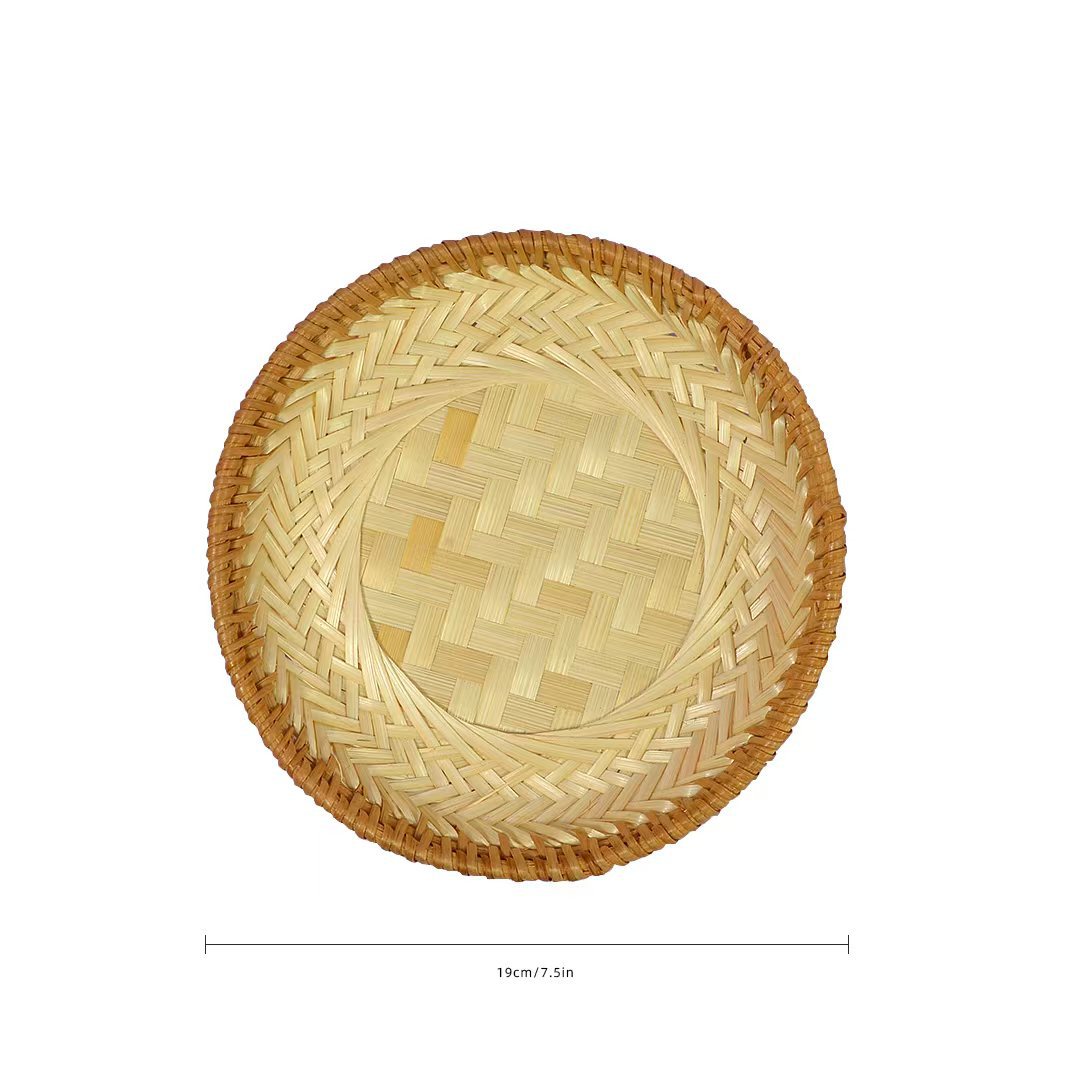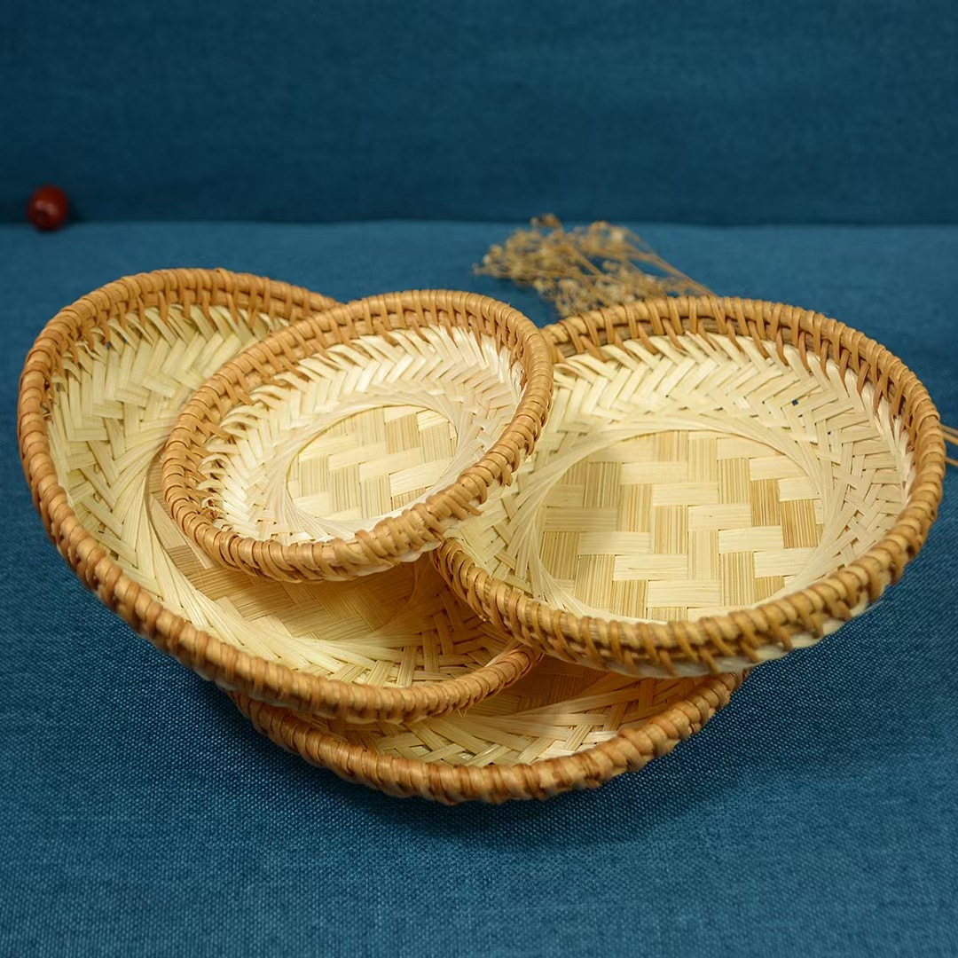手工竹编制品篮小号圆形收纳篮竹盘竹碟创意装饰家居簸箕托盘家用