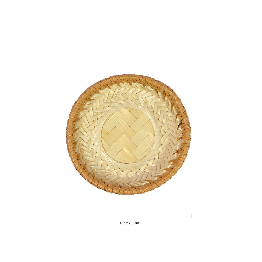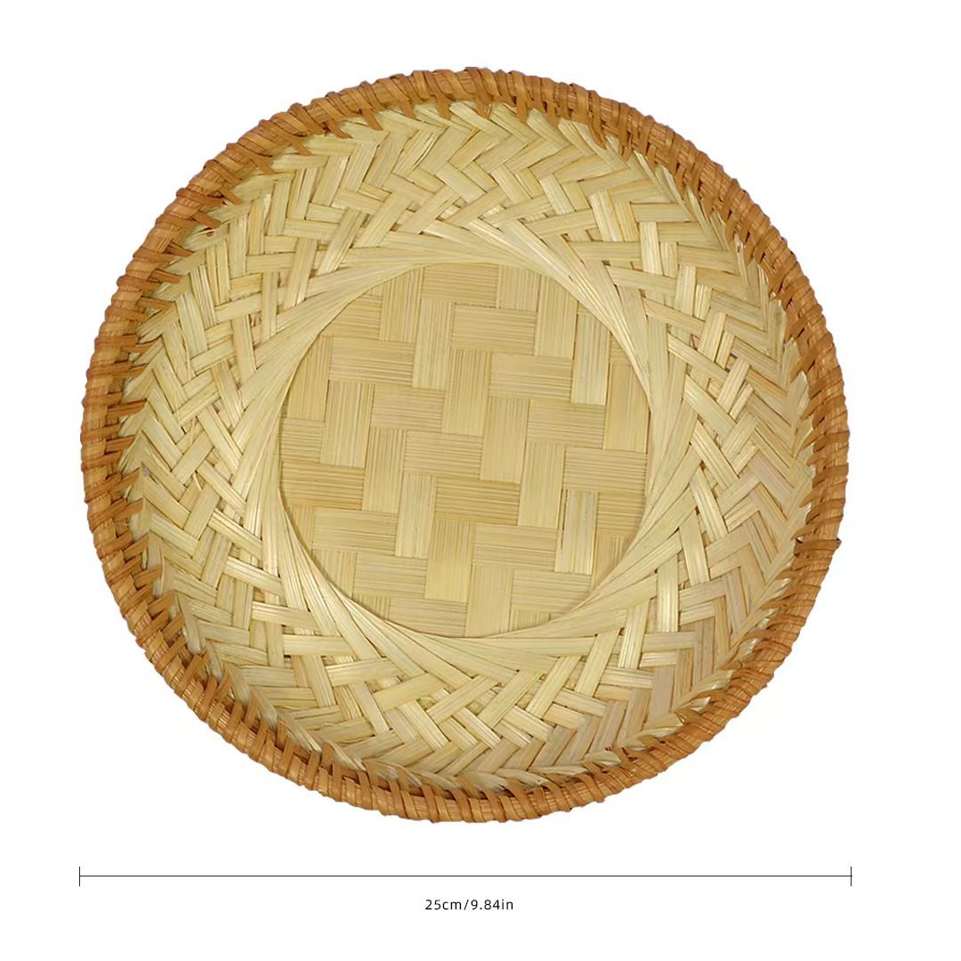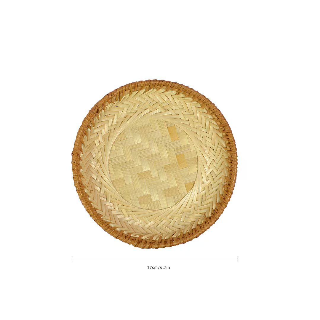 手工竹编制品篮小号圆形收纳篮竹盘竹碟创意装饰家居簸箕托盘家用