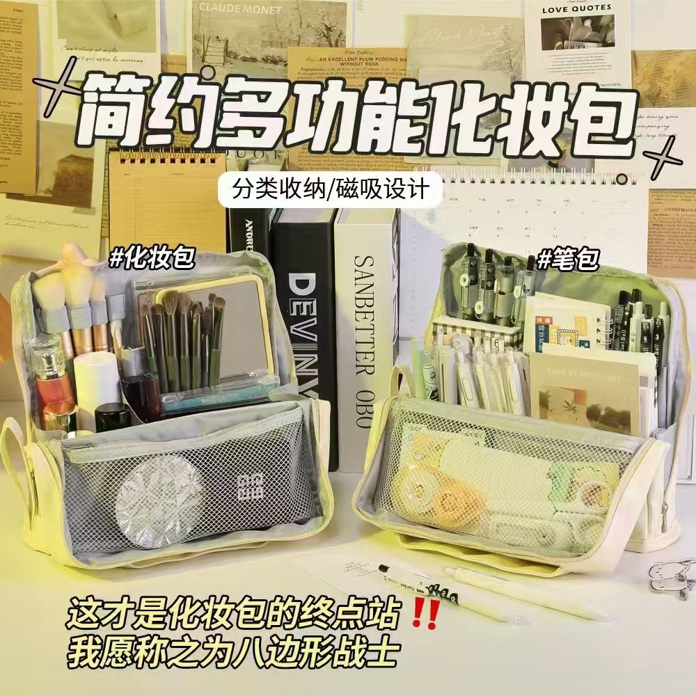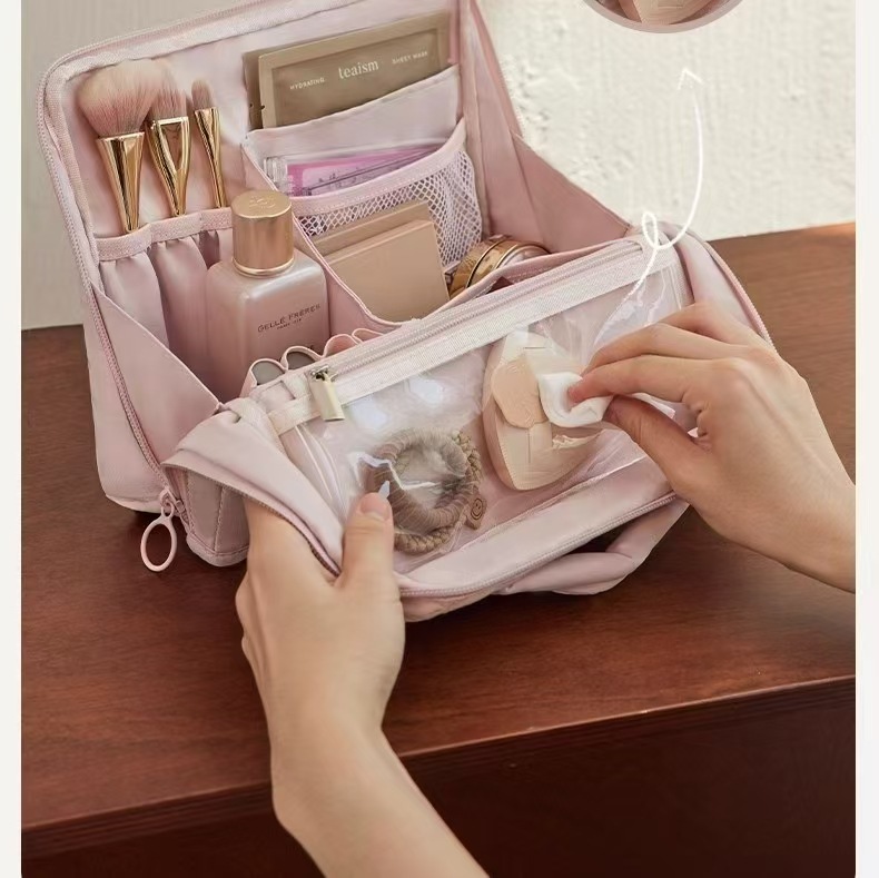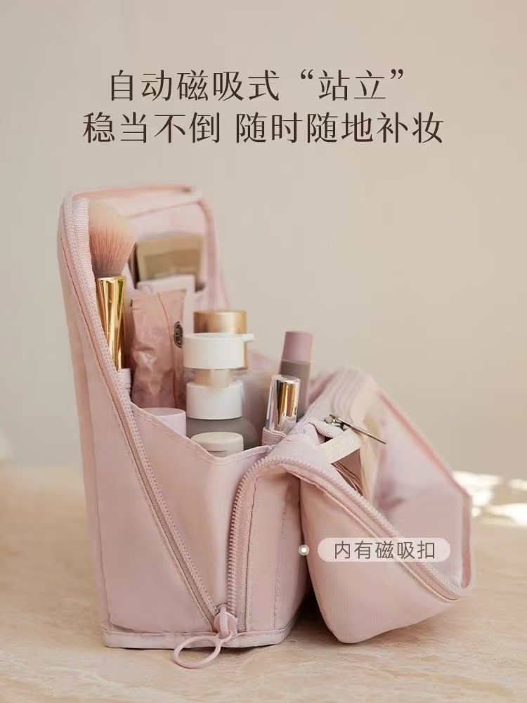 跨境新款立式化妆包大容量高颜值便携化妆品收纳包分区分层洗漱包