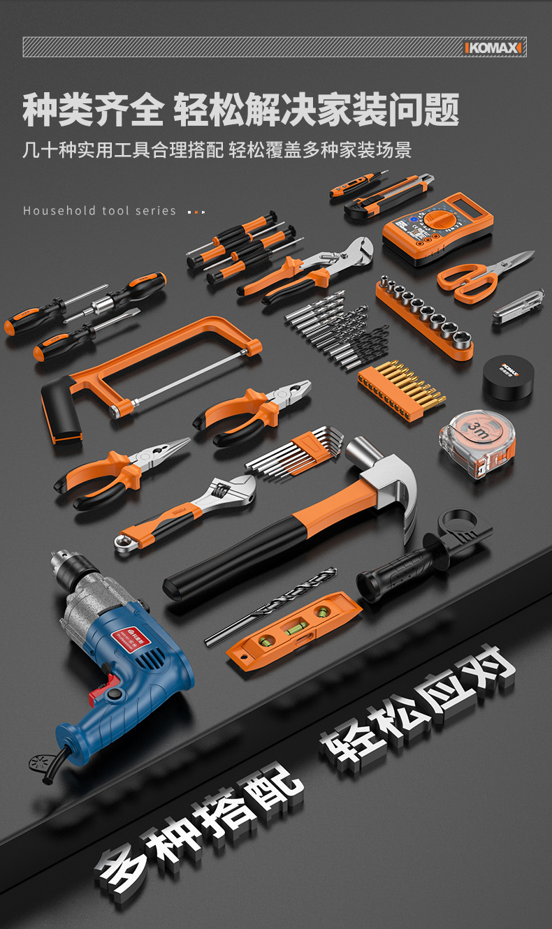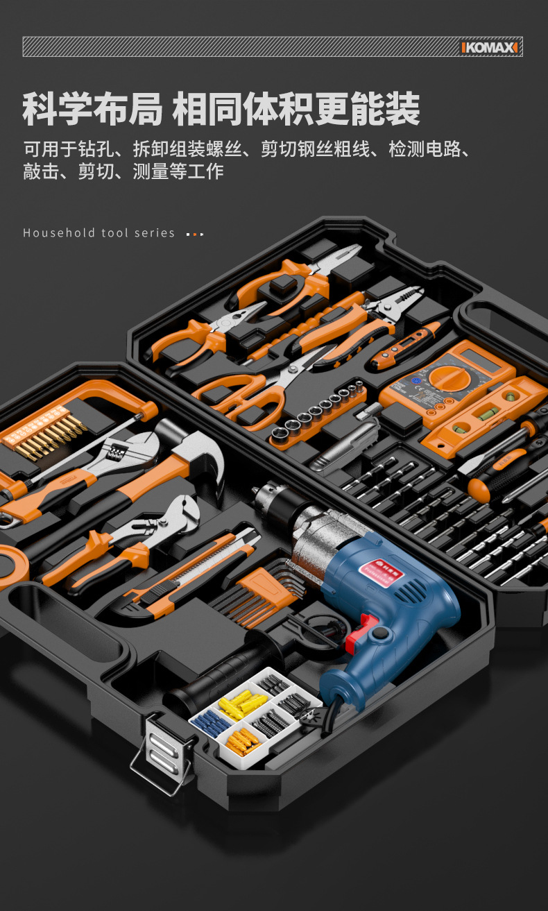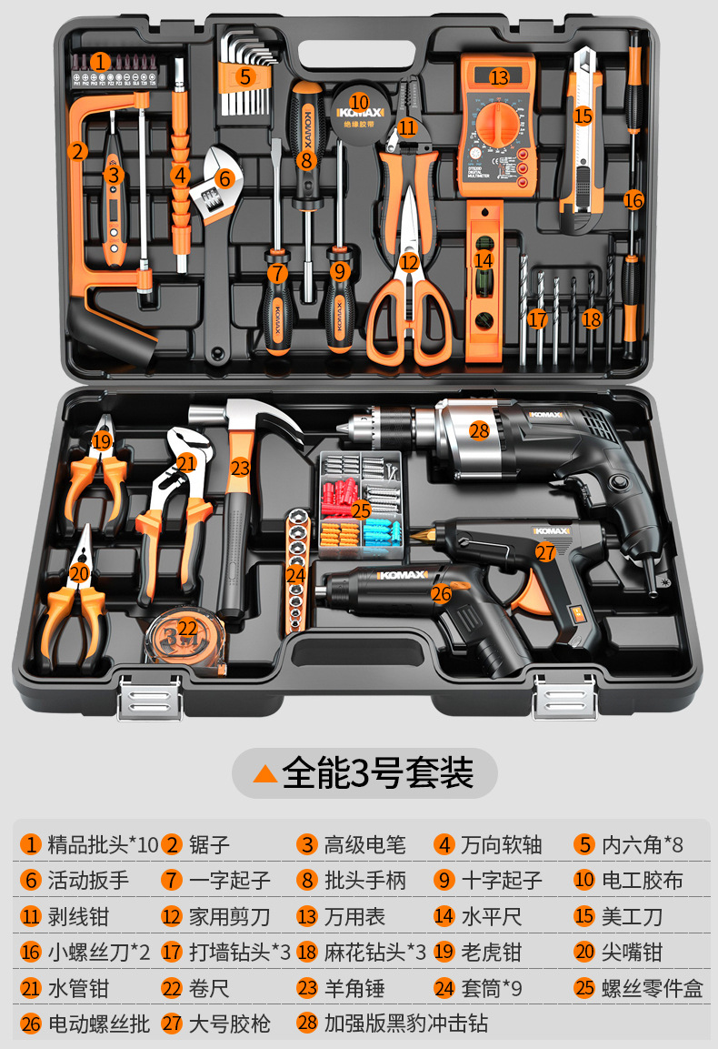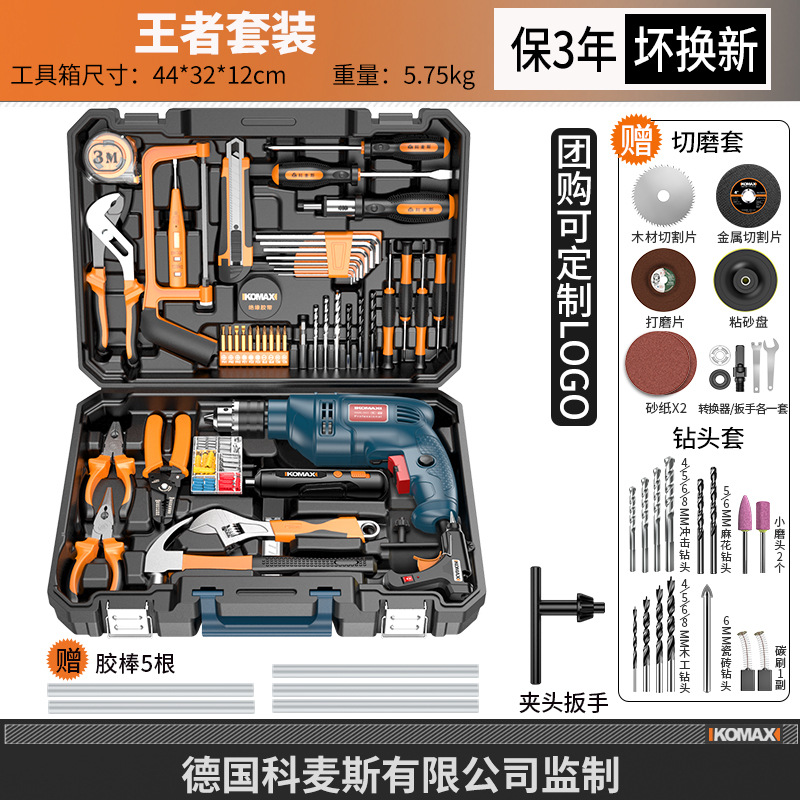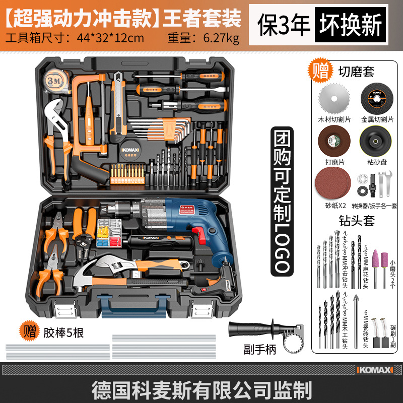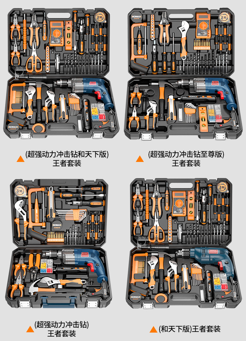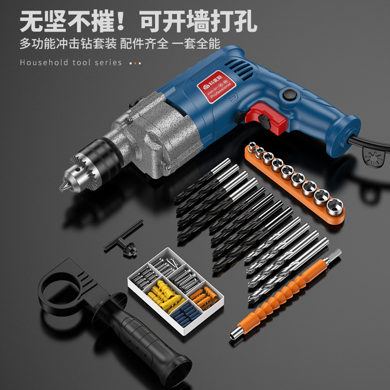 家用五金工具组合套装电工木工专用维修工具电钻冲击钻套装工具箱
