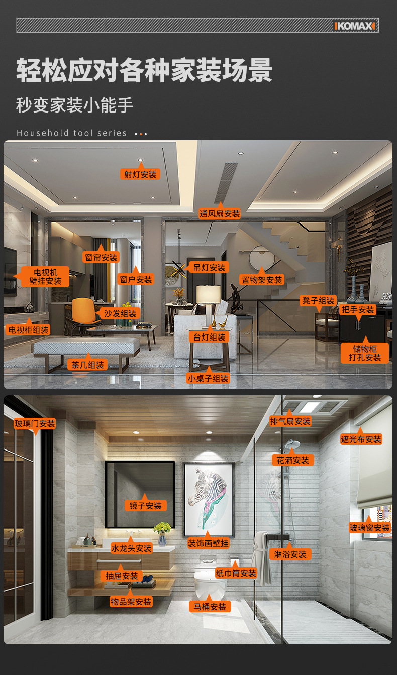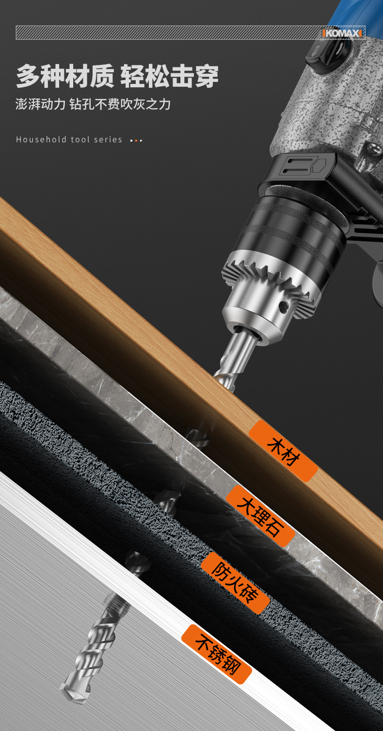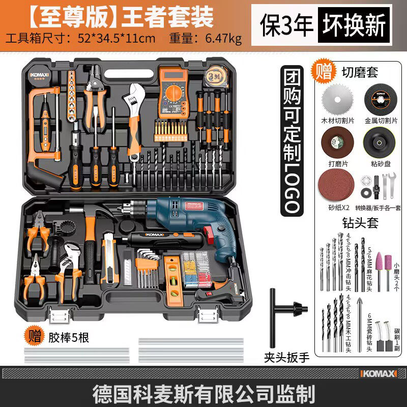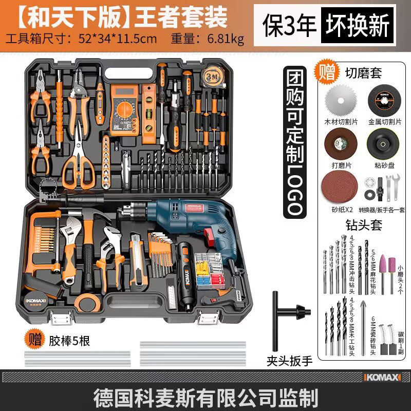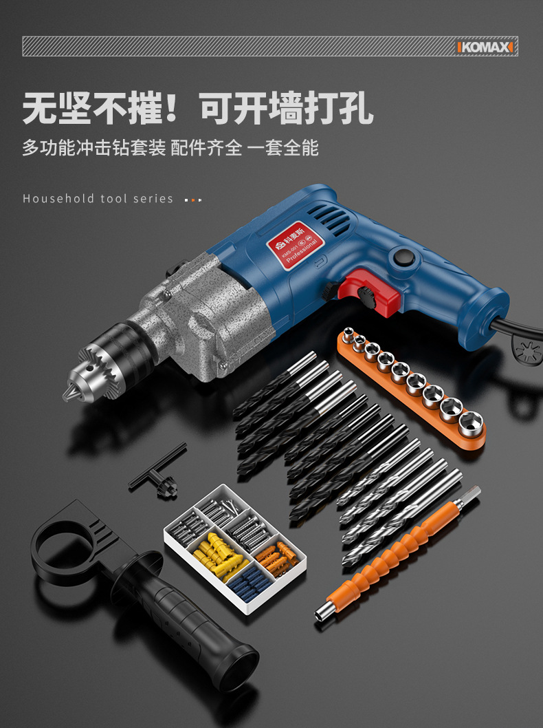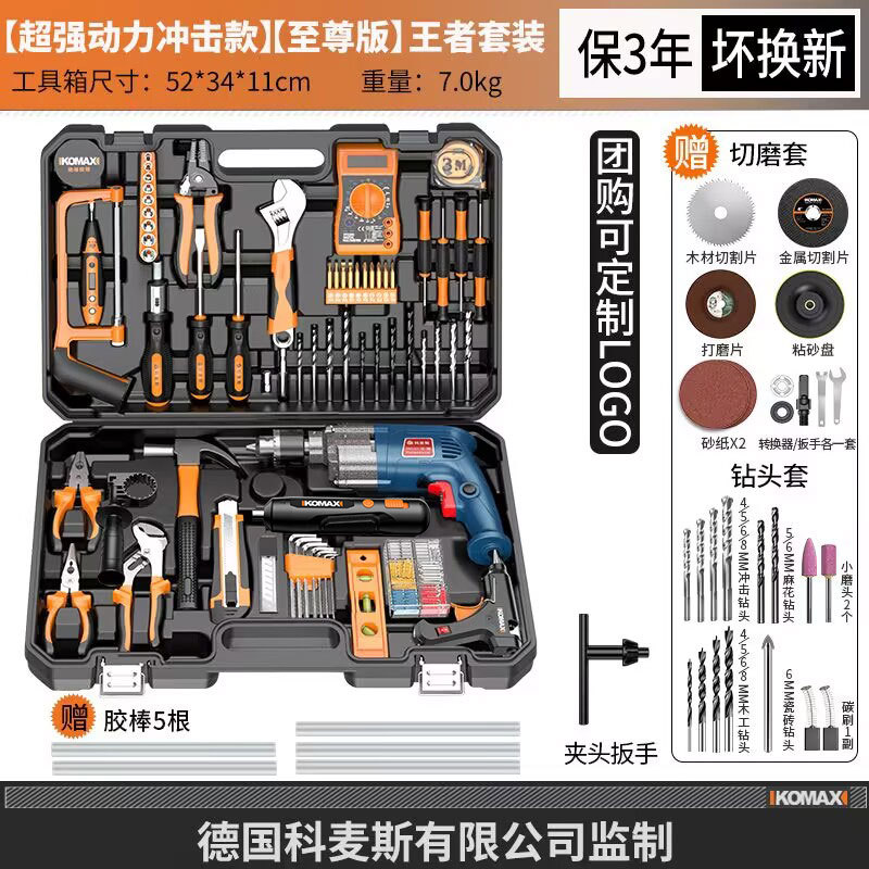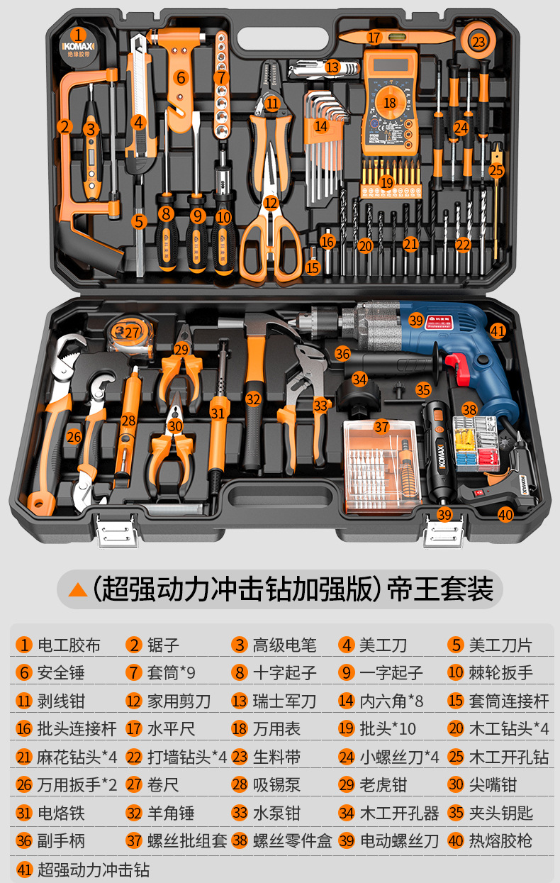 家用五金工具组合套装电工木工专用维修工具电钻冲击钻套装工具箱