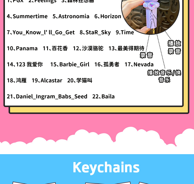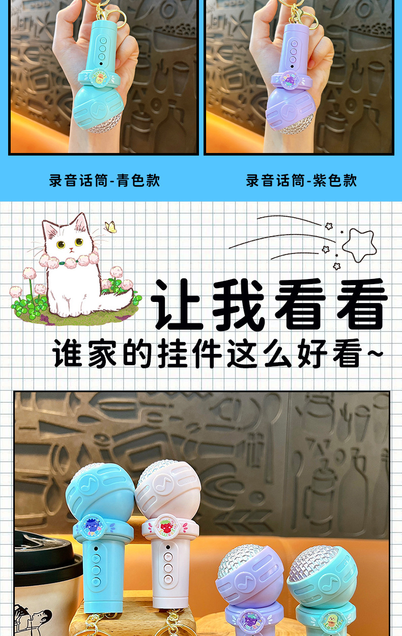 创意多功能录音话筒钥匙扣可爱包包配饰趣味学生玩具挂件礼品批发
