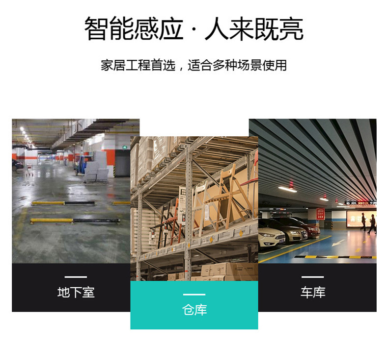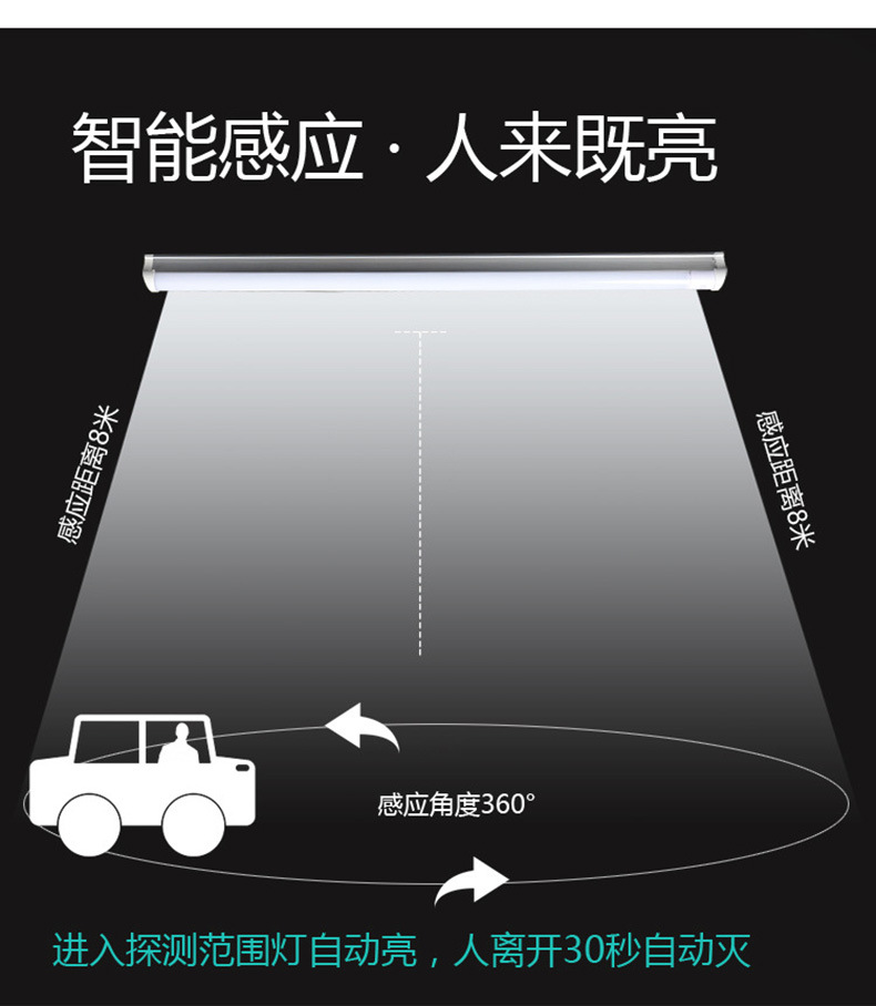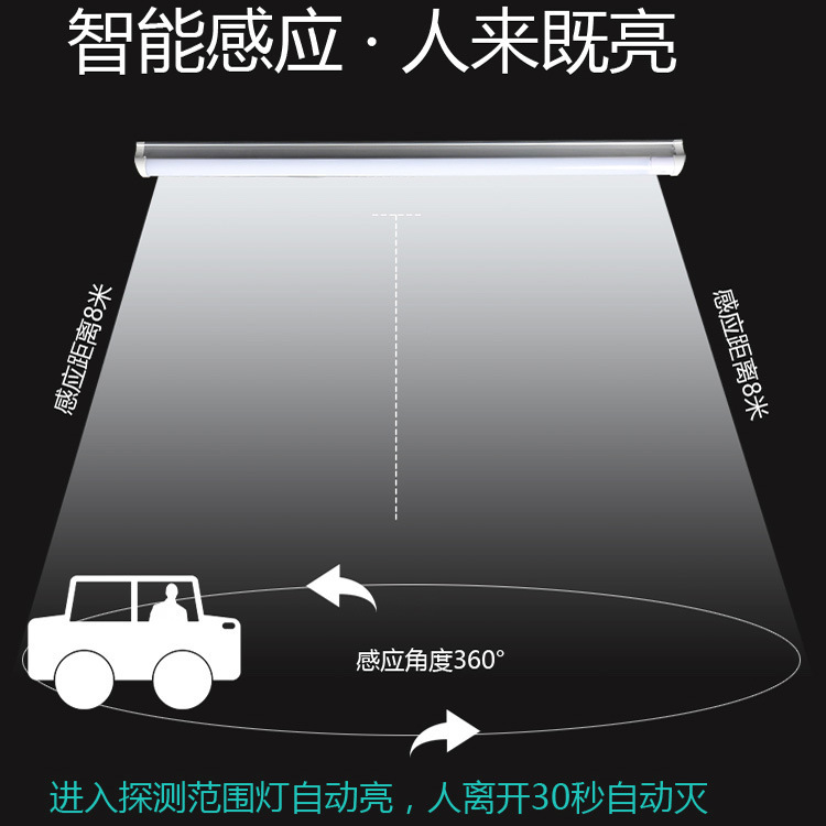 t8led灯管人体感应灯智能无频闪车库照明日光灯具专用批发感应灯