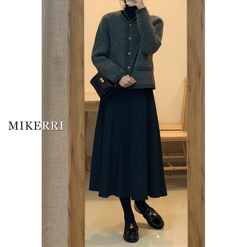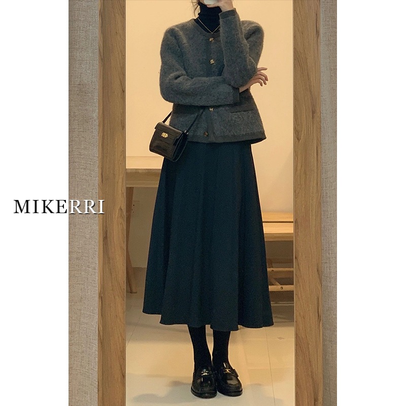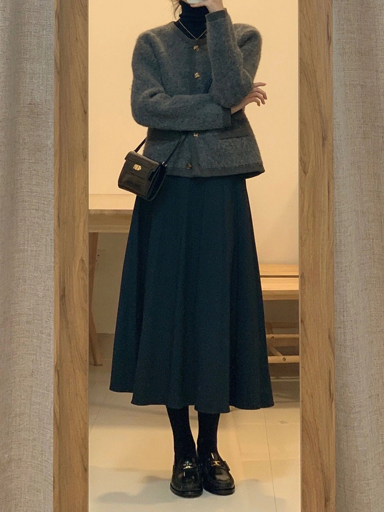 黑色毛呢半身裙女秋季大码胖mm遮肚显瘦梨形身材中长款a字伞裙子