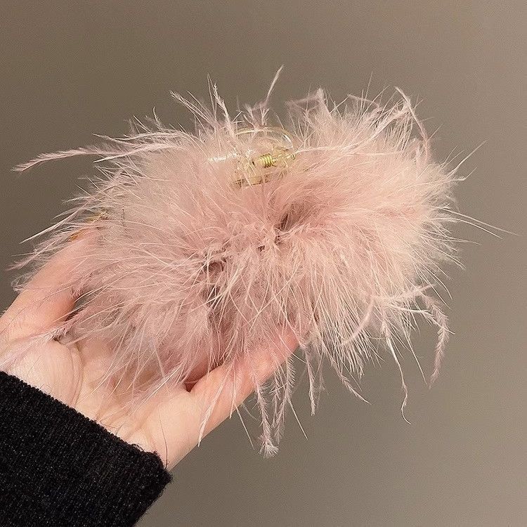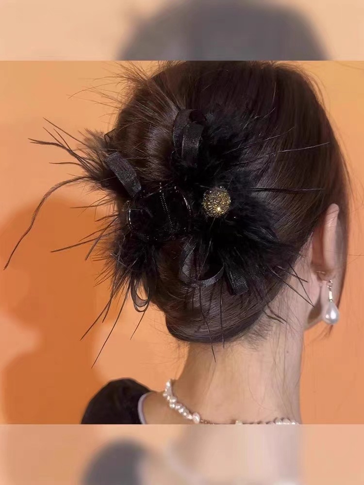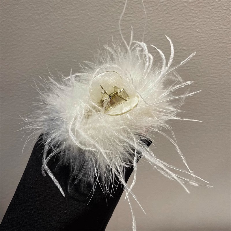 轻奢水钻羽毛抓夹气质后脑勺发夹时尚轻奢鸵鸟毛夹高颜值发卡成人