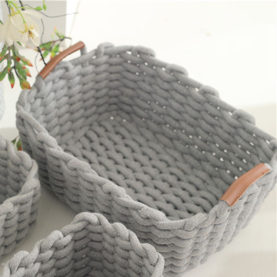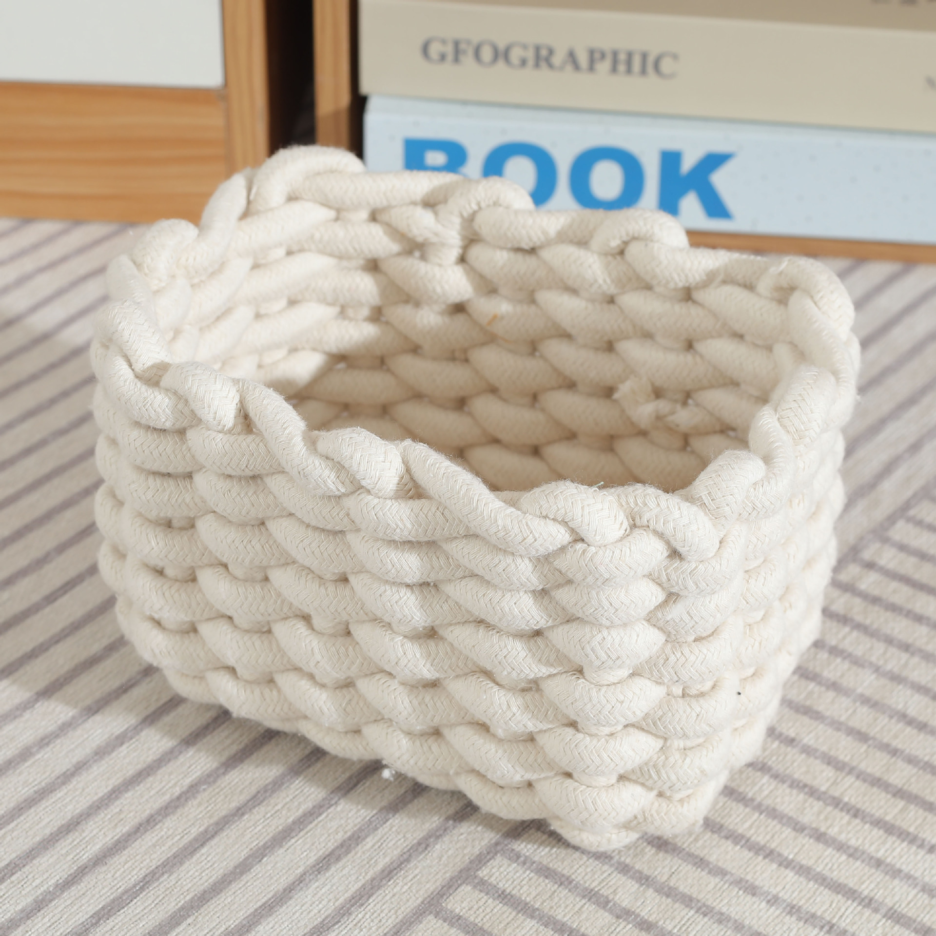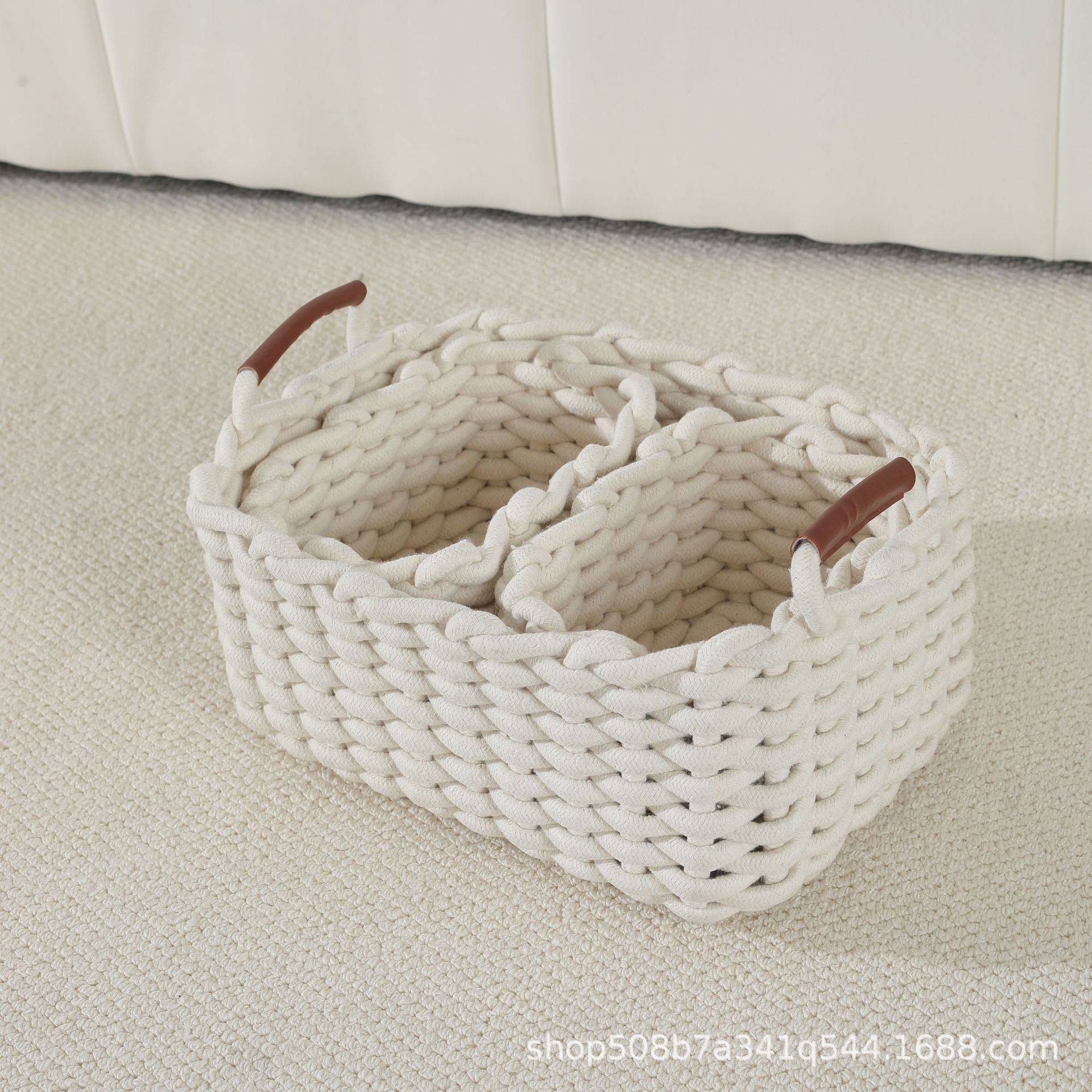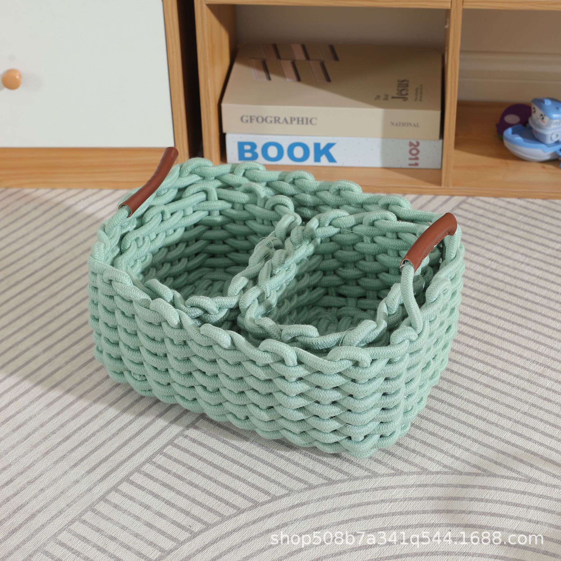 编织粗棉绳收纳筐玄关储物篮多色大小号化妆篮北欧手工桌面杂物筐