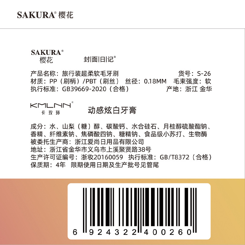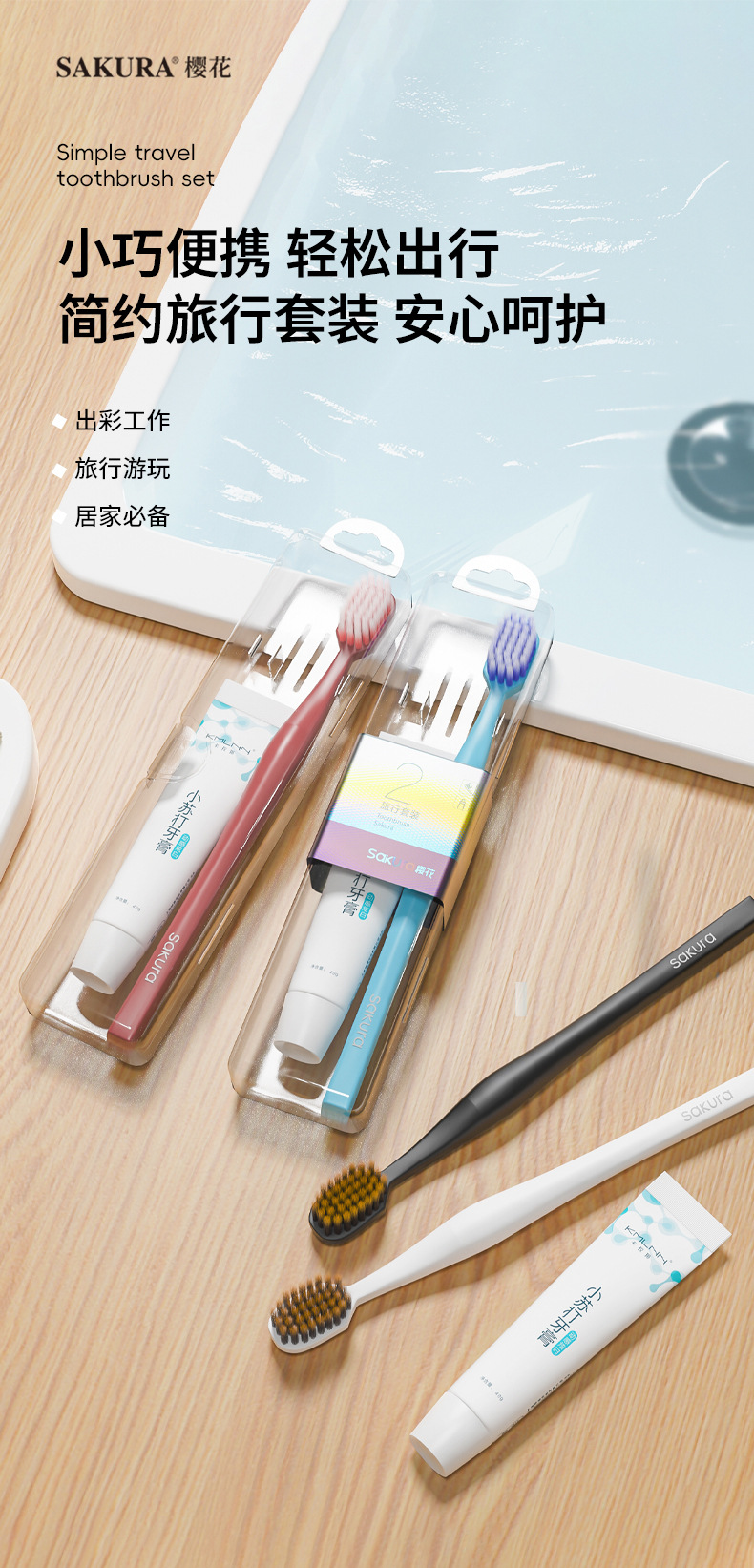 便携式口腔清洁组合套装牙刷牙膏套装成人居家旅行出差樱花SAKURA