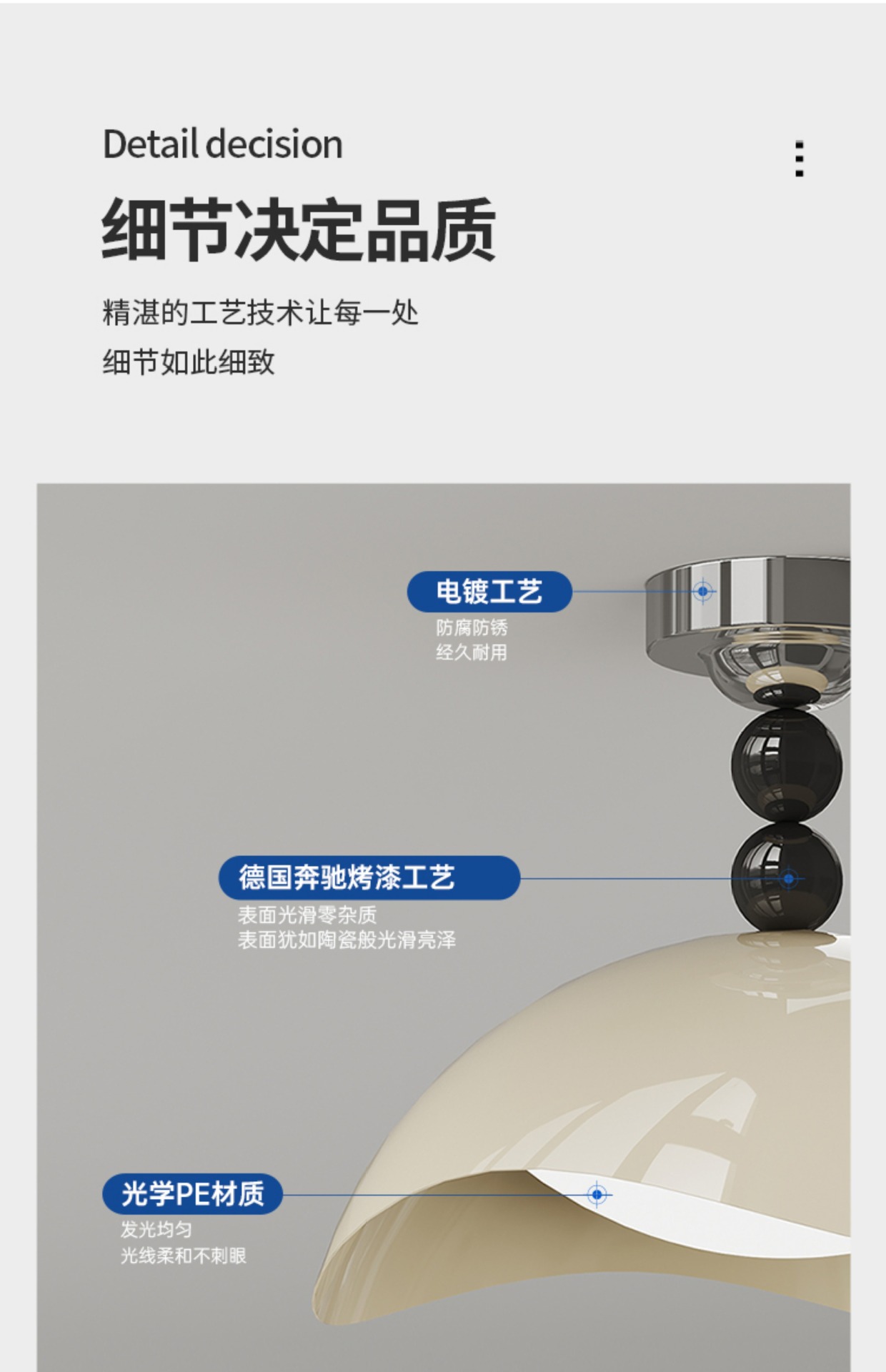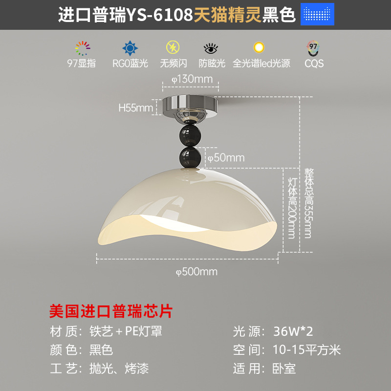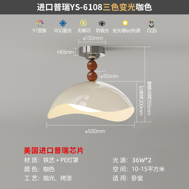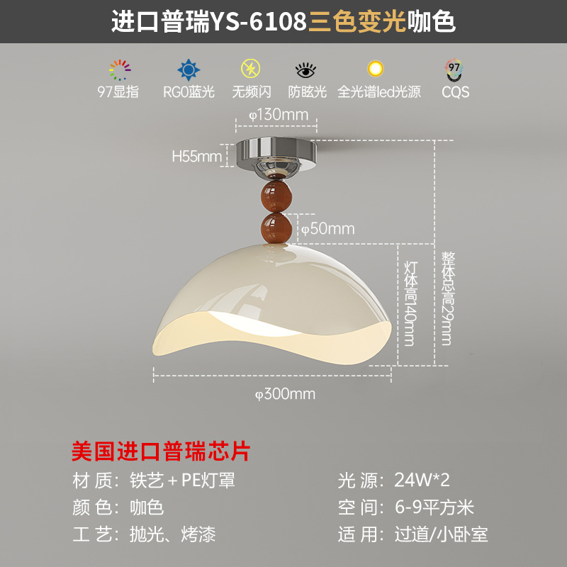 中古风蛋壳卧室吸顶灯法式设计师极简奶油风过道书房间灯具casagd