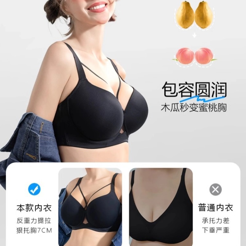 大码无痕内衣女士薄款大胸显小胸防下垂聚拢调整型胖mm文胸罩跨境