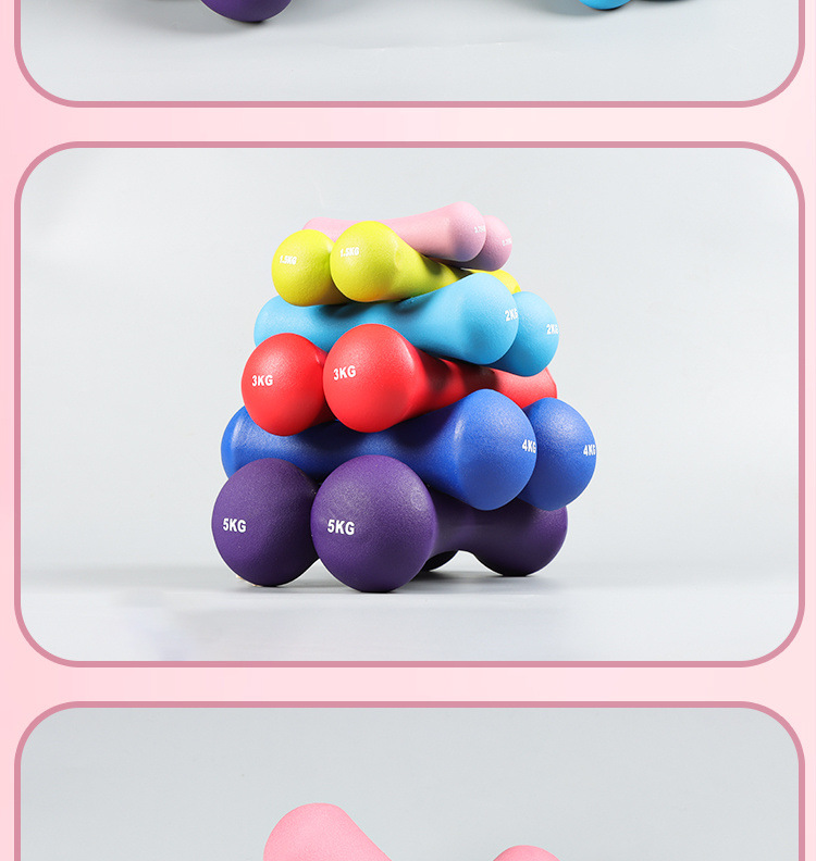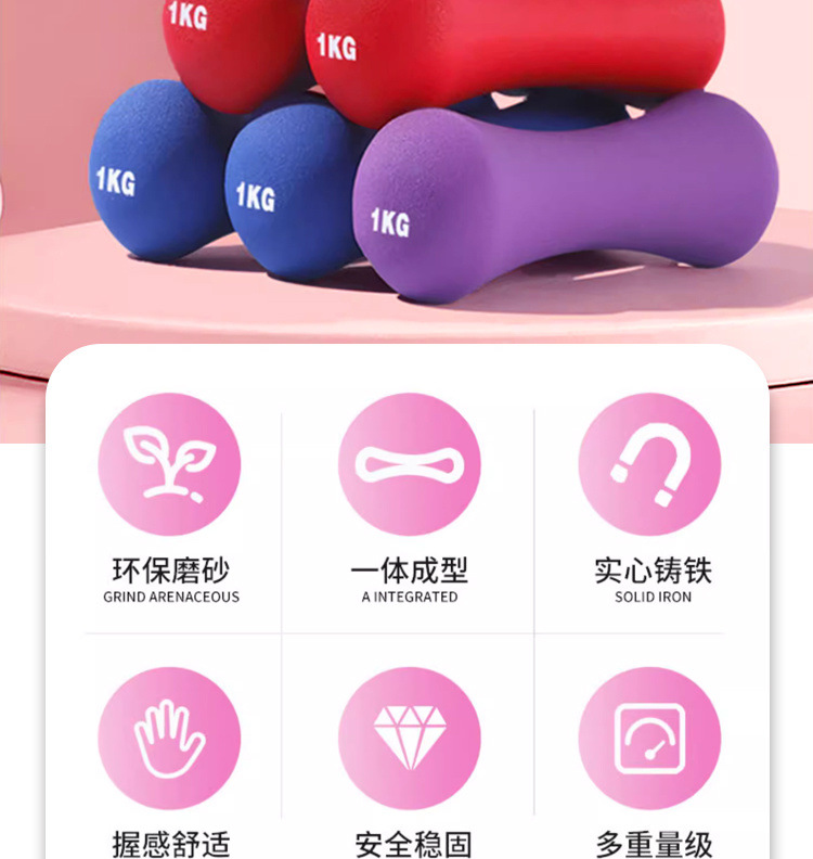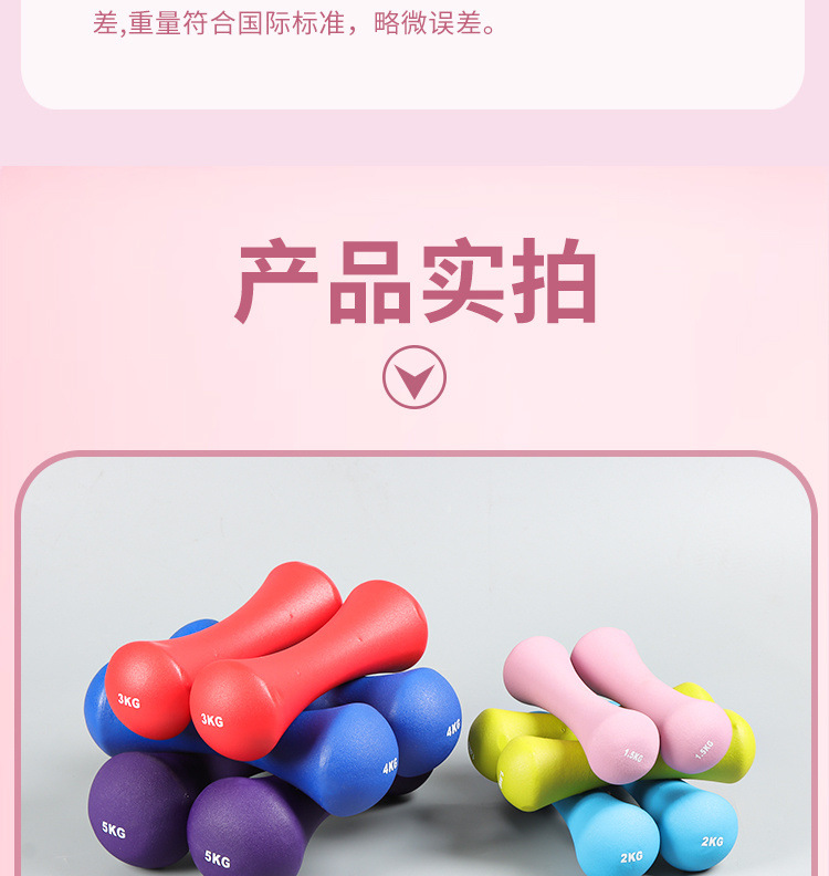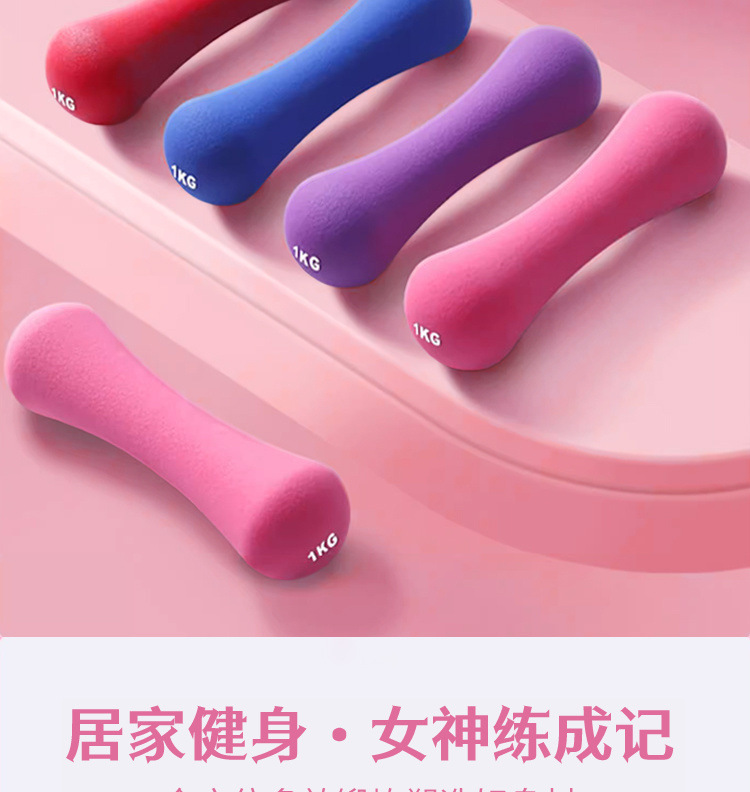 浸塑骨头哑铃单只女士家用健身器材实心铸铁小哑铃糖果色浸塑哑铃