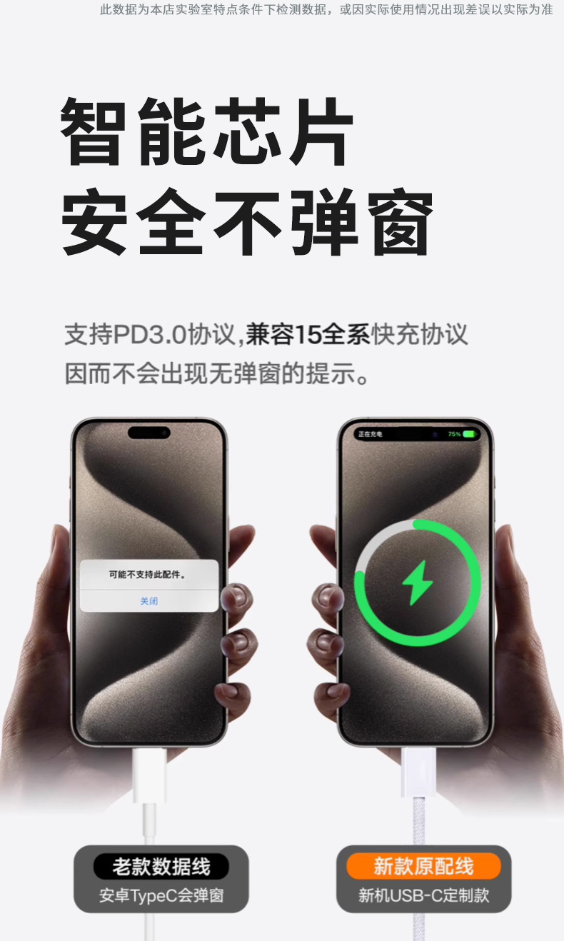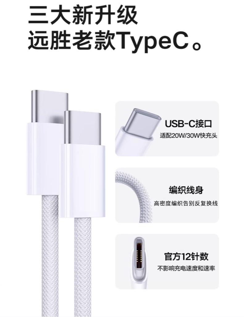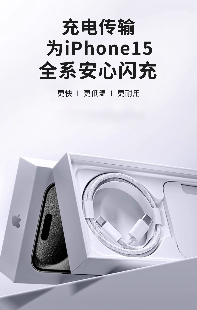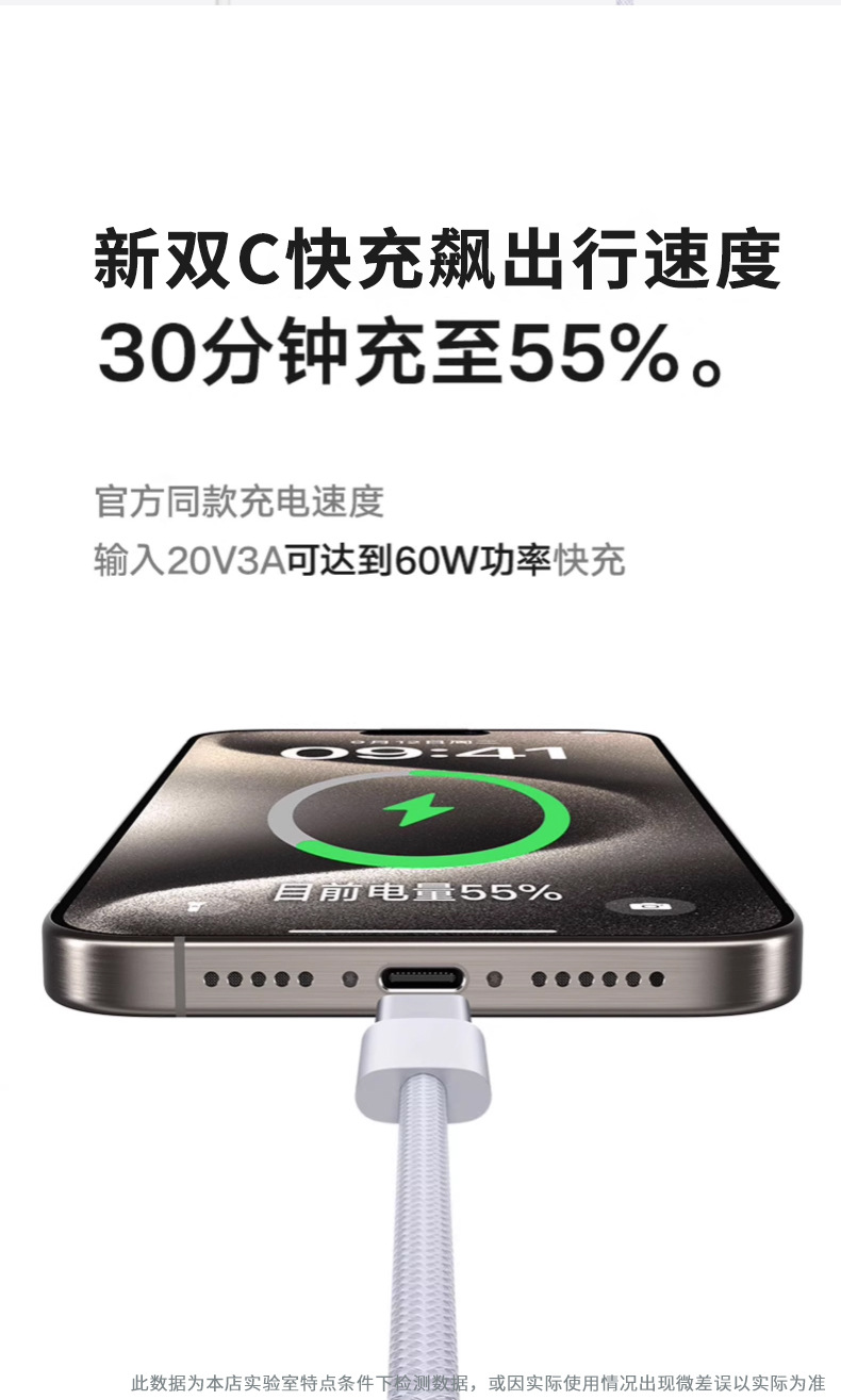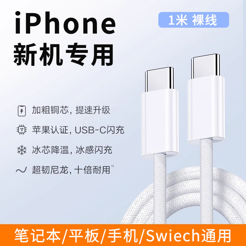 适用于苹果15 C to C编织数据单线 双TYPE-C 60W快充线平板电脑