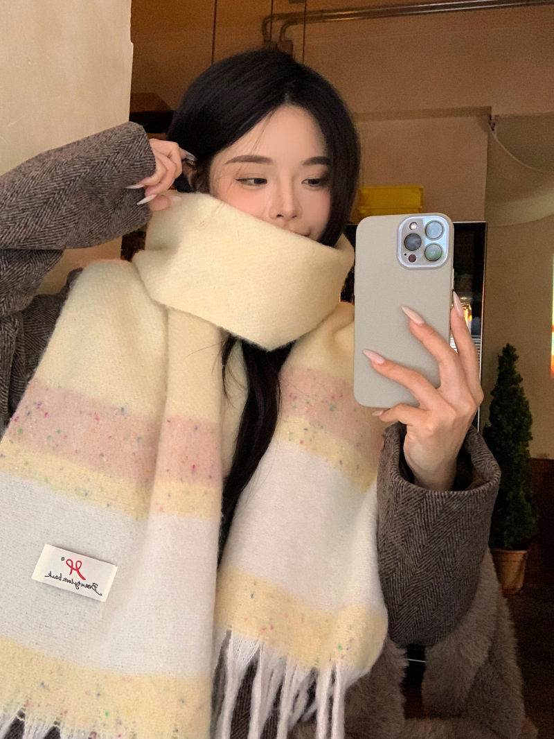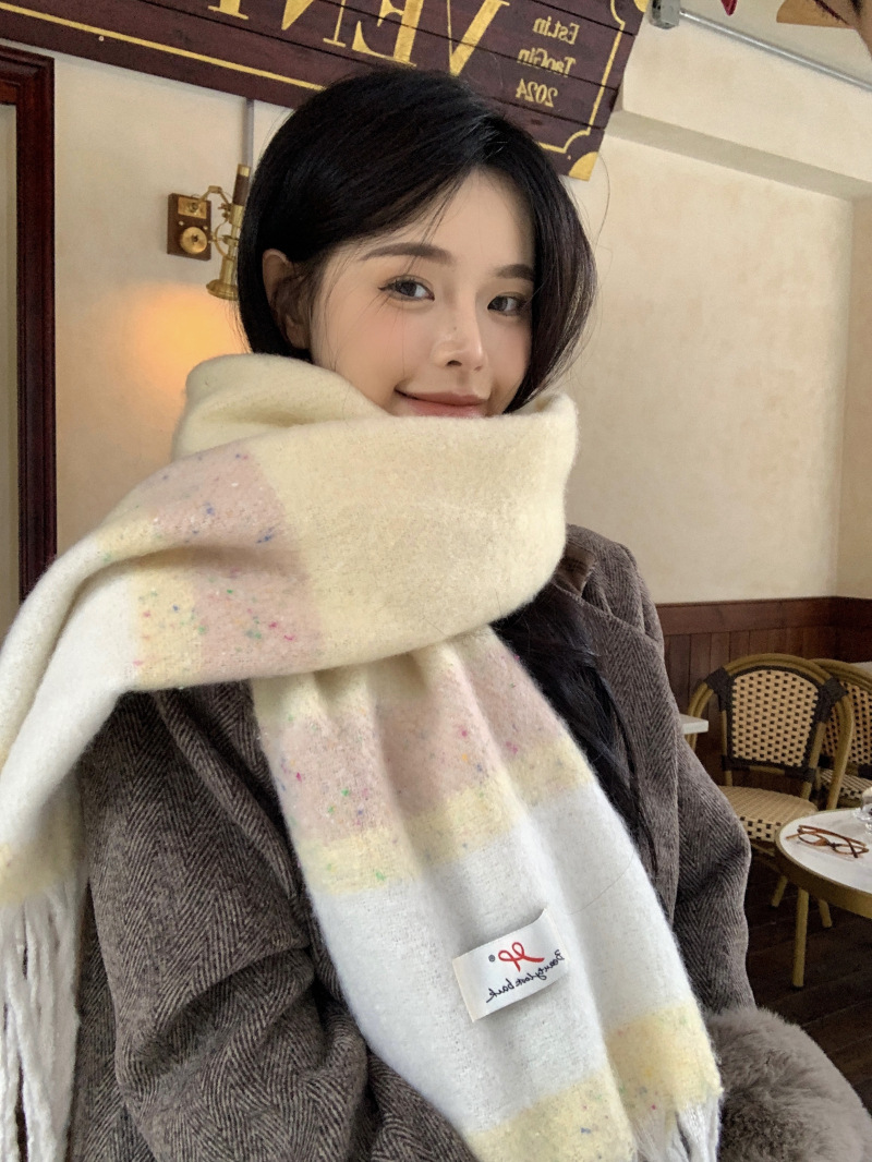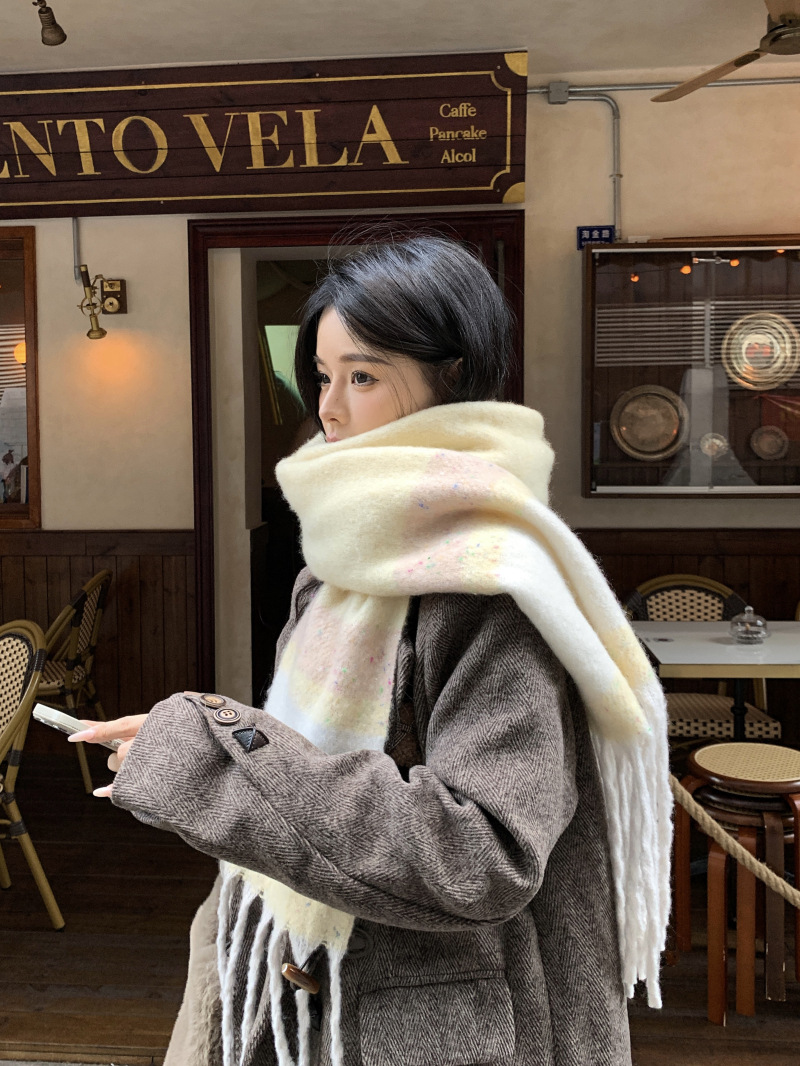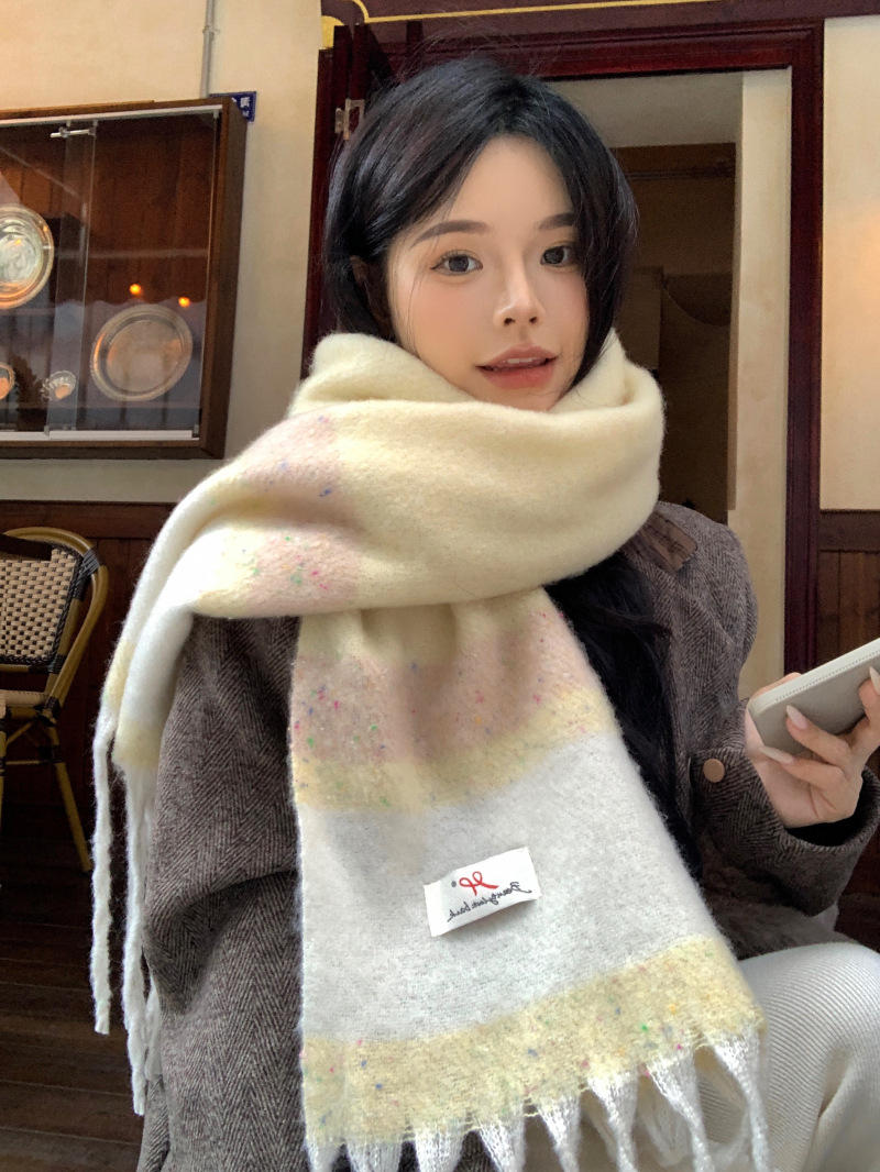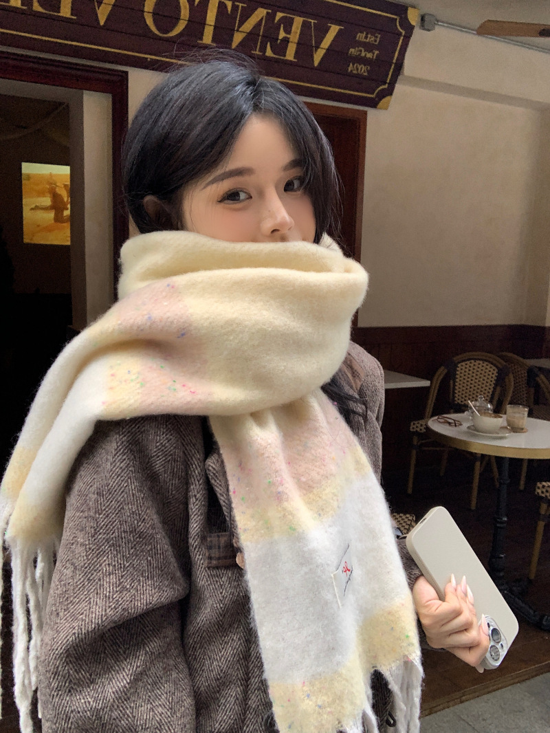 芝士奶黄毛绒围巾女秋冬新款韩版彩点仿羊绒披肩保暖加厚学生围脖