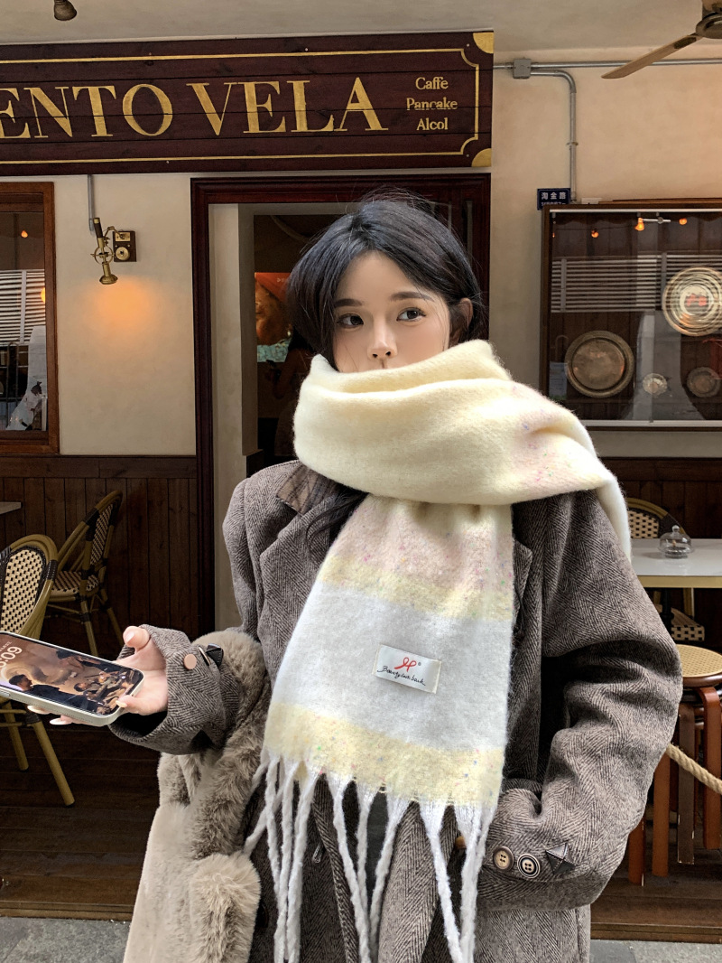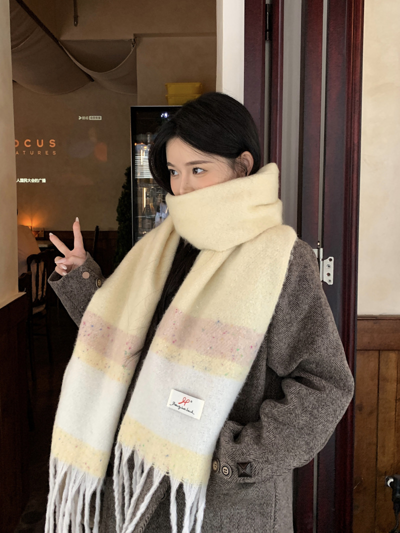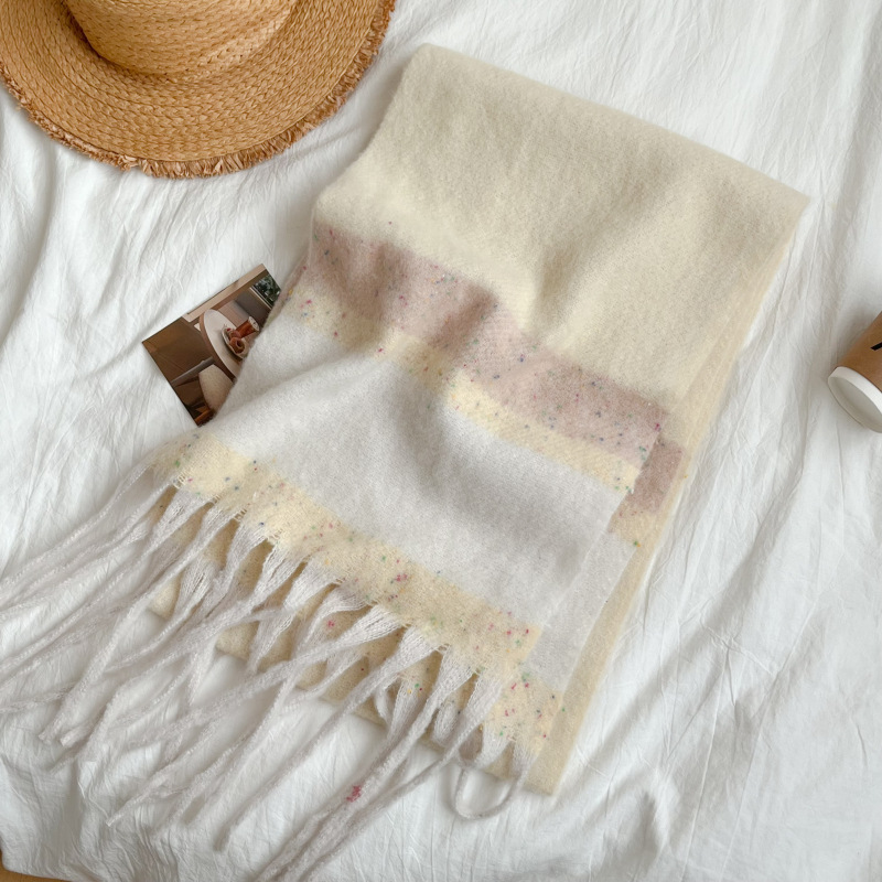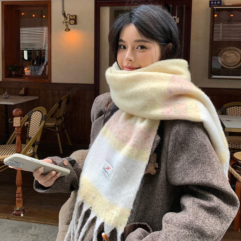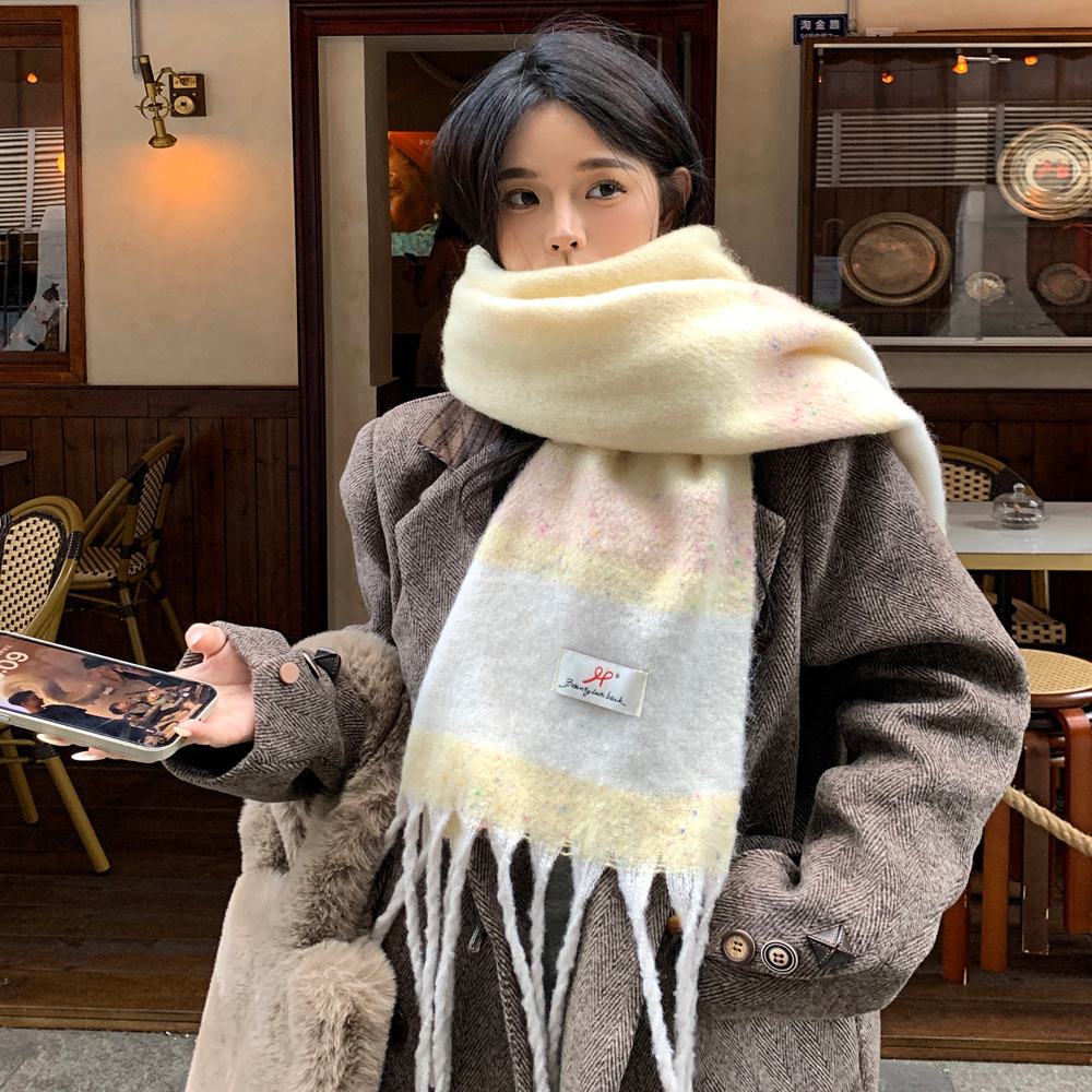 芝士奶黄毛绒围巾女秋冬新款韩版彩点仿羊绒披肩保暖加厚学生围脖