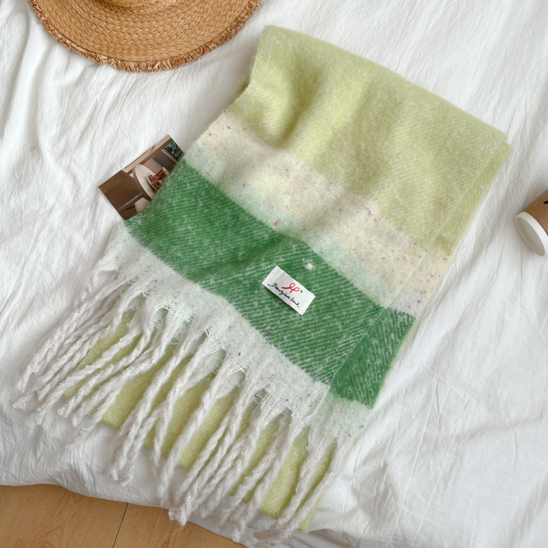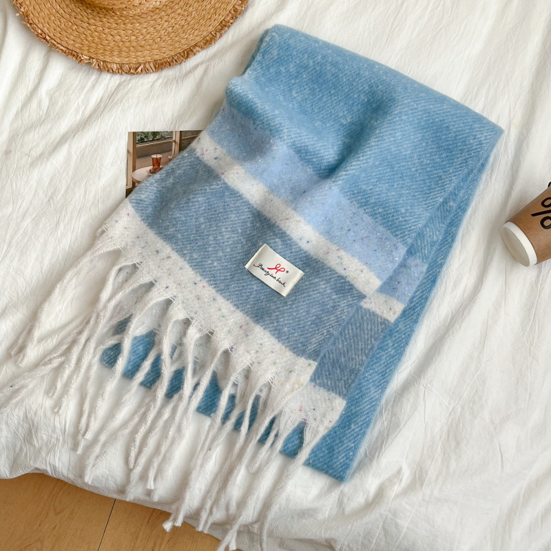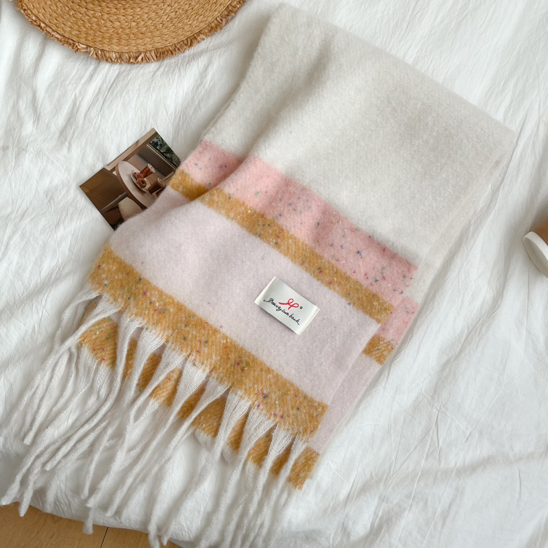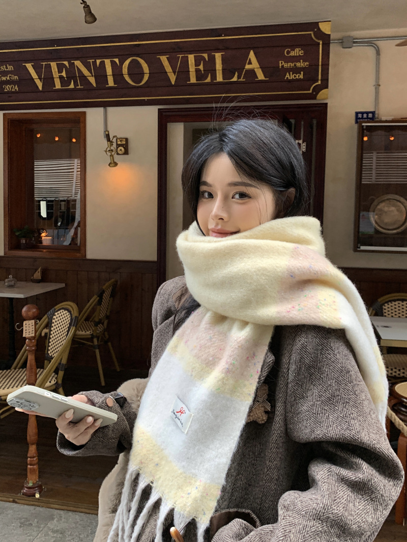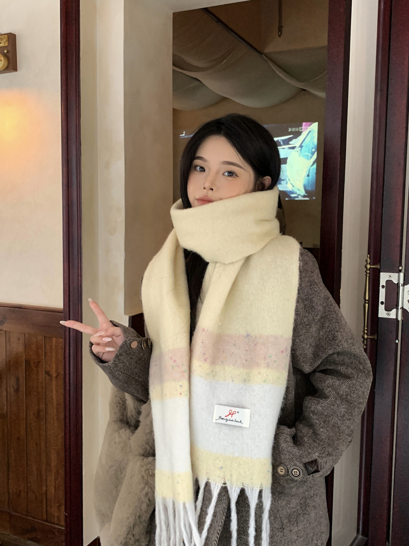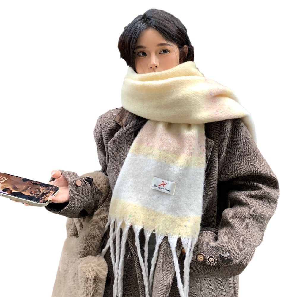 芝士奶黄毛绒围巾女秋冬新款韩版彩点仿羊绒披肩保暖加厚学生围脖