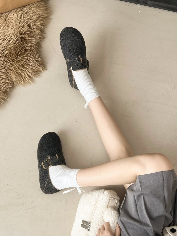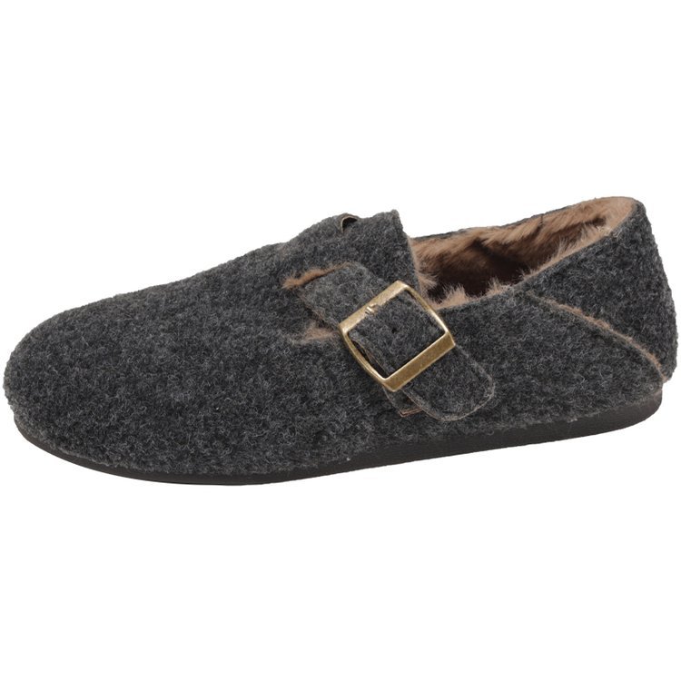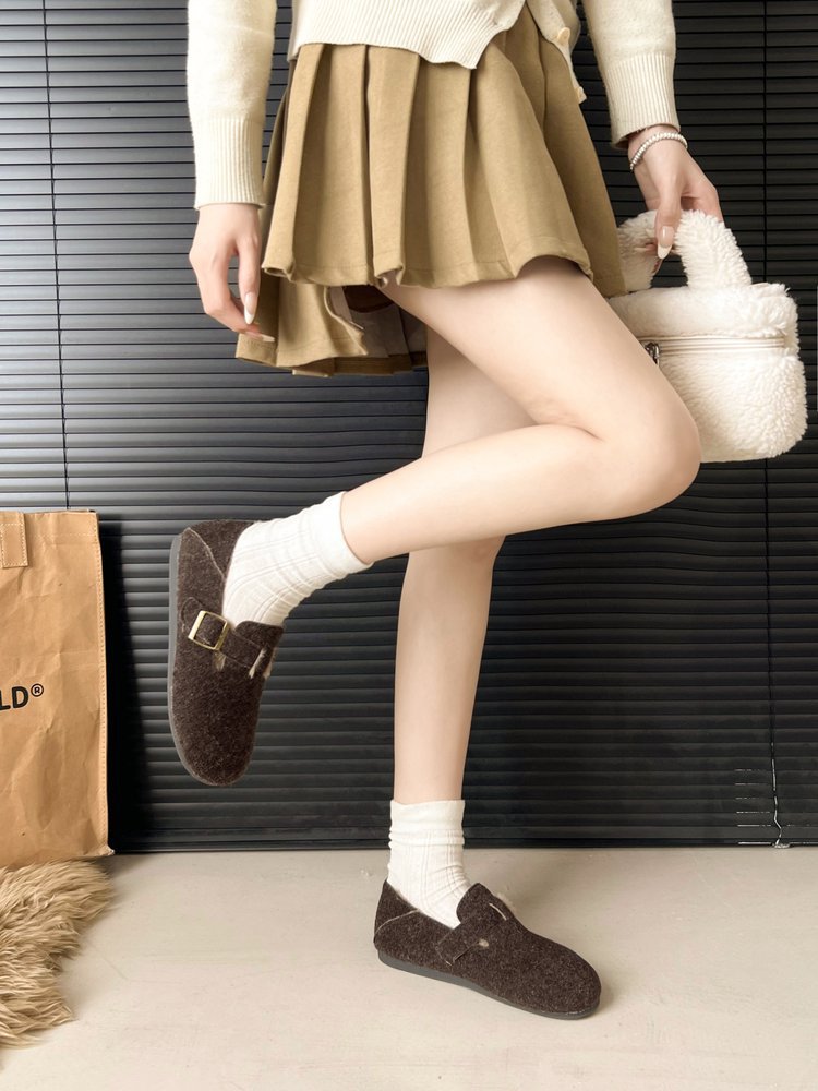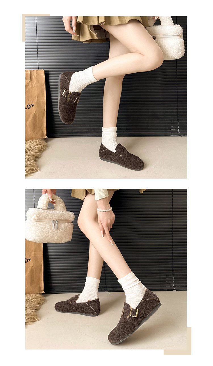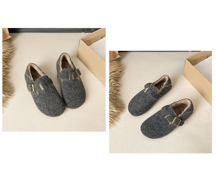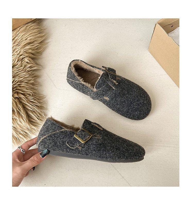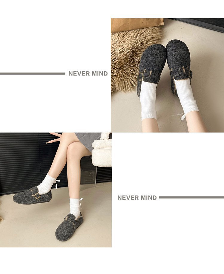 保暖又好看毛毛鞋加绒秋冬毛呢棉鞋包头半拖外穿平底燕麦色豆豆鞋